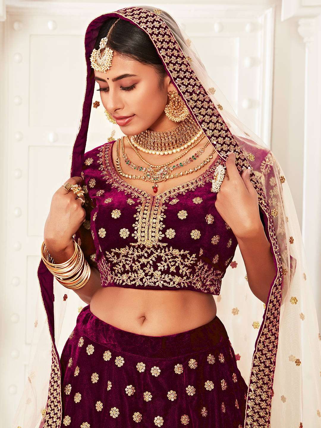 Product Code 7702 Pure Velvet HEAVY BRIDAL LEHENGA CHOLI collection manufacturer surat