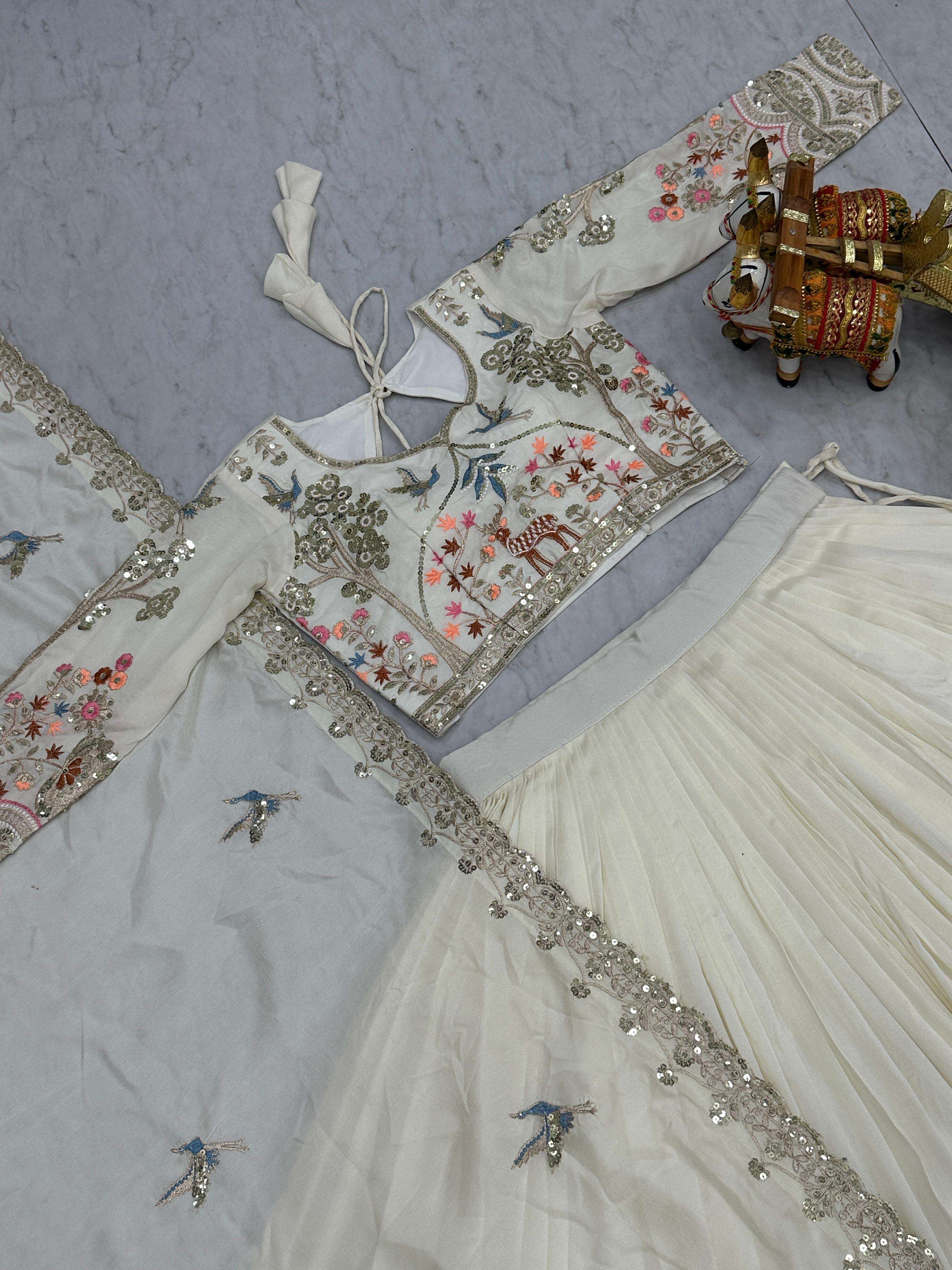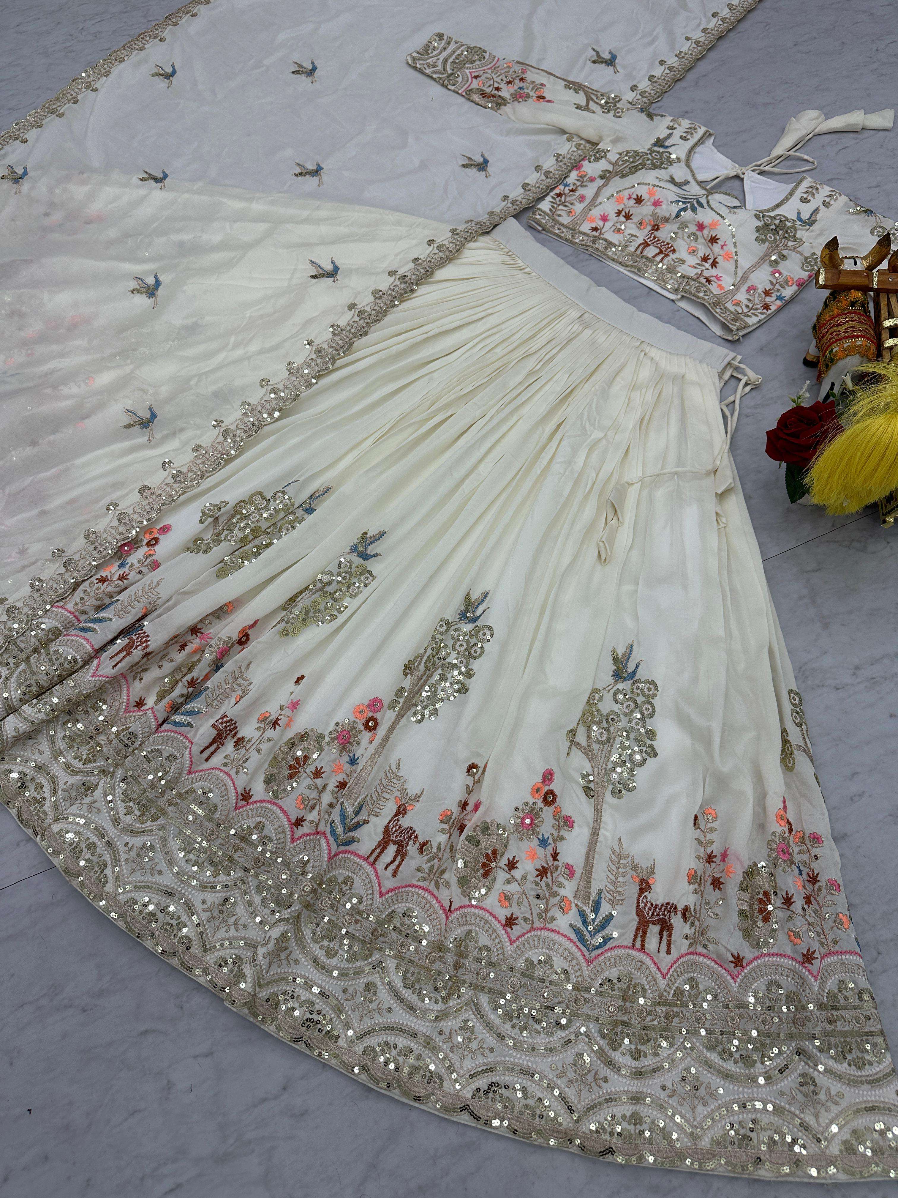 👗Lehenga👗 *Fabric:-* pure Vichitra *Inner:-* Micro Cotton *Work:-* Heavy Embroidery Sequence with Thared Work *Flair:-* 3.50 Meter *Size:-* 44