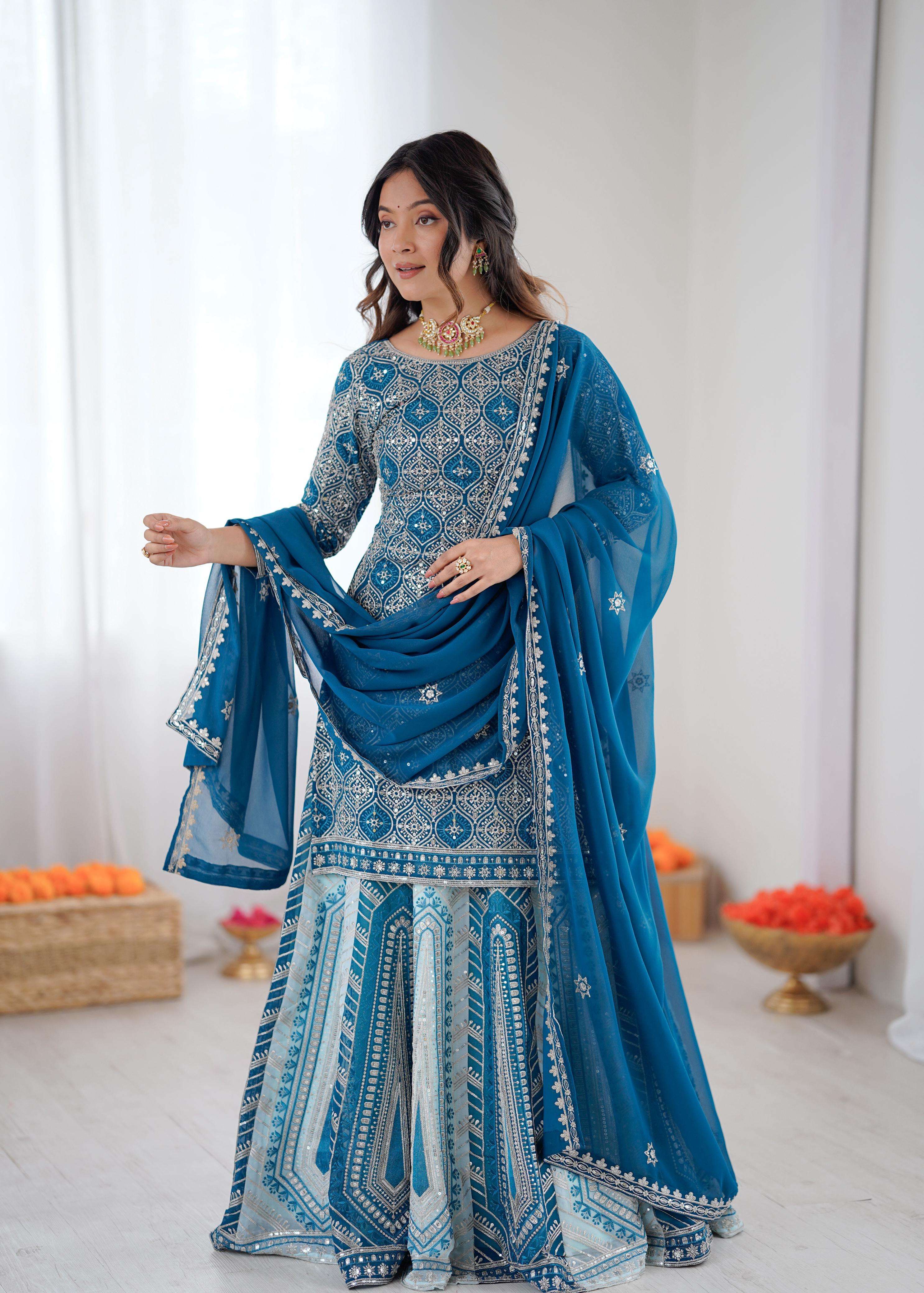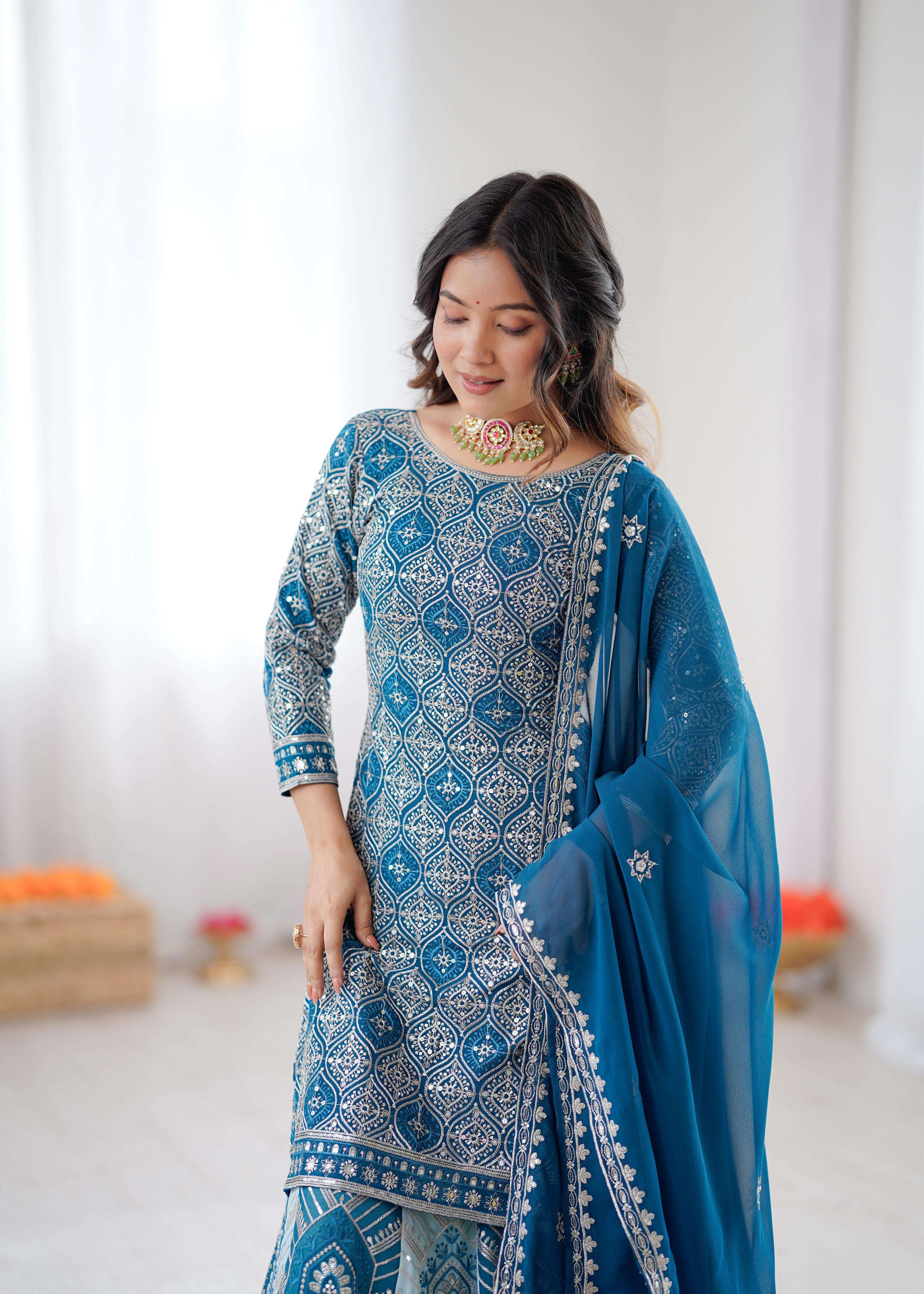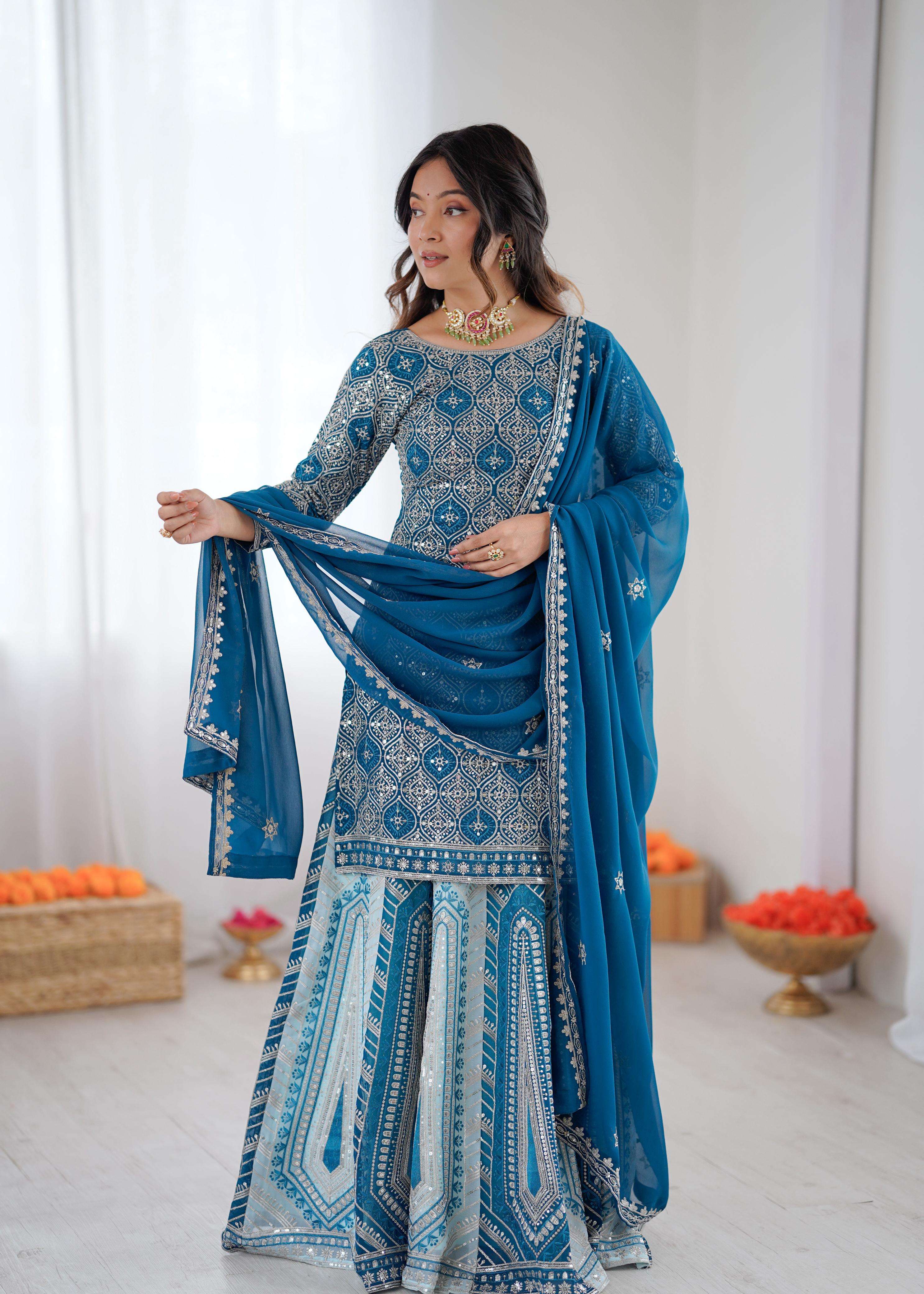 🥻 *DUPATTA* • *Fabric*: Faux Georgette • *Work*: Thred With Sequnce Work • *Length*: 2.2 meters ⸻