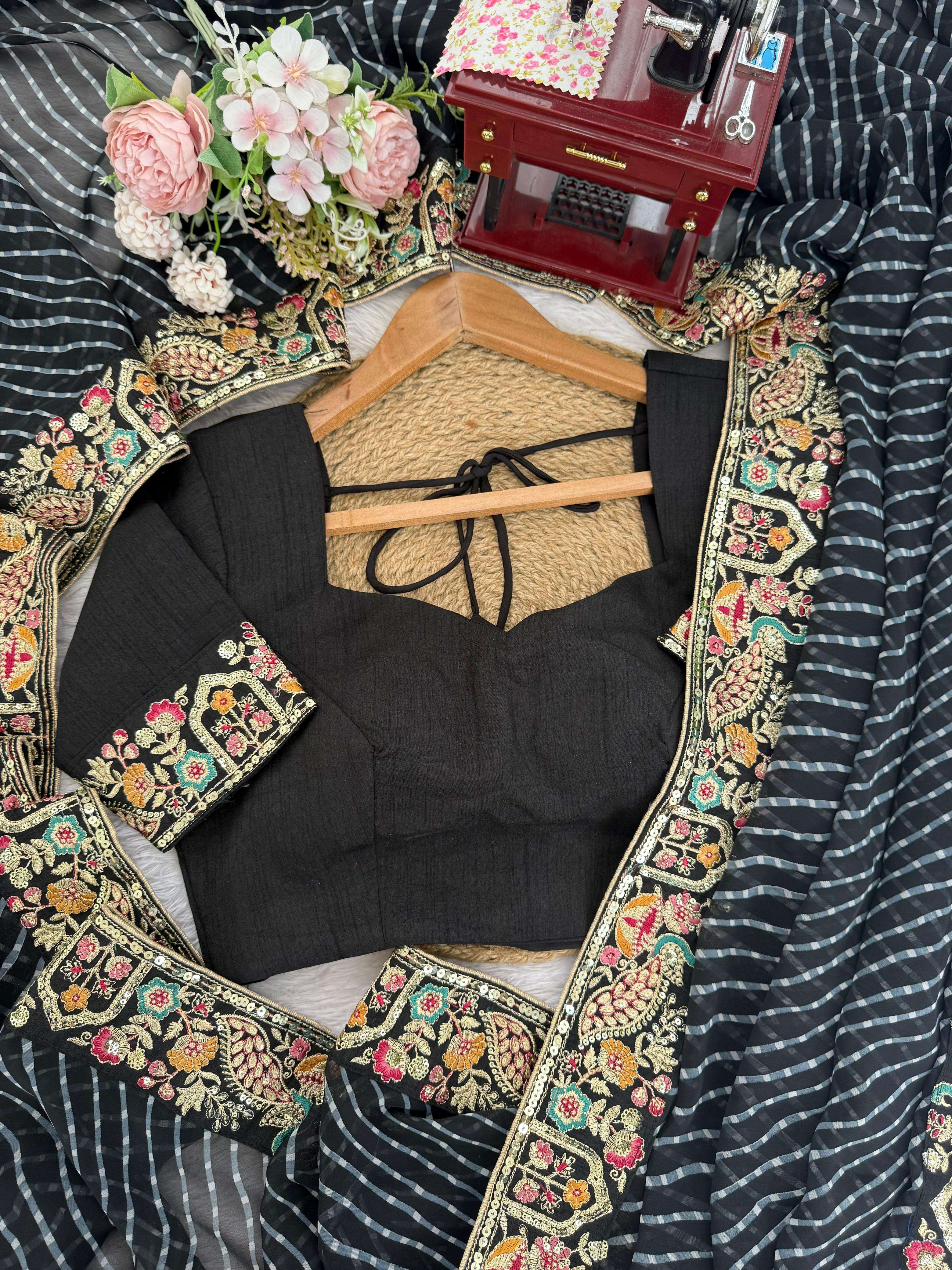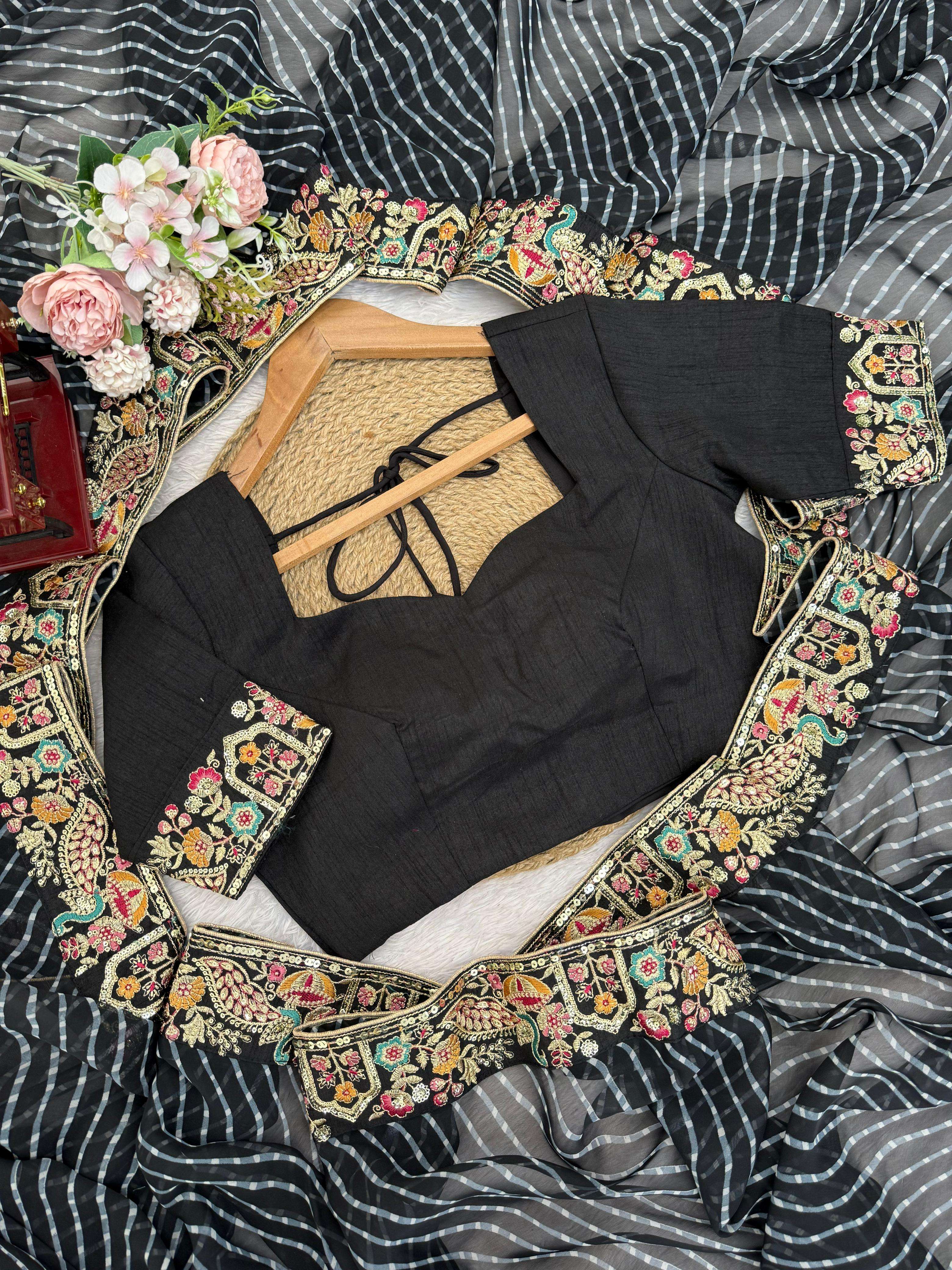 ⸻ 👚 *BLOUSE* • *Fabric*: Heavy Mono Benglori Silk • *Work*: Elegant Thred & Sequin Embroidery • *Cut*: 0.80 CM | Unstitched | Customizable up to your size
