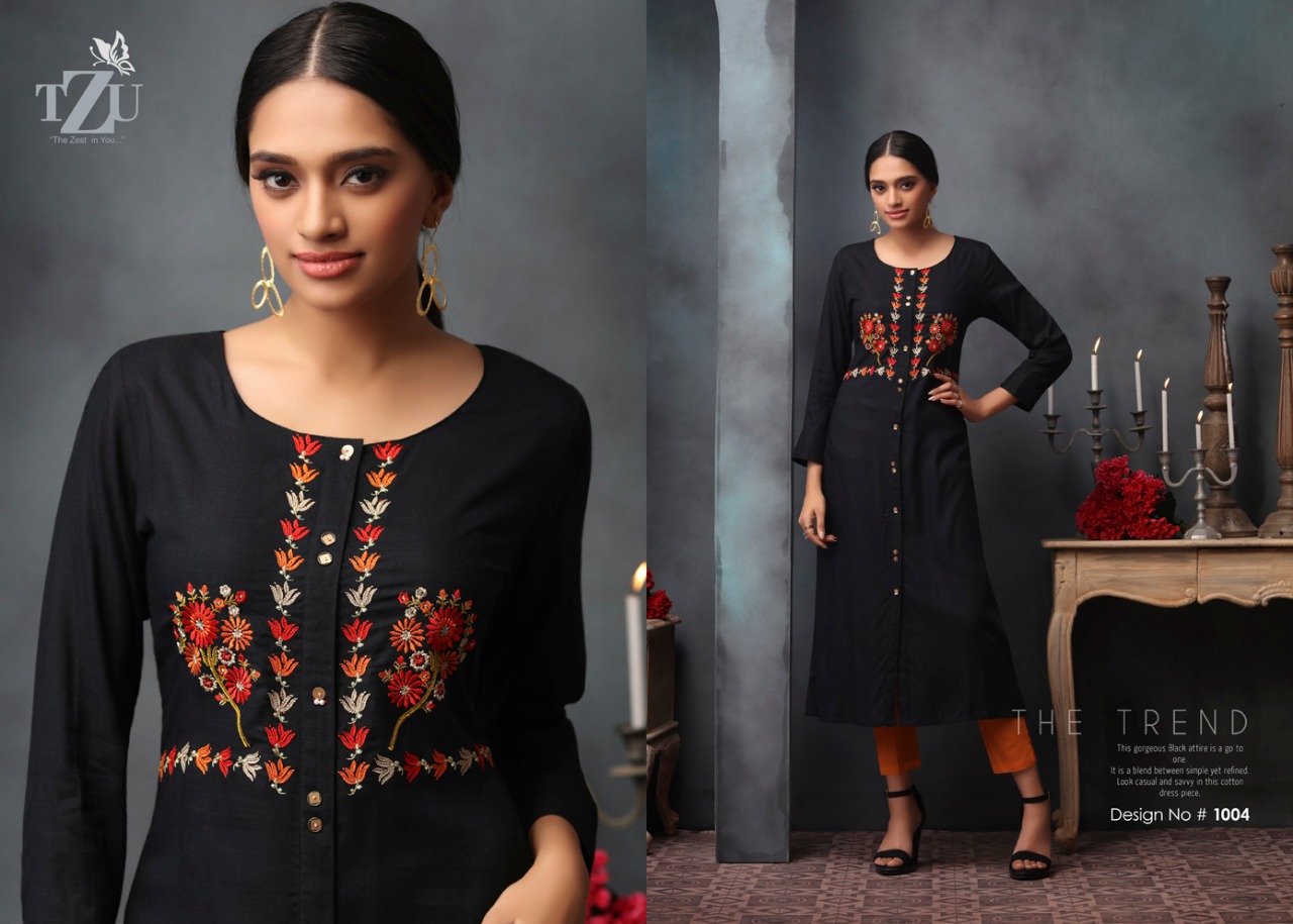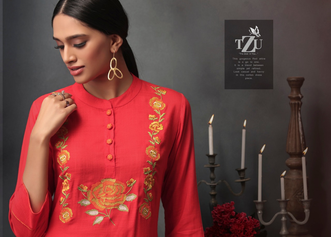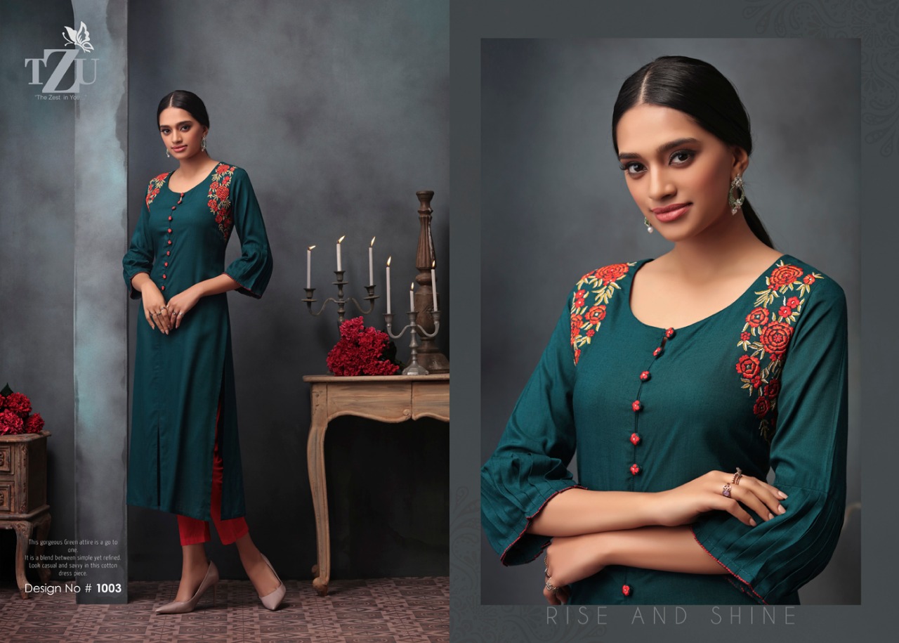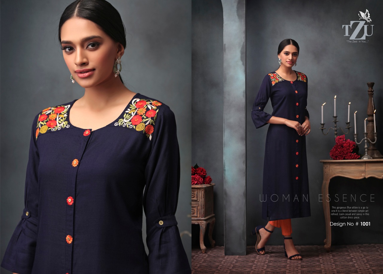 Buy Online Profile By Tzu Lifestyle 1001 Series Fancy Designer Reyon Embroidery Kurti Collection Wholesaler Surat 4 Pcs of Full Catalogue at Wholesale Price. Looking for Profile By Tzu Lifestyle 1001 Series Fancy Designer Reyon Embroidery Kurti Collection Wholesaler Surat Full Catalouge at Best Price? Buy Now Profile By Tzu Lifestyle 1001 Series Fancy Designer Reyon Embroidery Kurti Collection Wholesaler Surat at Wholesale Rate of Rs 2980 with Total 4 Pcs from authroized dealer and supplier of Brand. Cost of Each piece is just only Rs 745 which is very low and affordable price to resale the product in your retail store ,This is Surat based Wholesale Supplier & Dealer of Brand. Click on Brand name to Know more about Brand's products.Call or Whatsapp on 9898838984 for booking or enquiry