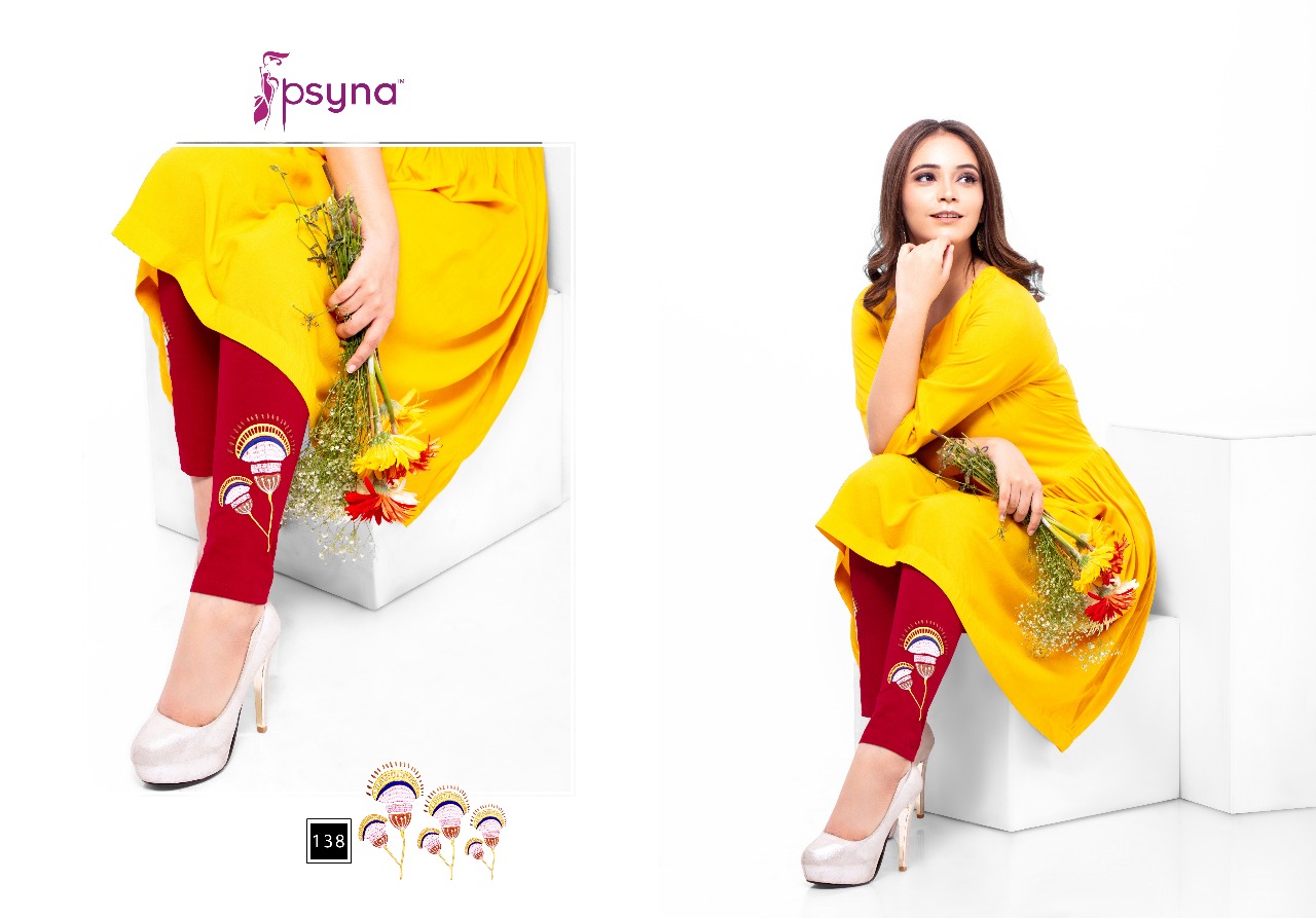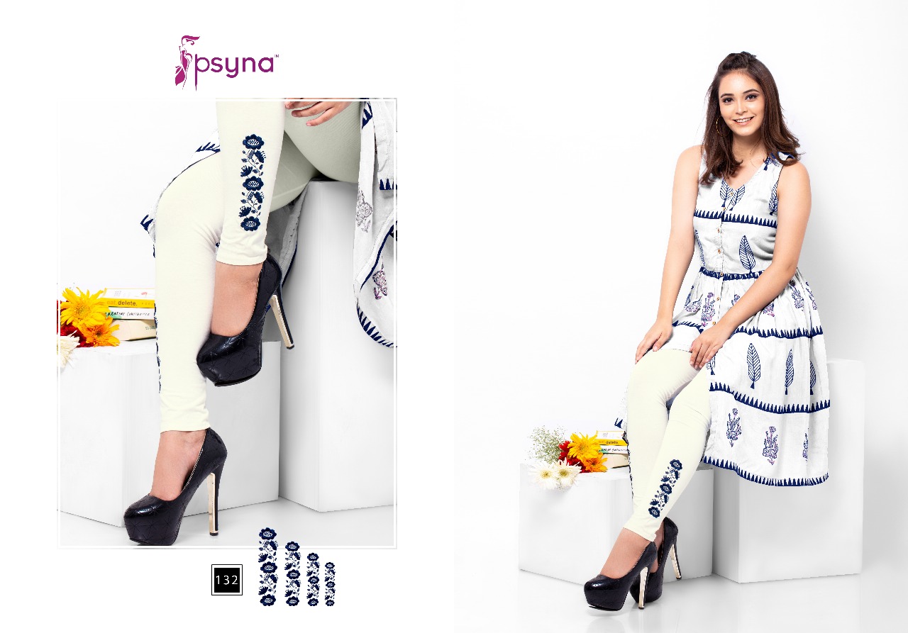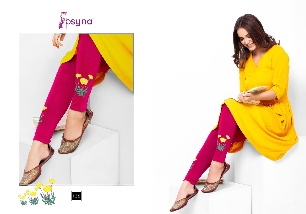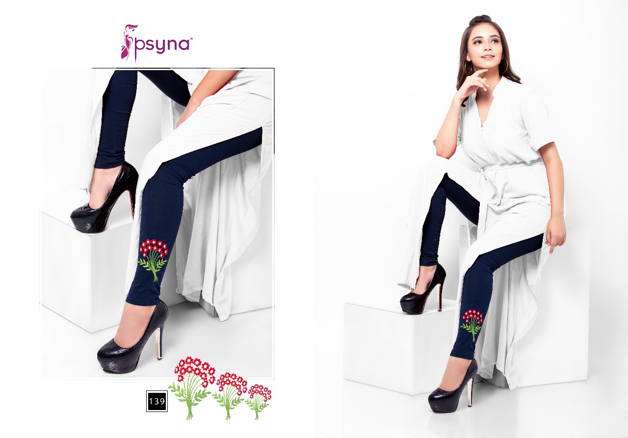 Buy Online Psyna Embroidery Leggings 7 Cotton Lycra With Embroidery Laggings Wholesale Supplier And Dealer Surat 10 Pcs of Full Catalogue at Wholesale Price. Looking for Psyna Embroidery Leggings 7 Cotton Lycra With Embroidery Laggings Wholesale Supplier And Dealer Surat Full Catalouge at Best Price? Buy Now Psyna Embroidery Leggings 7 Cotton Lycra With Embroidery Laggings Wholesale Supplier And Dealer Surat at Wholesale Rate of Rs 2750 with Total 10 Pcs from authroized dealer and supplier of PSYNA Brand. Cost of Each piece is just only Rs 275 which is very low and affordable price to resale the product in your retail store ,This is Surat based Wholesale Supplier & Dealer of PSYNA Brand. Click on Brand name to Know more about PSYNA Brand's products.Call or Whatsapp on 9898838984 for booking or enquiry
