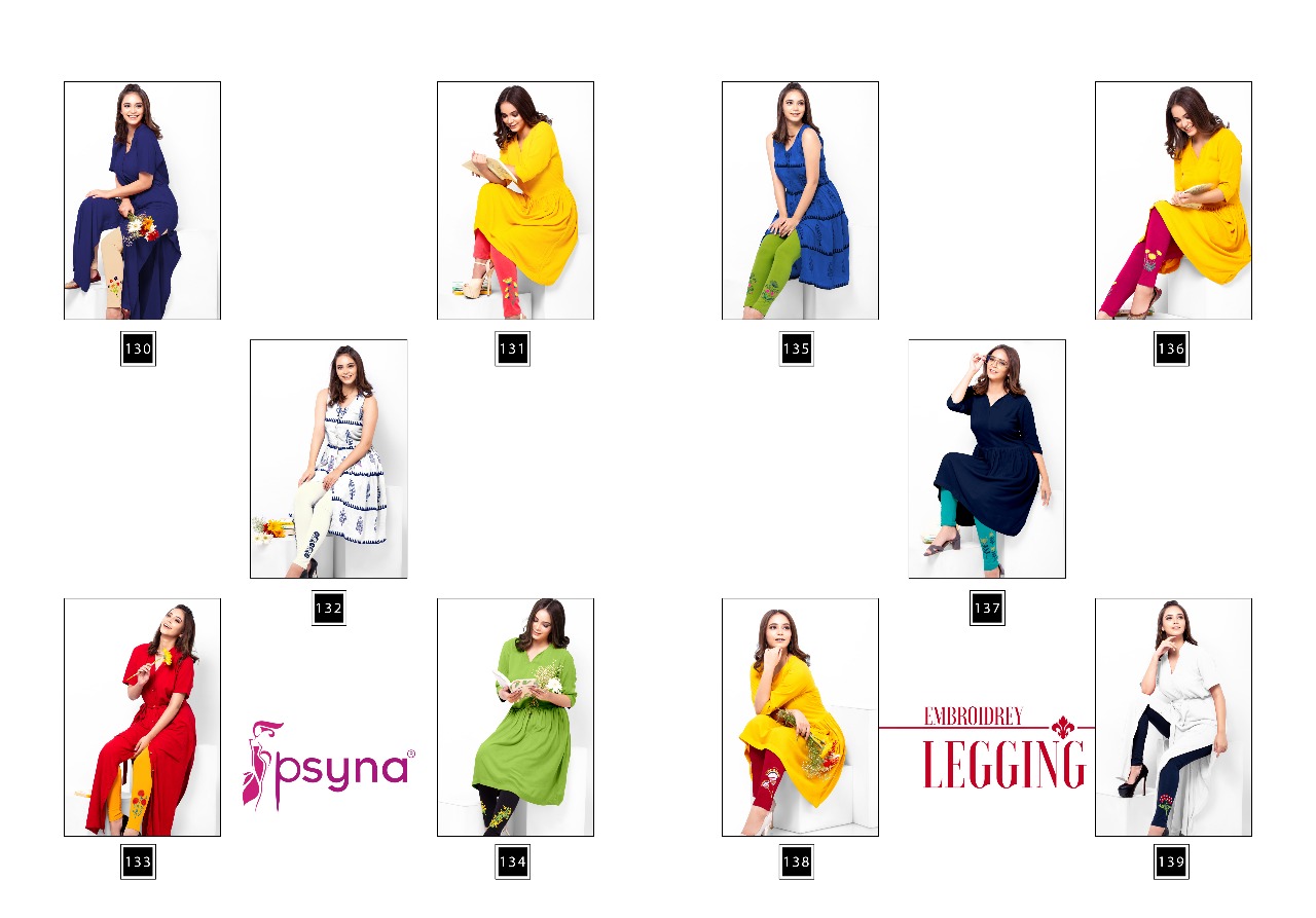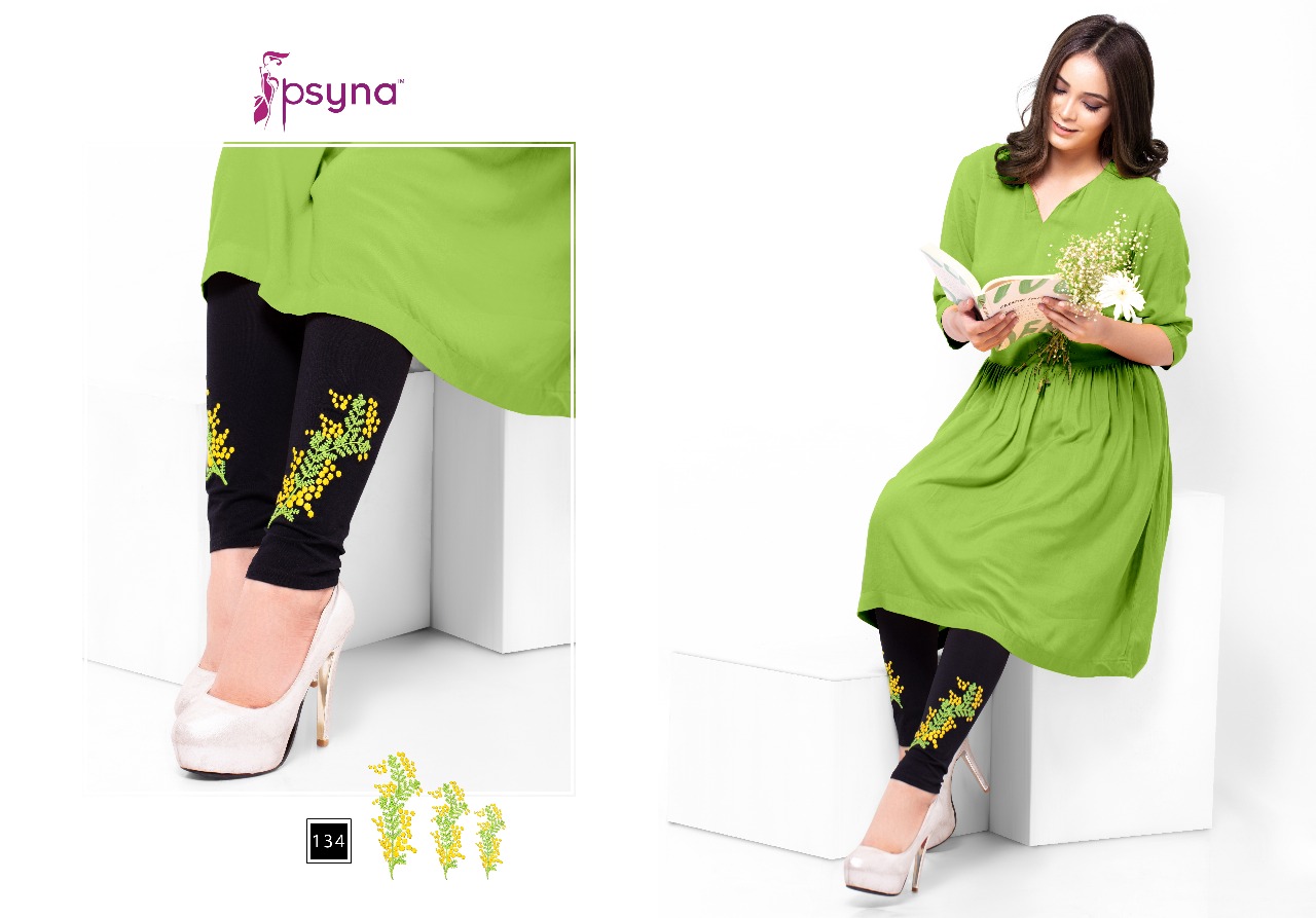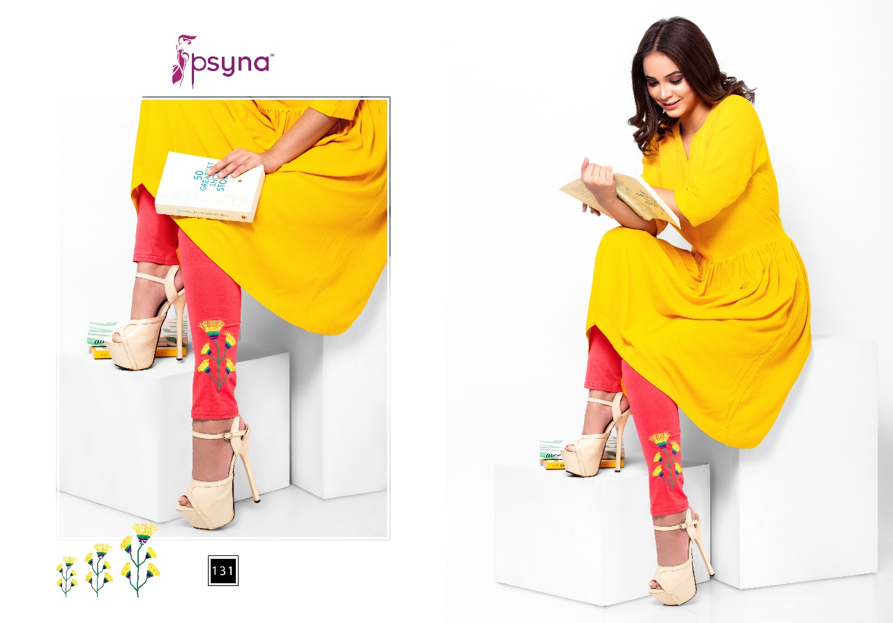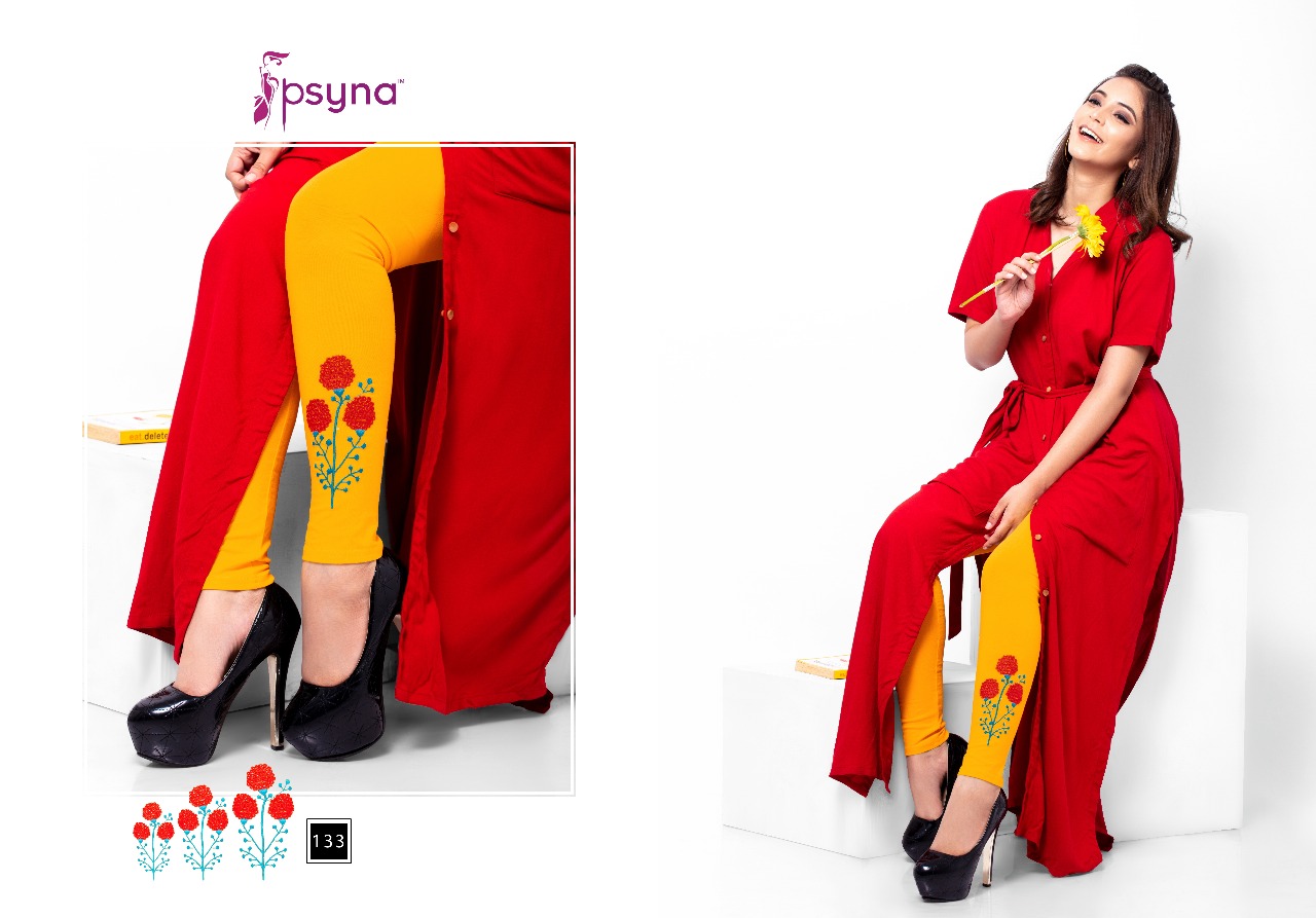 Buy Online Psyna Embroidery Leggings 7 Cotton Lycra With Embroidery Laggings Wholesale Supplier And Dealer Surat 10 Pcs of Full Catalogue at Wholesale Price. Looking for Psyna Embroidery Leggings 7 Cotton Lycra With Embroidery Laggings Wholesale Supplier And Dealer Surat Full Catalouge at Best Price? Buy Now Psyna Embroidery Leggings 7 Cotton Lycra With Embroidery Laggings Wholesale Supplier And Dealer Surat at Wholesale Rate of Rs 2750 with Total 10 Pcs from authroized dealer and supplier of PSYNA Brand. Cost of Each piece is just only Rs 275 which is very low and affordable price to resale the product in your retail store ,This is Surat based Wholesale Supplier & Dealer of PSYNA Brand. Click on Brand name to Know more about PSYNA Brand's products.Call or Whatsapp on 9898838984 for booking or enquiry