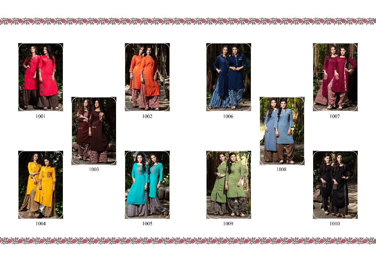 Psyna presents, *Palazzo House* 5 designs x 2 Colours. 10 pcs set Kurti- *Rayon Slub with Handwork* Palazzo - *Rayon Print* Sizes - *M L XL 2XL 3XL* Length - 48 inches Rate: 750/- Dispatch - 23/06/18 Handwork Rayon Kurtis with Palazzos amazing colours. ONLY FULL SET AVAILABLE Whatspp +919898838984 |