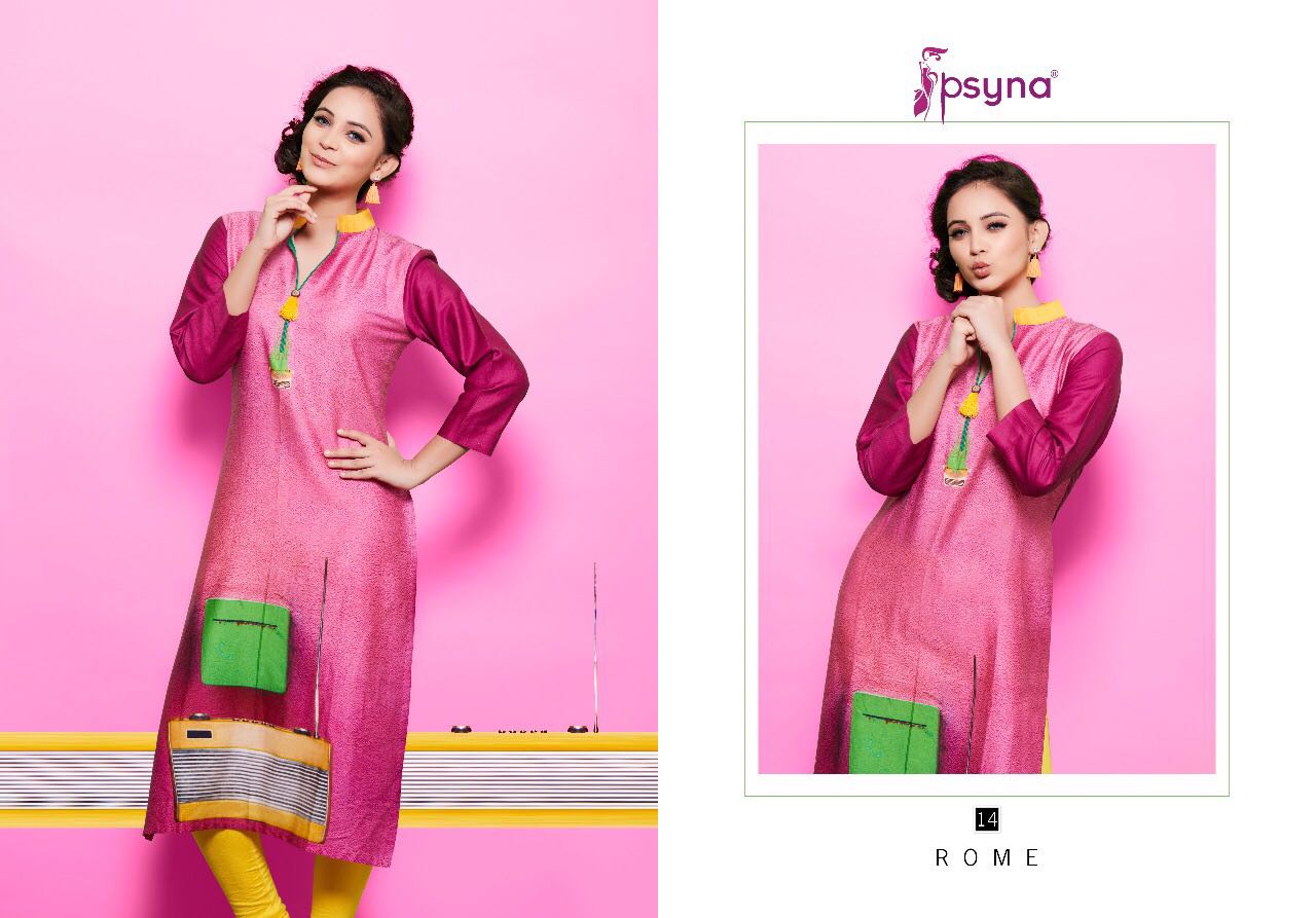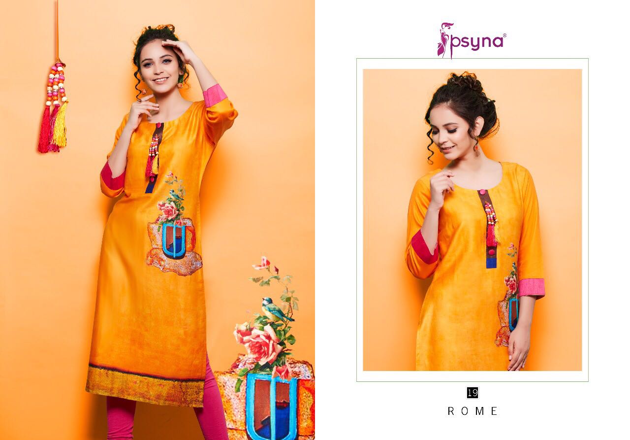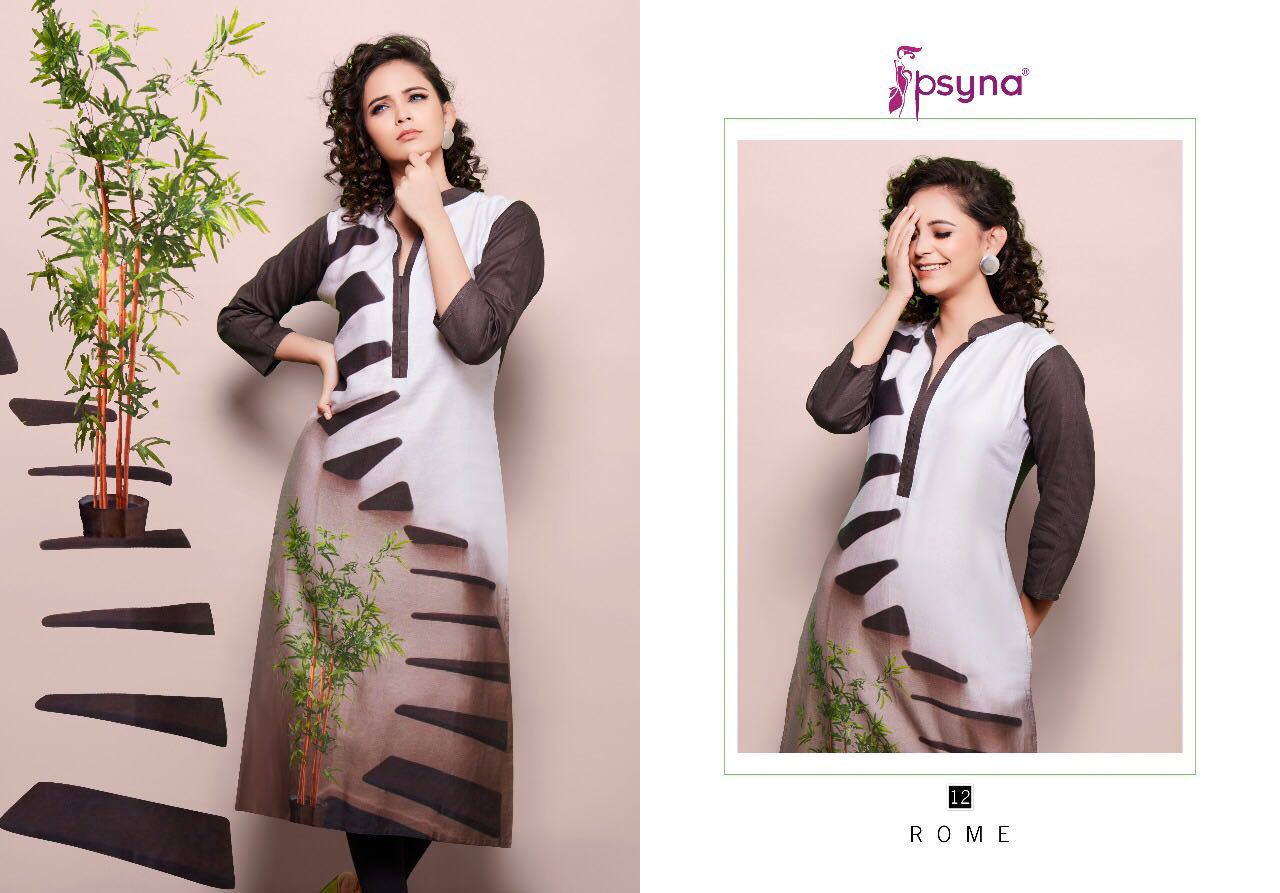 Buy Online Psyna Rome 2 11 Series Cotton Satin Digital Printed Kurties 10 Pcs of Full Catalogue at Wholesale Price. Looking for Psyna Rome 2 11 Series Cotton Satin Digital Printed Kurties Full Catalouge at Best Price? Buy Now Psyna Rome 2 11 Series Cotton Satin Digital Printed Kurties at Wholesale Rate of Rs 4750 with Total 10 Pcs from authroized dealer and supplier of PSYNA Brand. Cost of Each piece is just only Rs 475 which is very low and affordable price to resale the product in your retail store ,This is Surat based Wholesale Supplier & Dealer of PSYNA Brand. Click on Brand name to Know more about PSYNA Brand's products.Call or Whatsapp on 9898838984 for booking or enquiry