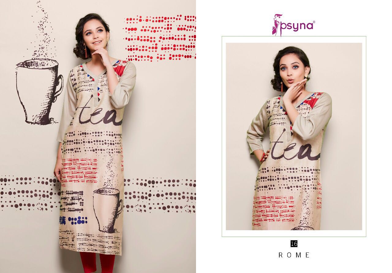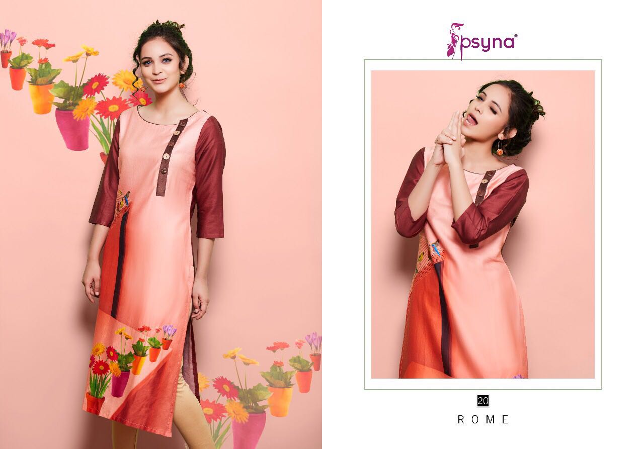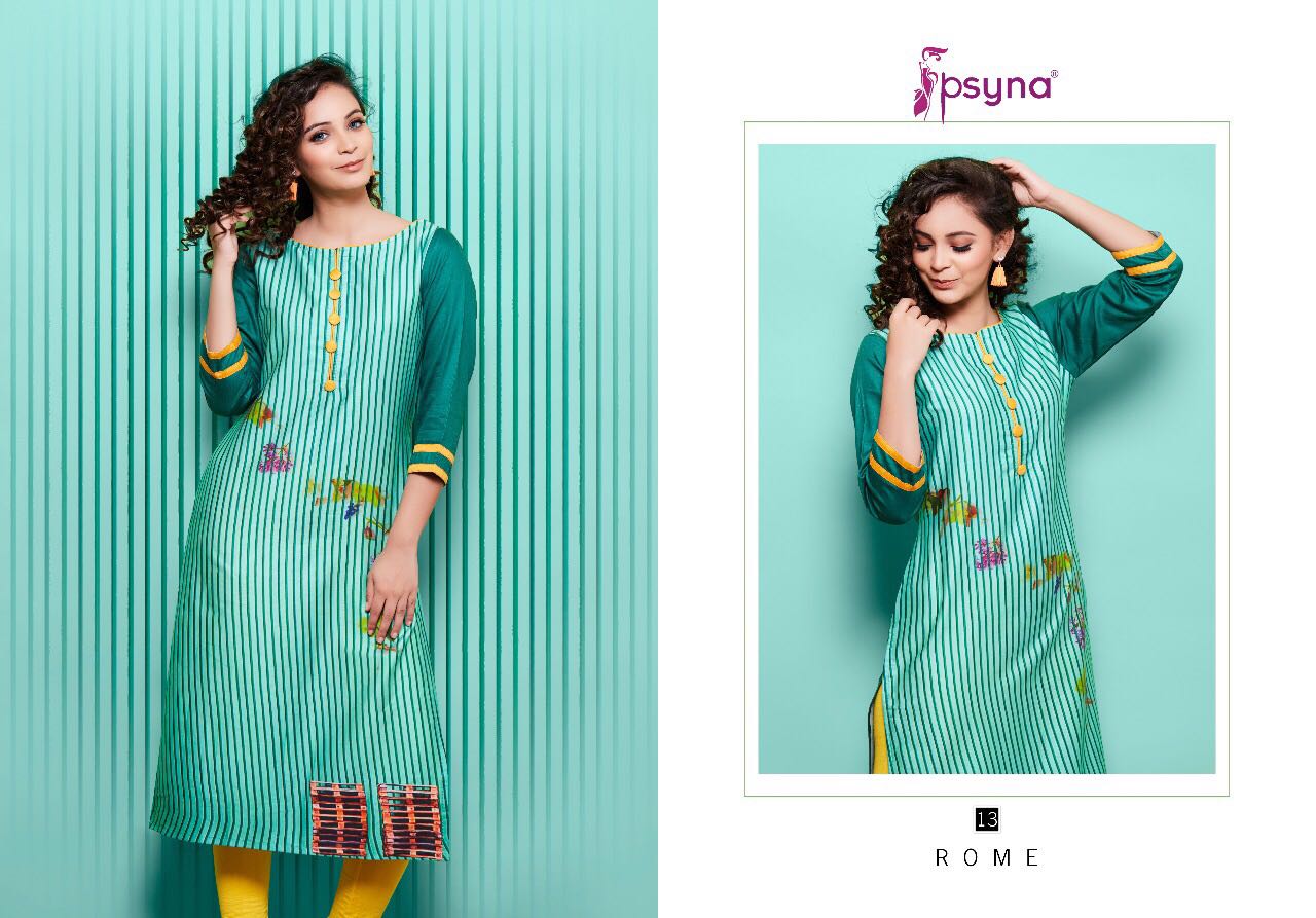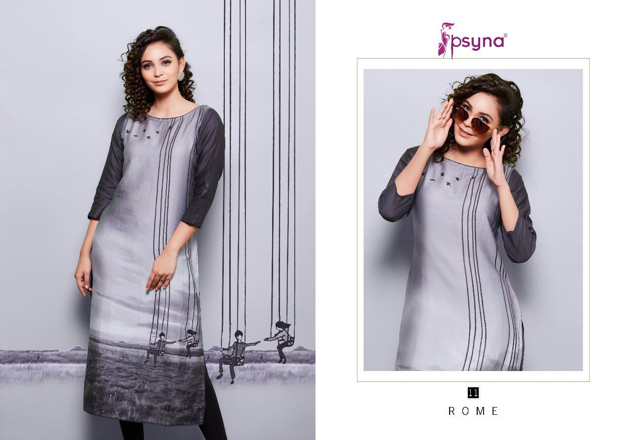 Buy Online Psyna Rome 2 11 Series Cotton Satin Digital Printed Kurties 10 Pcs of Full Catalogue at Wholesale Price. Looking for Psyna Rome 2 11 Series Cotton Satin Digital Printed Kurties Full Catalouge at Best Price? Buy Now Psyna Rome 2 11 Series Cotton Satin Digital Printed Kurties at Wholesale Rate of Rs 4750 with Total 10 Pcs from authroized dealer and supplier of PSYNA Brand. Cost of Each piece is just only Rs 475 which is very low and affordable price to resale the product in your retail store ,This is Surat based Wholesale Supplier & Dealer of PSYNA Brand. Click on Brand name to Know more about PSYNA Brand's products.Call or Whatsapp on 9898838984 for booking or enquiry