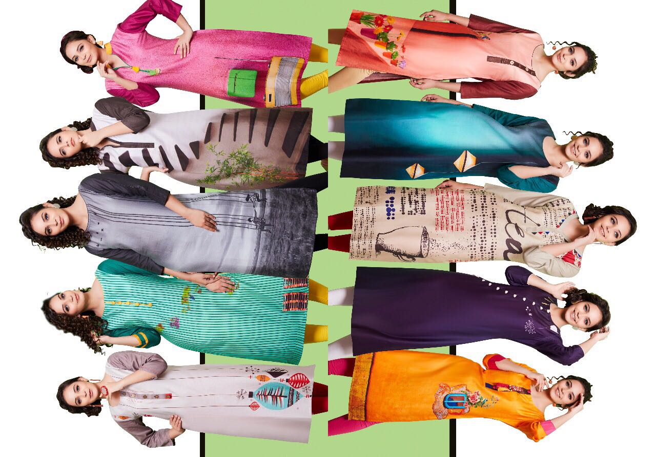 Trendy Fashion Indian style and Best _Fashionable Outfits for These Seasons. from PSYNA Catalog: ROME-2 Pack of : 10 DIGITAL DESIGNS* Type: - LONG KURTIS Length - 46� Fabric: - COTTON SATIN_ Price: 475/- Sizes Available: M/38 L/40, XL/42, XXL/44 XXXL-46 set to set book ur order now |