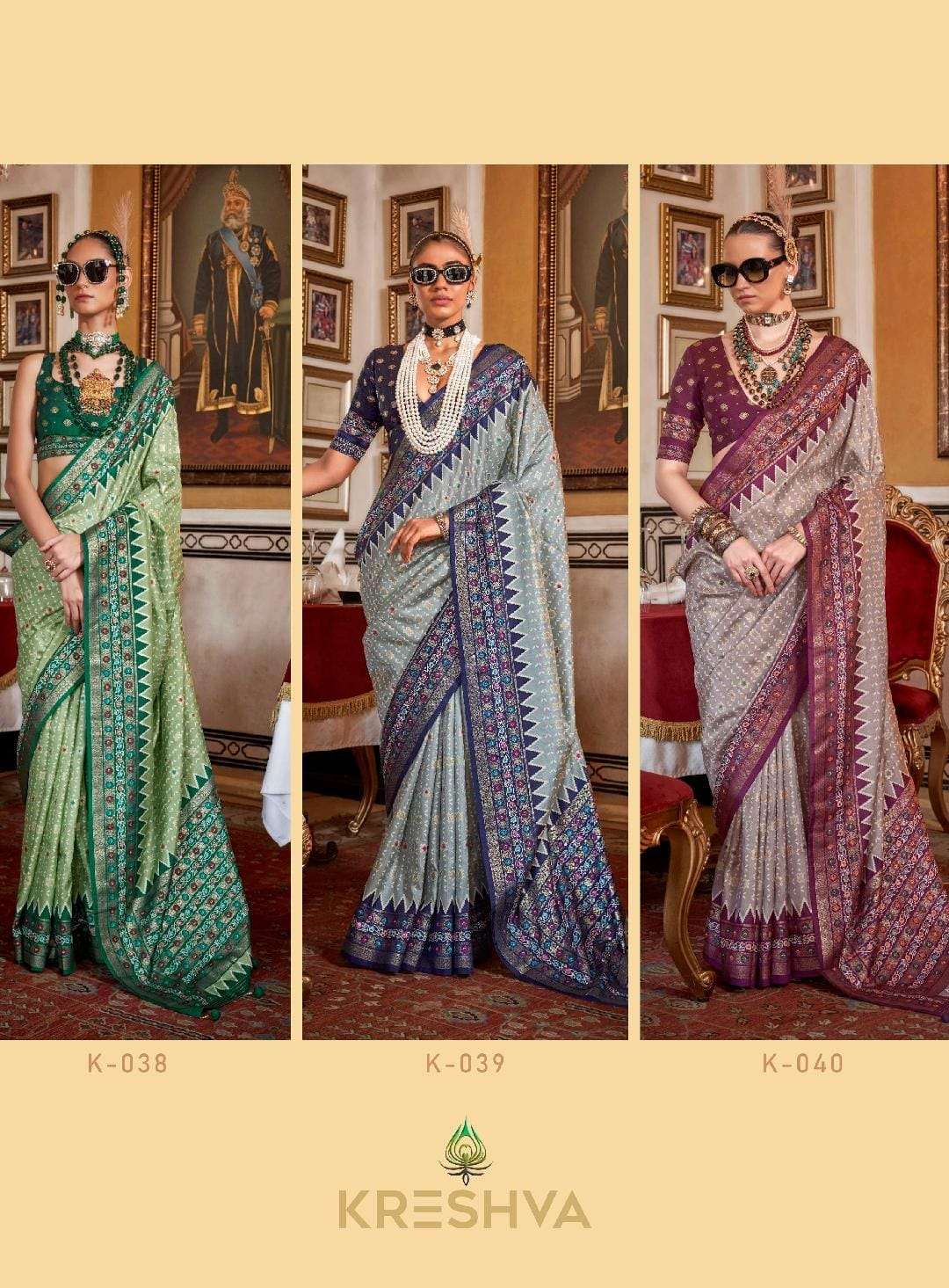 Buy Online Puja Patola by Kreshva Traditional silk saree manufacturer surat 6 Pcs of Full Catalogue at Wholesale Price. Looking for Puja Patola by Kreshva Traditional silk saree manufacturer surat Full Catalouge at Best Price? Buy Now Puja Patola by Kreshva Traditional silk saree manufacturer surat at Wholesale Rate of Rs 7770 with Total 6 Pcs from authroized dealer and supplier of KRESHVA Brand. Cost of Each piece is just only Rs 1295 which is very low and affordable price to resale the product in your retail store ,This is Surat based Wholesale Supplier & Dealer of KRESHVA Brand. Click on Brand name to Know more about KRESHVA Brand's products.Call or Whatsapp on 9898838984 for booking or enquiry