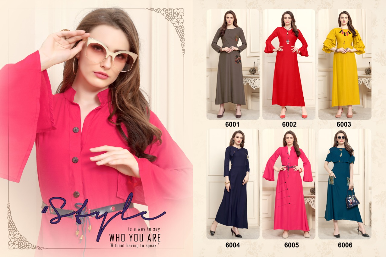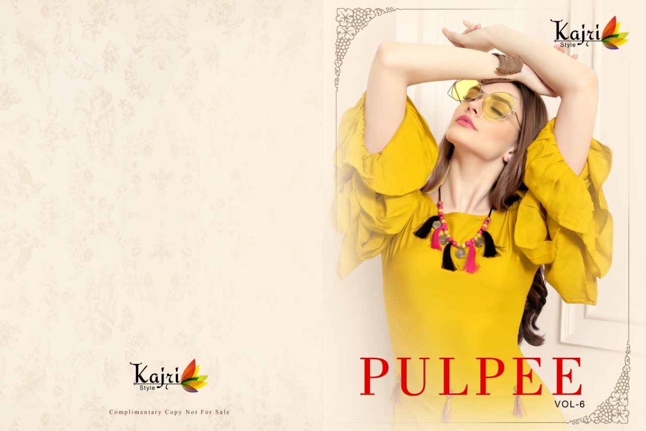 Buy Online Pulpee Vol 6 By Kajri Style Reyon Designer Kurtis Wholesale Supplier And Dealer Surat 6 Pcs of Full Catalogue at Wholesale Price. Looking for Pulpee Vol 6 By Kajri Style Reyon Designer Kurtis Wholesale Supplier And Dealer Surat Full Catalouge at Best Price? Buy Now Pulpee Vol 6 By Kajri Style Reyon Designer Kurtis Wholesale Supplier And Dealer Surat at Wholesale Rate of Rs 2910 with Total 6 Pcs from authroized dealer and supplier of KAJRI STYLE Brand. Cost of Each piece is just only Rs 485 which is very low and affordable price to resale the product in your retail store ,This is Surat based Wholesale Supplier & Dealer of KAJRI STYLE Brand. Click on Brand name to Know more about KAJRI STYLE Brand's products.Call or Whatsapp on 9898838984 for booking or enquiry