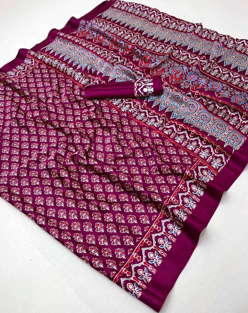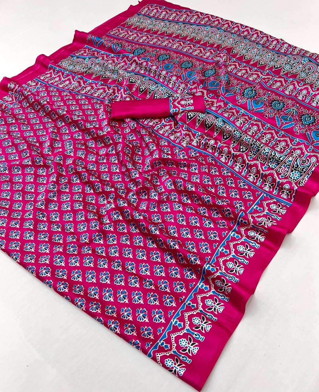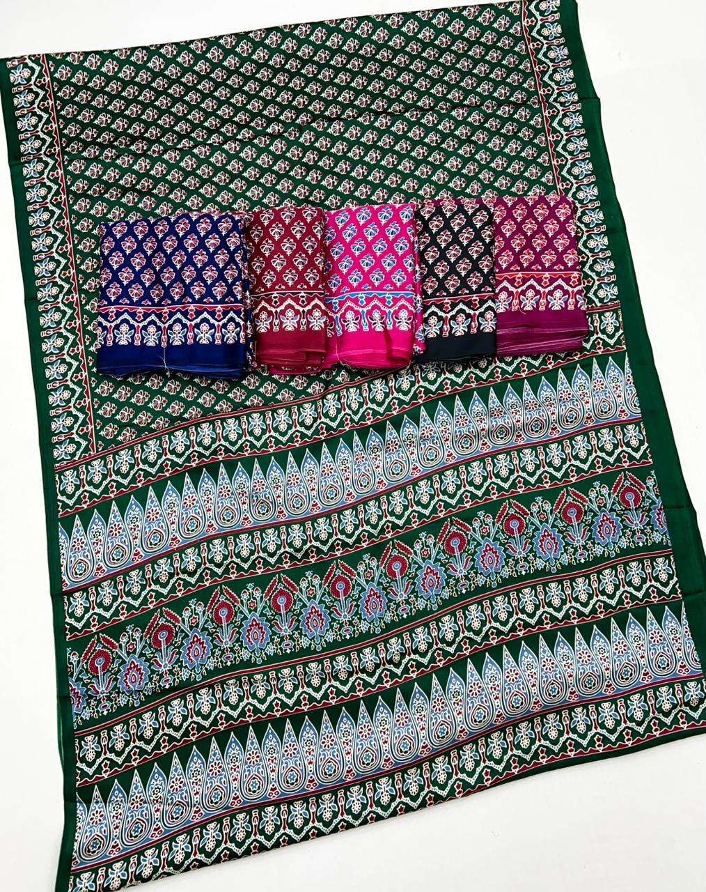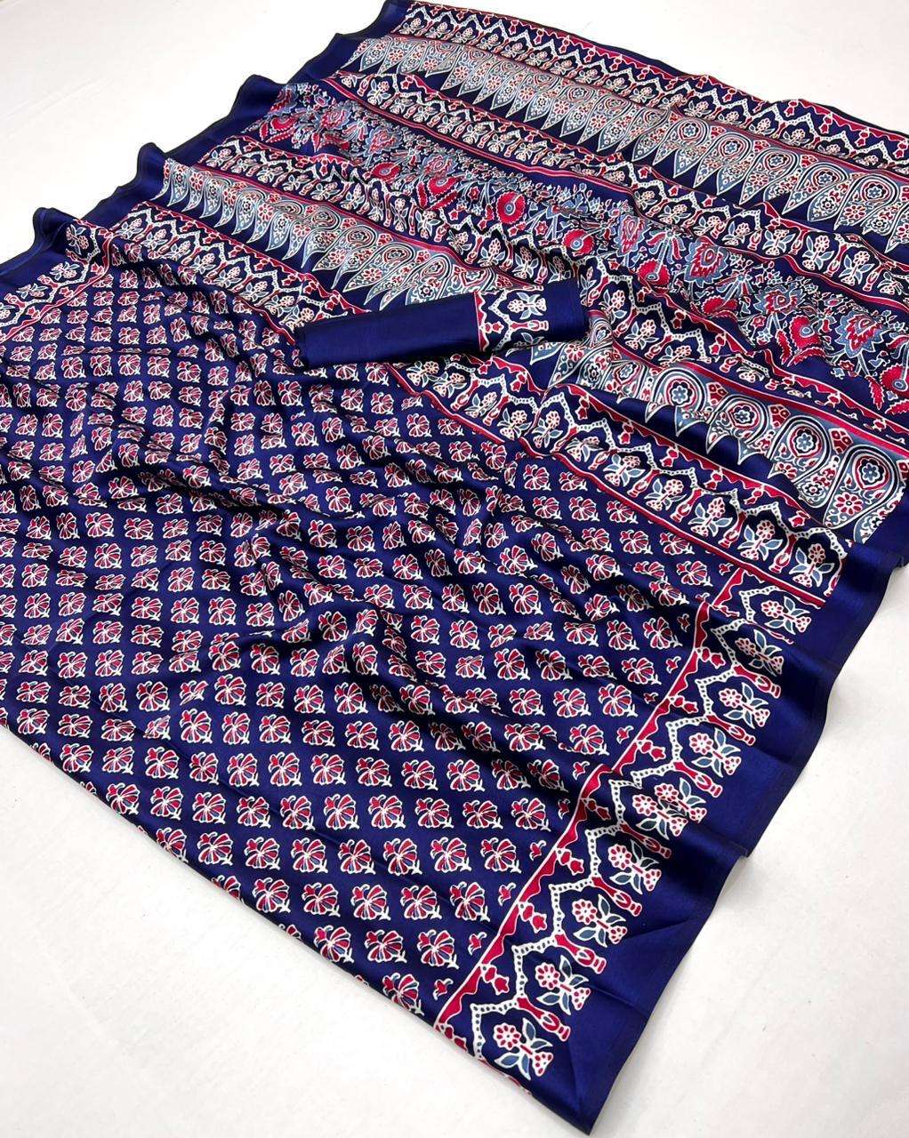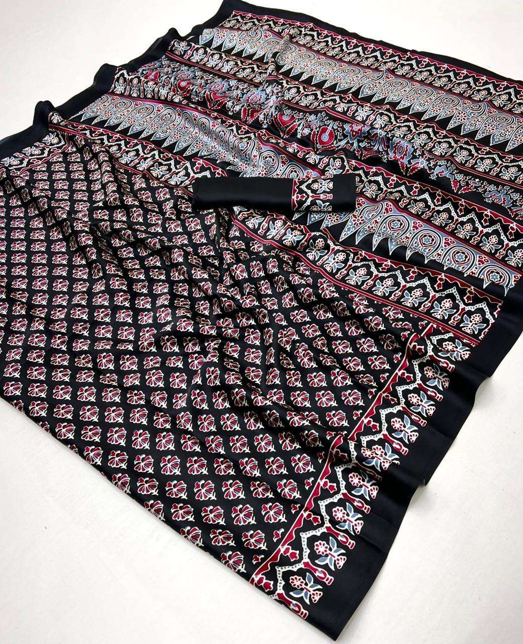 *Blouse : Modal Satin Ajrakh Print Saree*