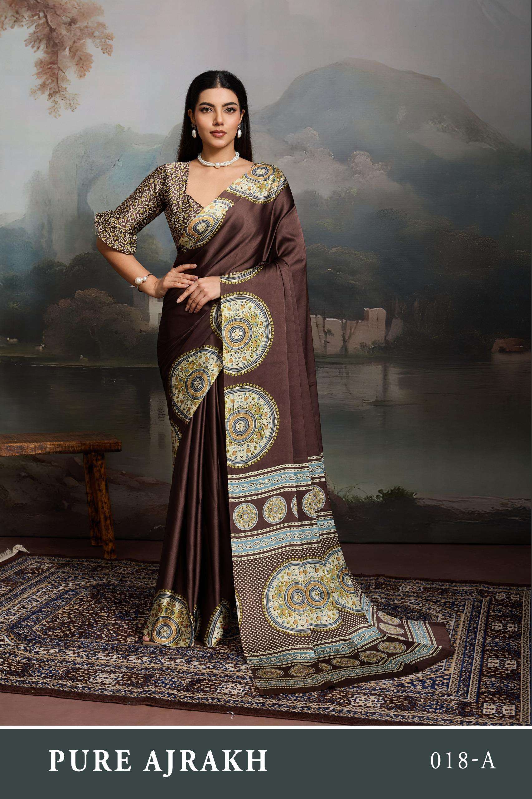 Pure Ajrakh 018 by Rajtex Series 018 A TO 018 F saree collection manufacturer Surat