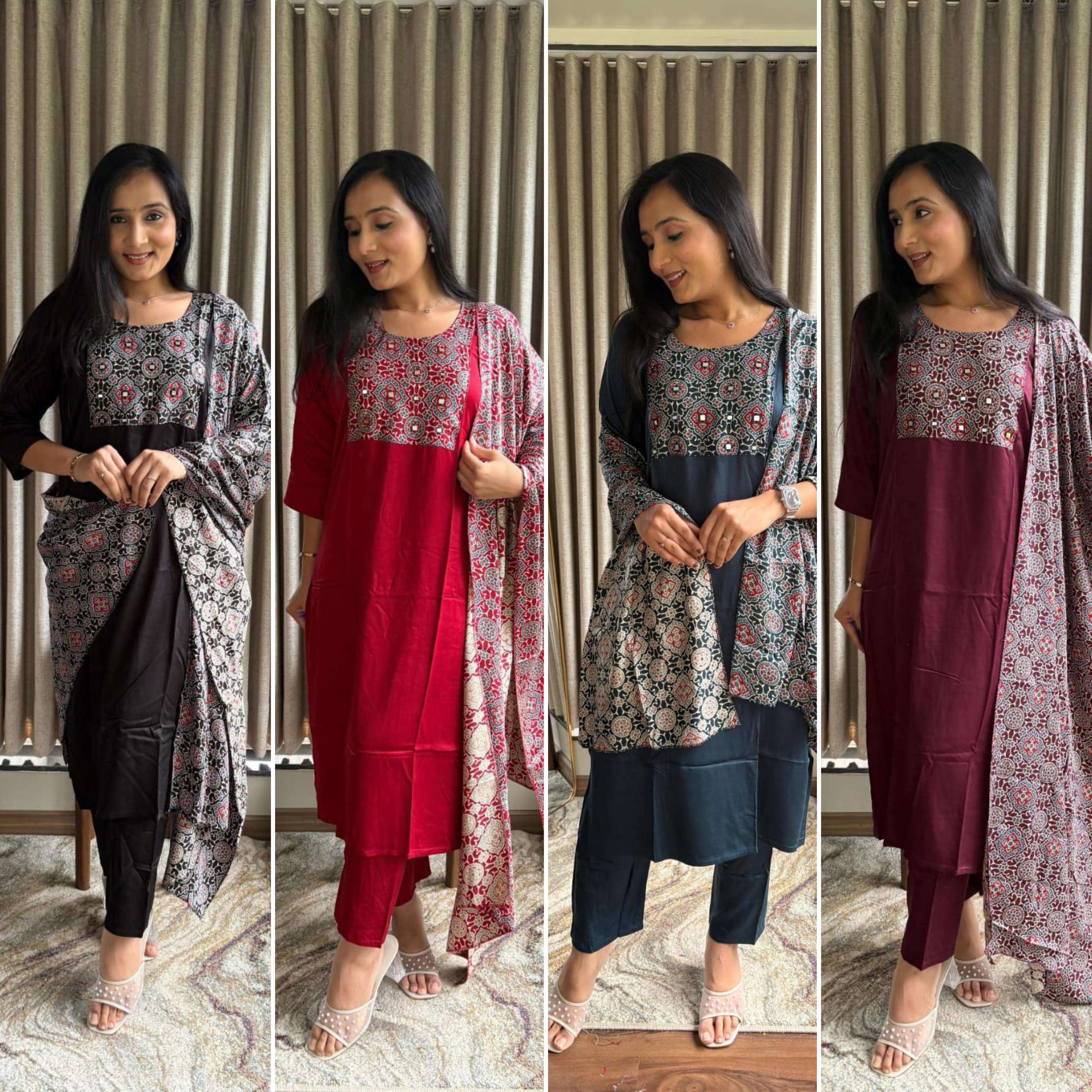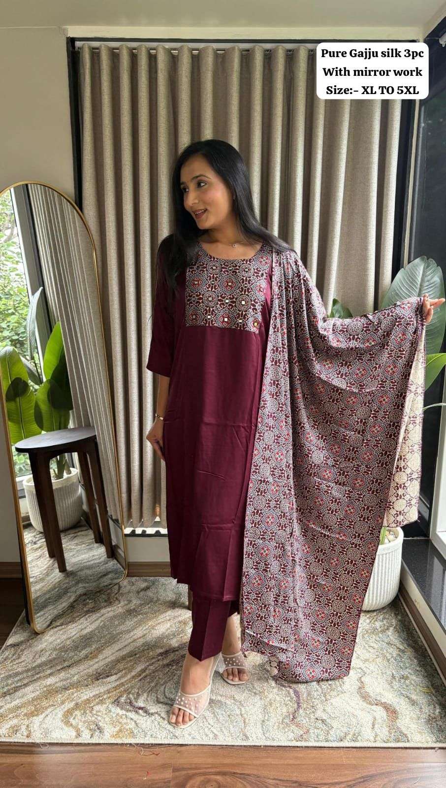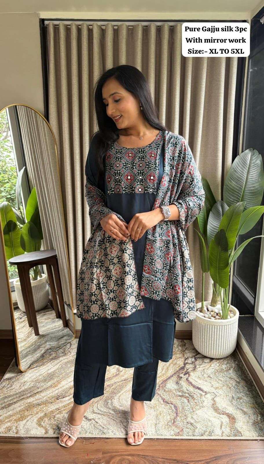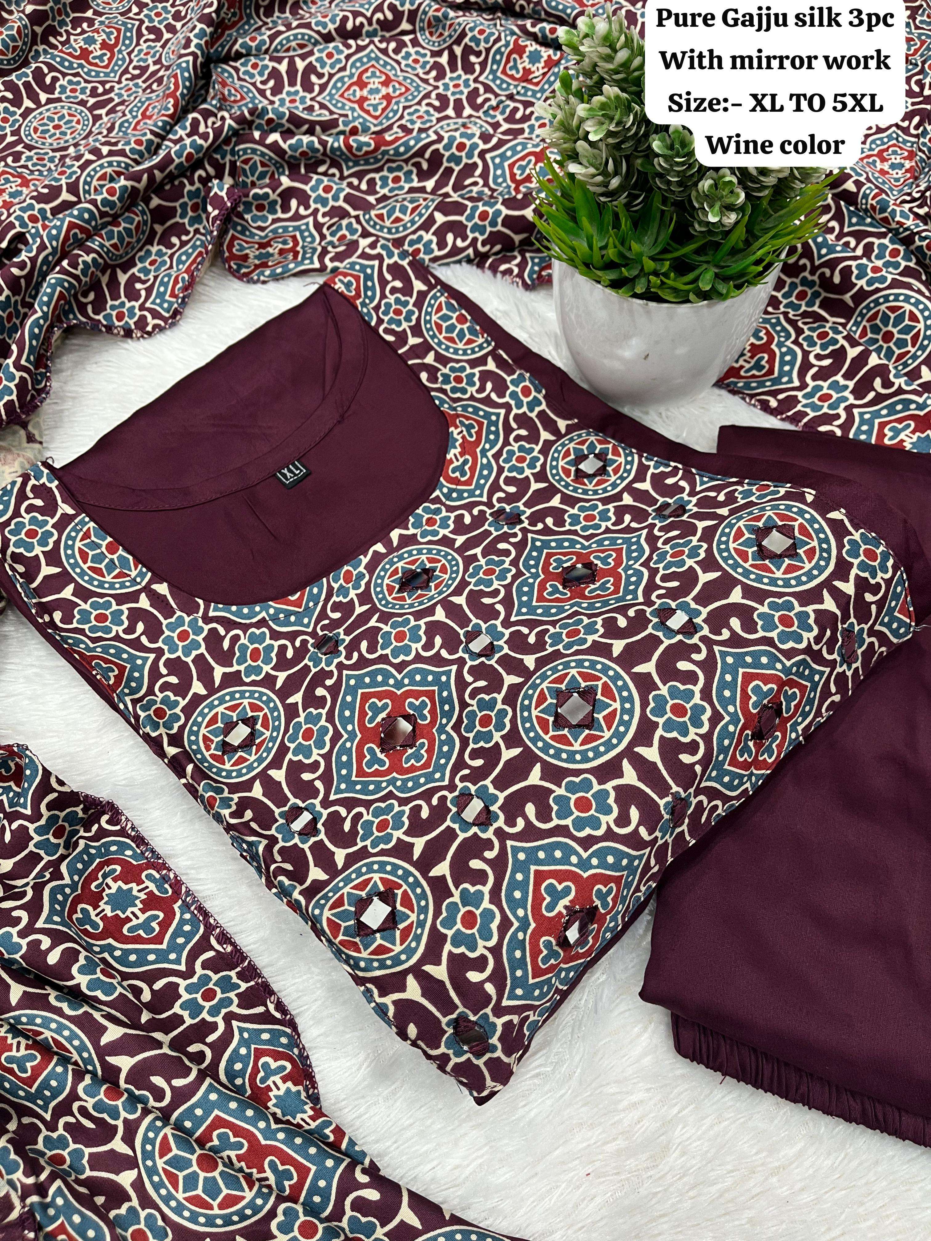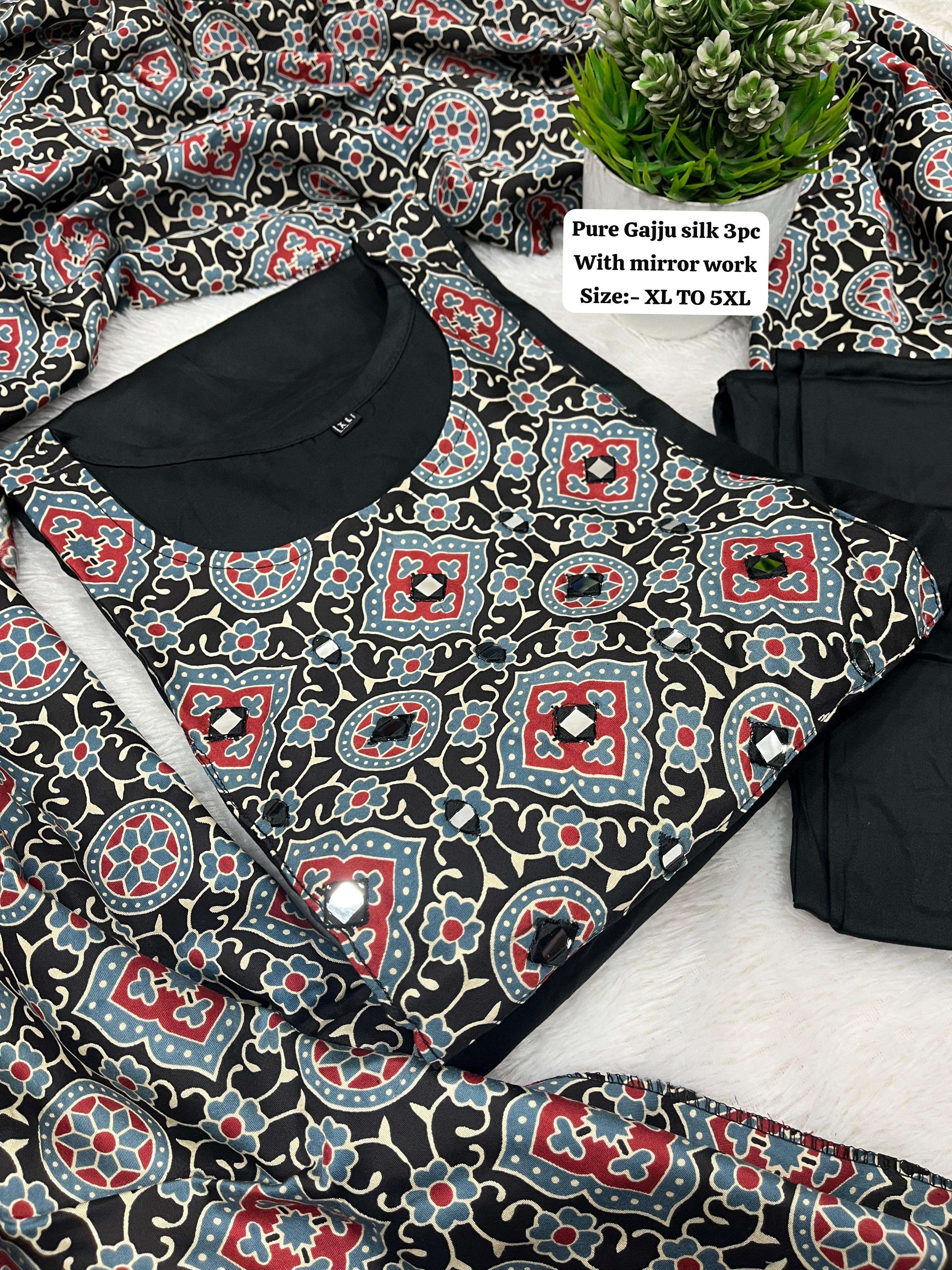 Pure Gaji silk kurti pant dupatta Set collection manufacturer Surat