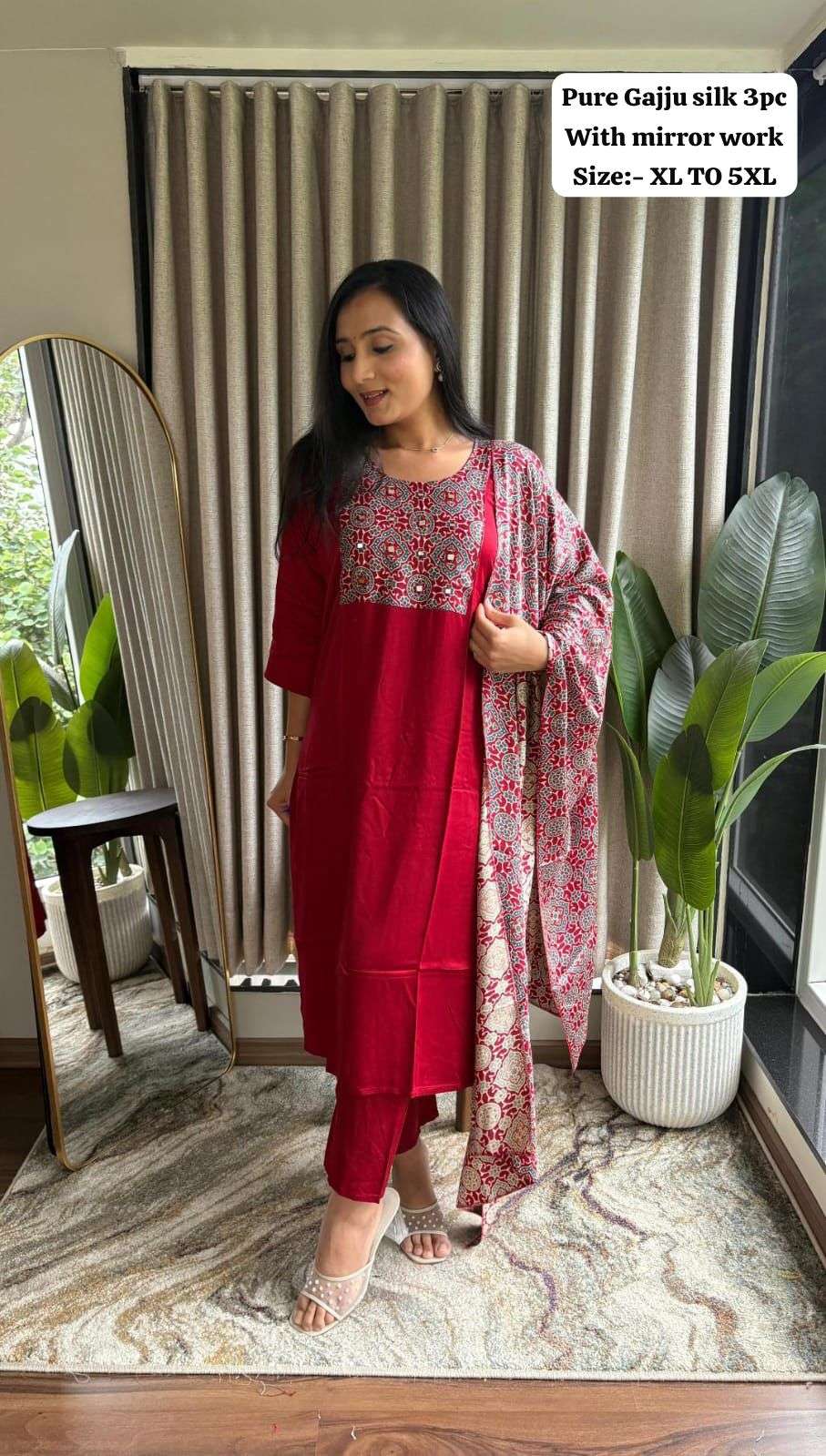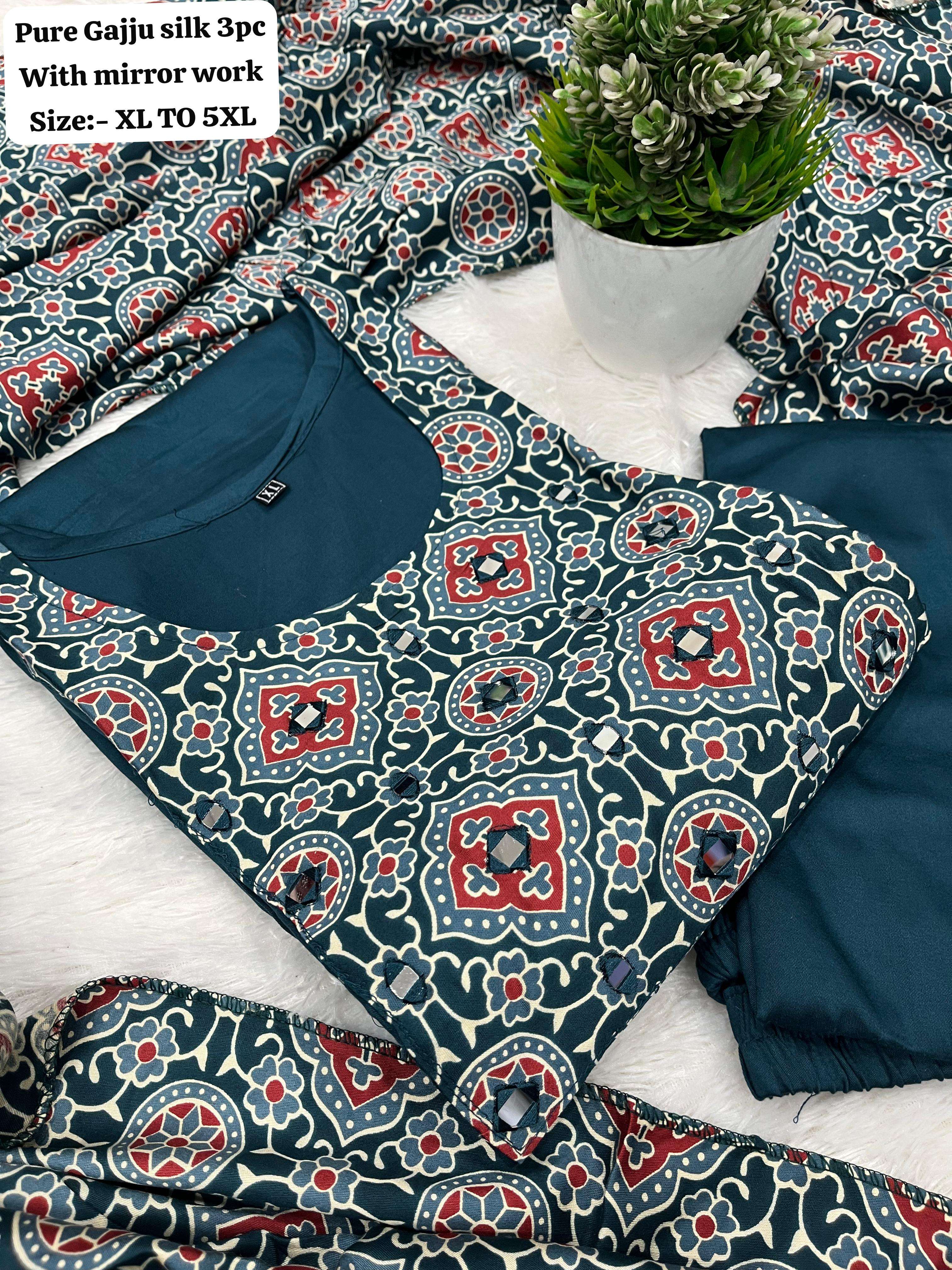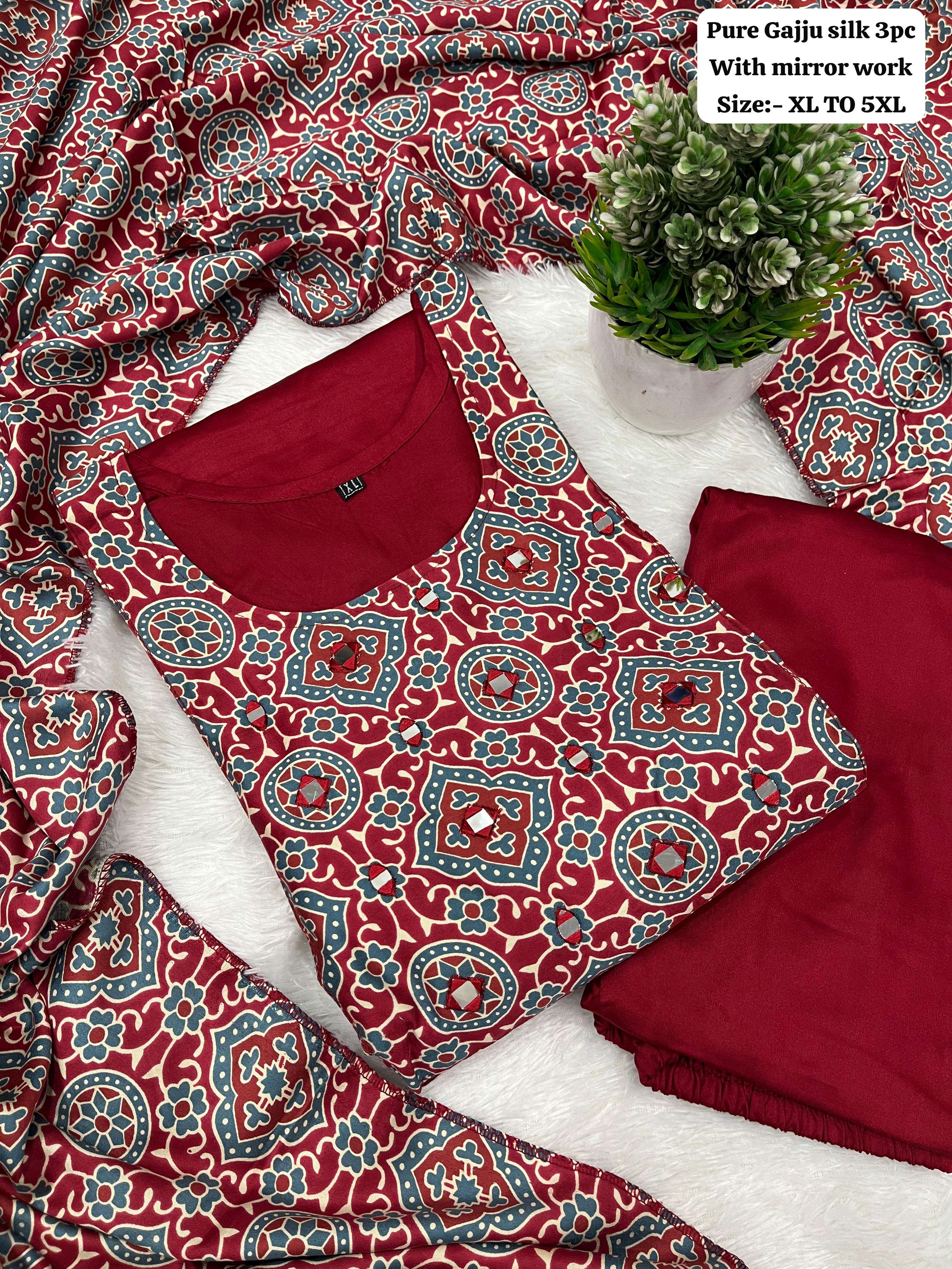 | Catalog | Pure Gaji silk kurti pant dupatta Set |