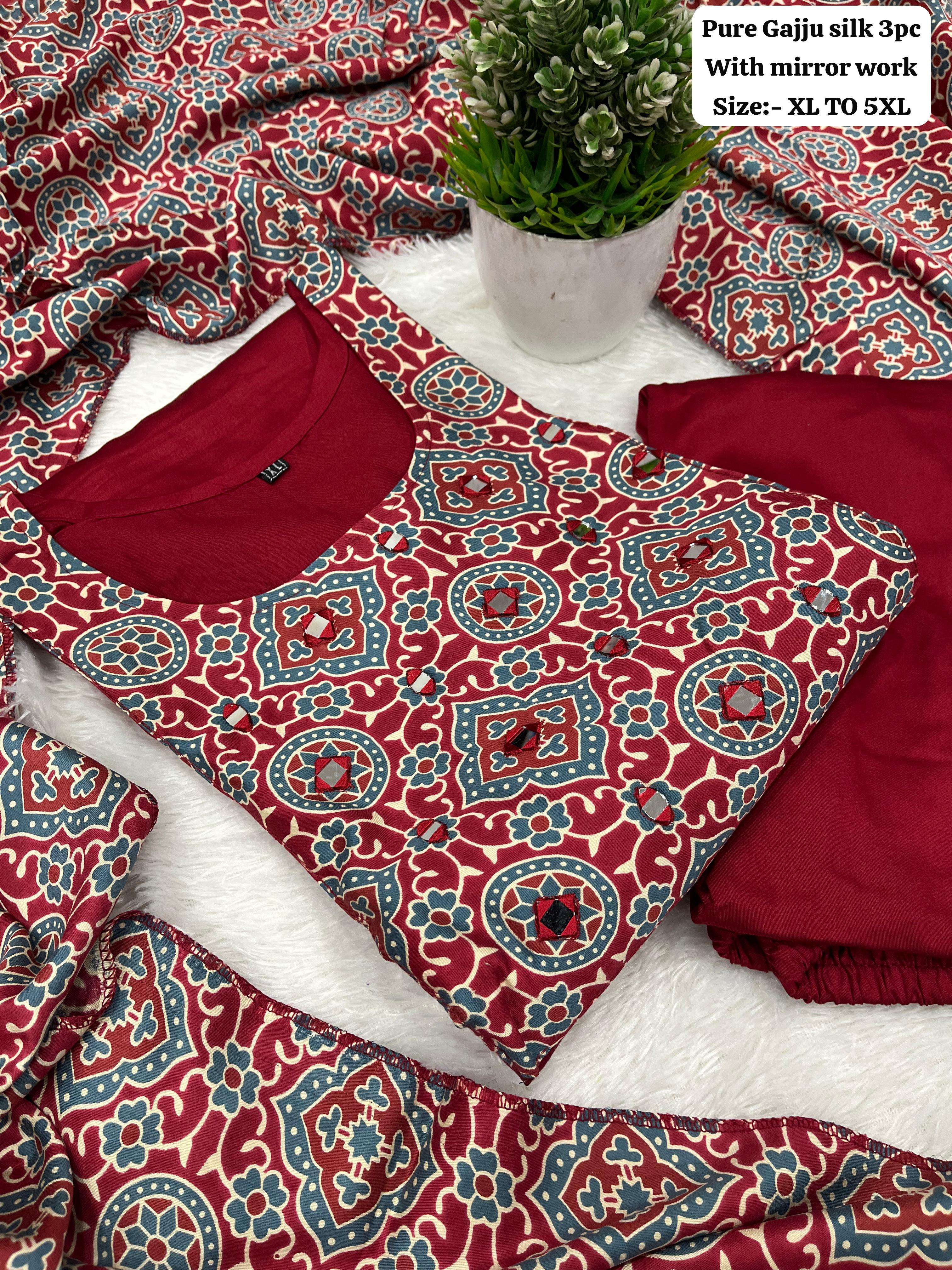 Buy Online Pure Gaji silk kurti pant dupatta Set collection manufacturer Surat 4 Pcs of Full Catalogue at Wholesale Price. Looking for Pure Gaji silk kurti pant dupatta Set collection manufacturer Surat Full Catalouge at Best Price? Buy Now Pure Gaji silk kurti pant dupatta Set collection manufacturer Surat at Wholesale Rate of Rs 4080 with Total 4 Pcs from authroized dealer and supplier of BRAND'S Brand. Cost of Each piece is just only Rs 1020 which is very low and affordable price to resale the product in your retail store ,This is Surat based Wholesale Supplier & Dealer of BRAND'S Brand. Click on Brand name to Know more about BRAND'S Brand's products.Call or Whatsapp on 9898838984 for booking or enquiry