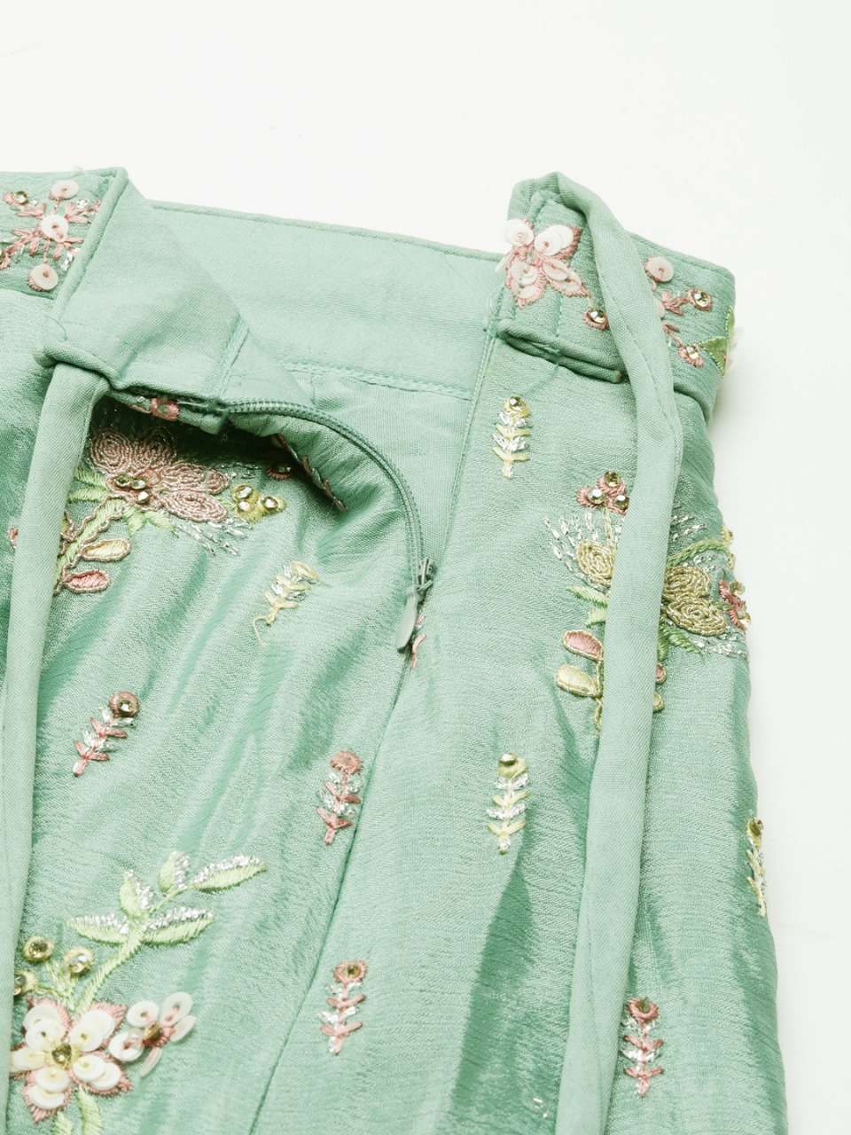 • Lehenga:- Made of premium quality Lime Green Colour Pure Georgette Full Flaire Semi-Stitched Lehenga With Multi colour Sequins work Zarkan and Coding thread Work Embroidery. Has a cut work border on the hemline. • Lehenga Stitching Note:- Double Shantoon inner with 2 layers of Can Can 17 and 10 inch with 2 layers of Buckram 12 and 4 inch is given together in lehenga. • Dupatta:- Lime Green Net Dupatta has a multi colour sequinse work Ethnic motif with Embroidery lace Border. • Blouse:- Lime Green Pure Georgette all over material With Heavy Embroidery multi colour sequinse work. • Lehenga Flair : 3.5 meter with Inner attached. • Waist Belt: Perfect Accessory for Lehenga, Sequinse Embroidered belt with Stunning tassels are affixed on the drawstrings. 1 Lehenga, 1 Blouse, 1 Dupatta • Lehenga: Customizable upto 40 inches at the waist, • Lehenga Flair: 3.5 Meter • Lehenga Belt: 27 inch. • Lehenga length: 42 inches at the length • Choli: Customizable upto 40 inches at the Bust • Dupatta length: 2.50 meter • Dupatta width: 1 meter |