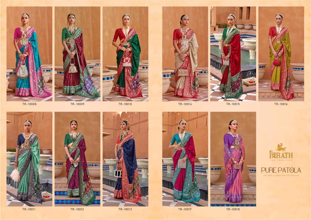 Buy Online Pure Patola Vol 1 By Trirath 11 Pcs of Full Catalogue at Wholesale Price. Looking for Pure Patola Vol 1 By Trirath Full Catalouge at Best Price? Buy Now Pure Patola Vol 1 By Trirath at Wholesale Rate of Rs 9625 with Total 11 Pcs from authroized dealer and supplier of Brand. Cost of Each piece is just only Rs 875 which is very low and affordable price to resale the product in your retail store ,This is Surat based Wholesale Supplier & Dealer of Brand. Click on Brand name to Know more about Brand's products.Call or Whatsapp on 9898838984 for booking or enquiry