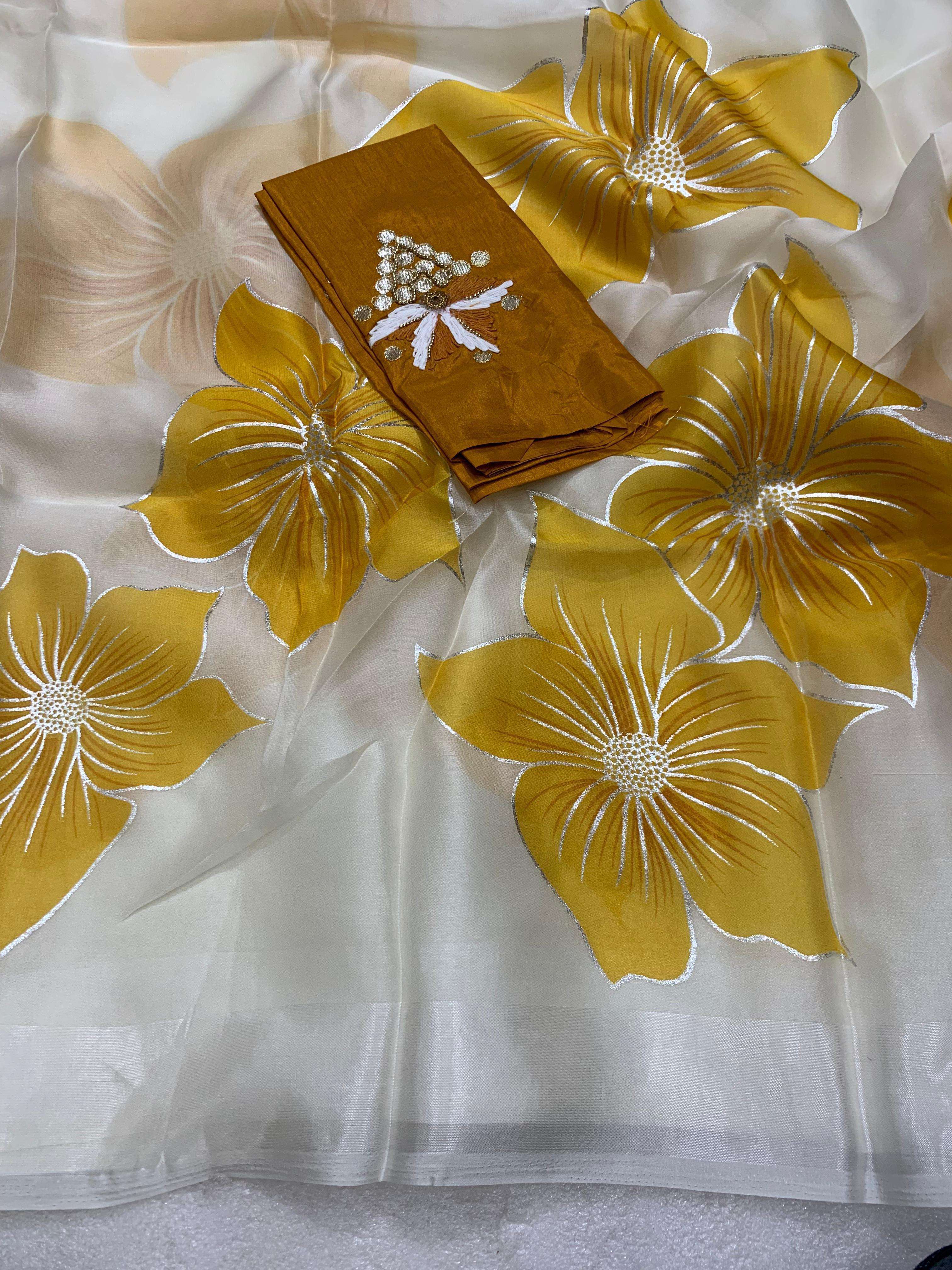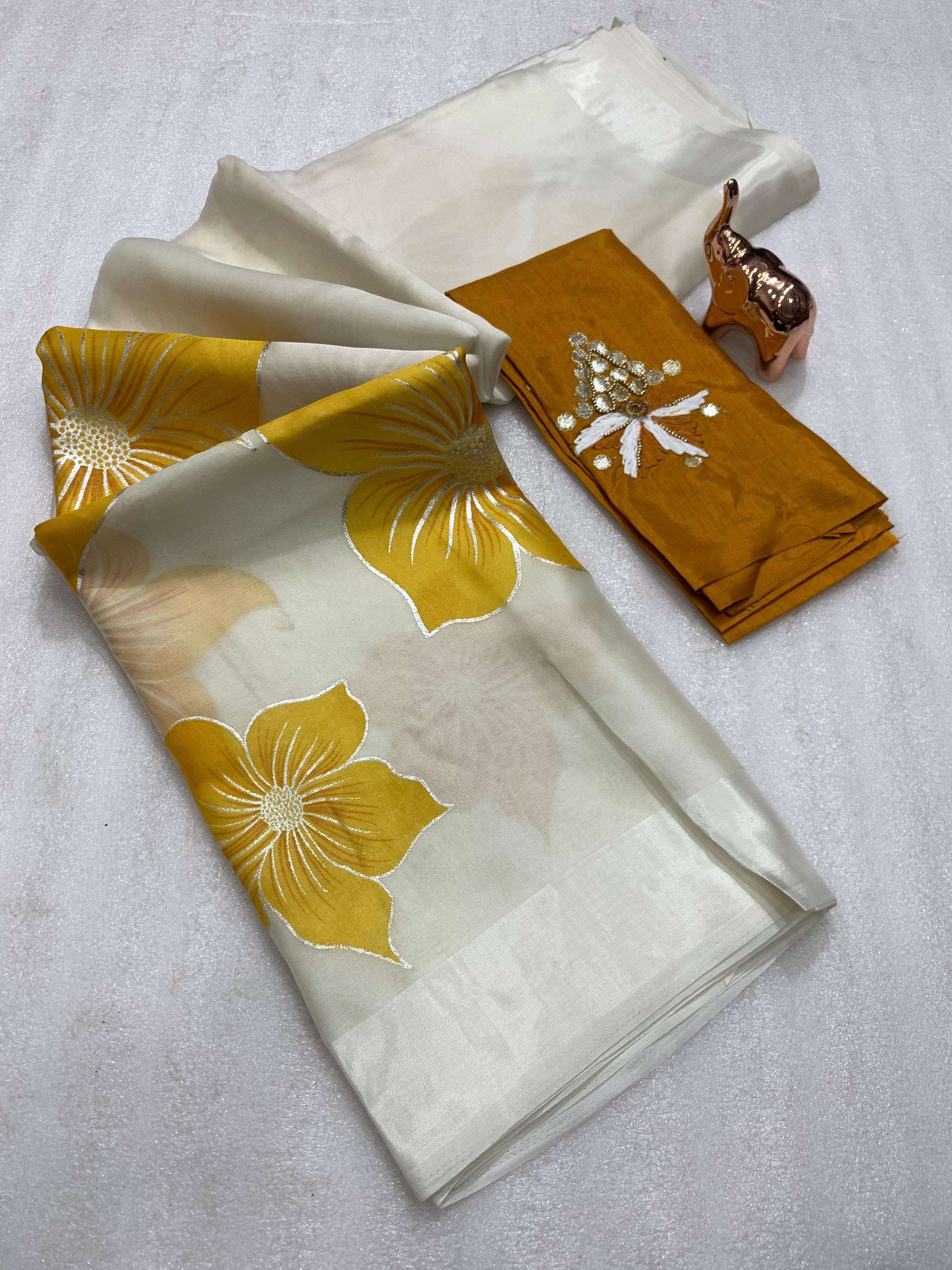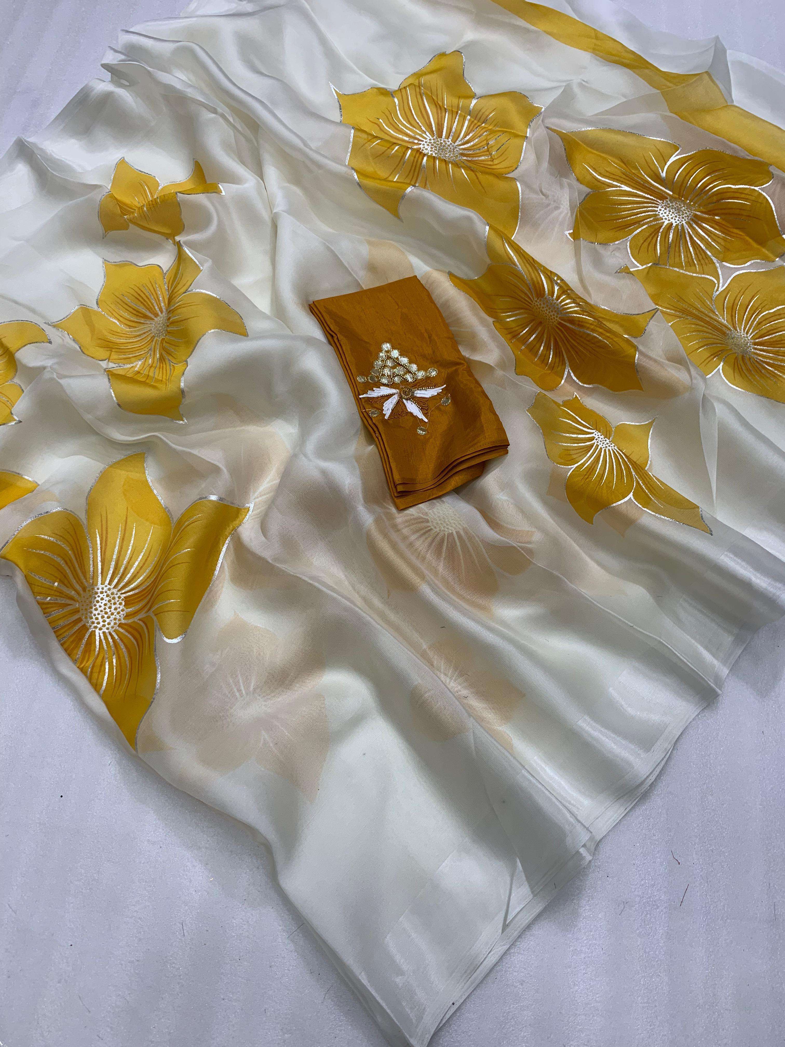 Pure Soft Organza Foil Print Saree with Designer Butti Blouse