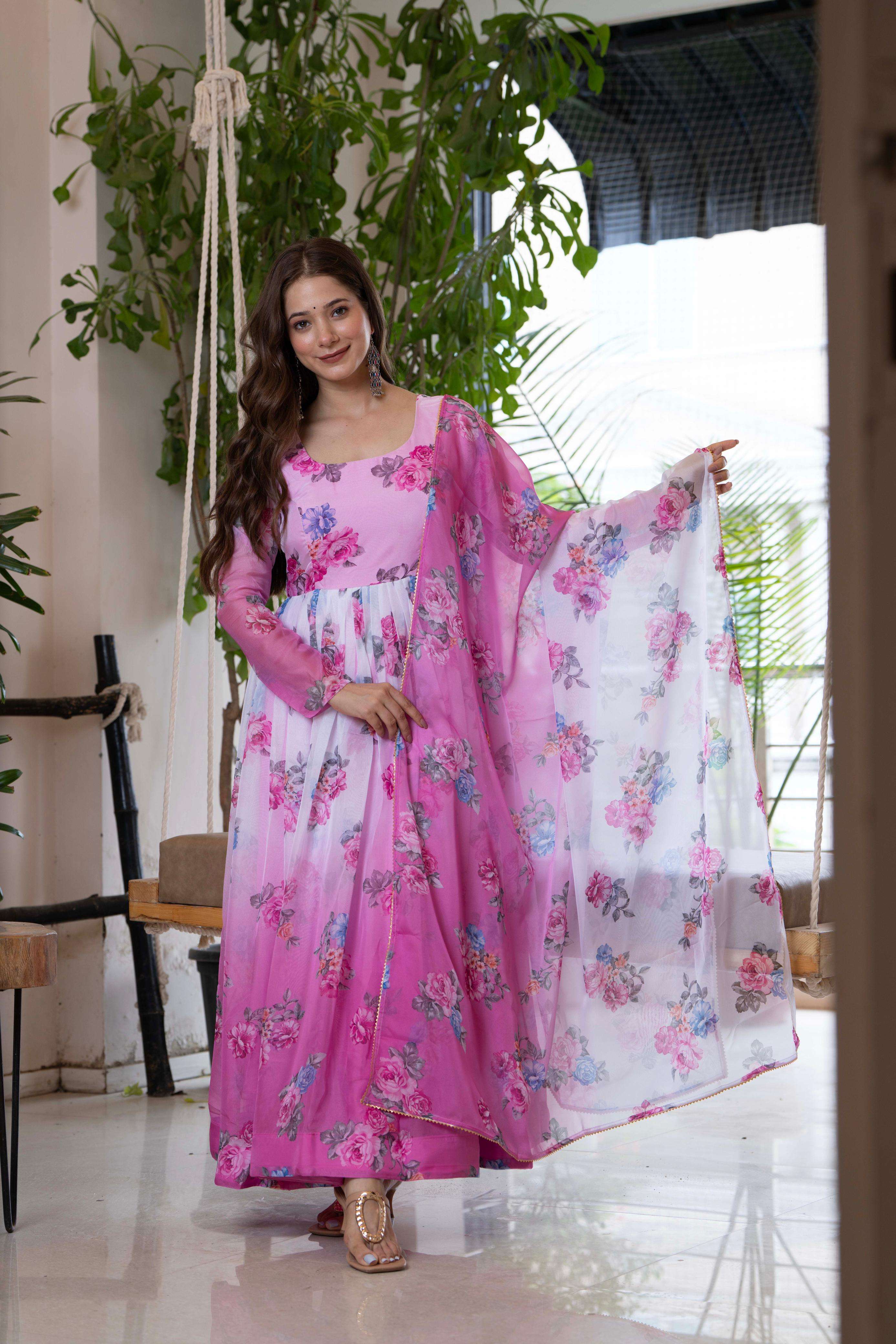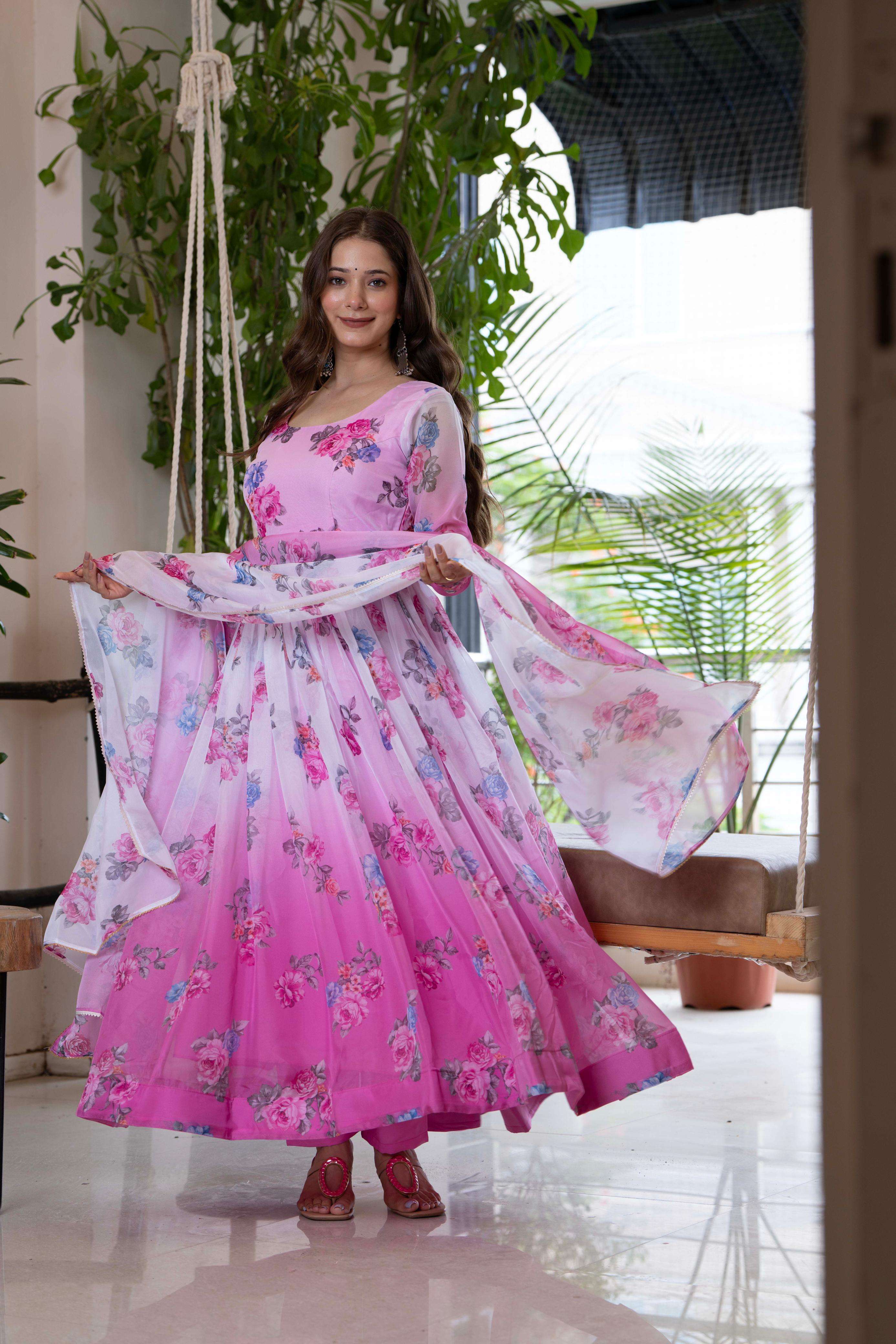 👗 Gown Inner: Micro Cotton Full Lining 🧣 Dupatta: 2.3 Mtr Pure Soft Lightweight Organza with Floral Print & Fancy Border Lace 👖 Pant: Micro Cotton Free Size, Fully Stitched