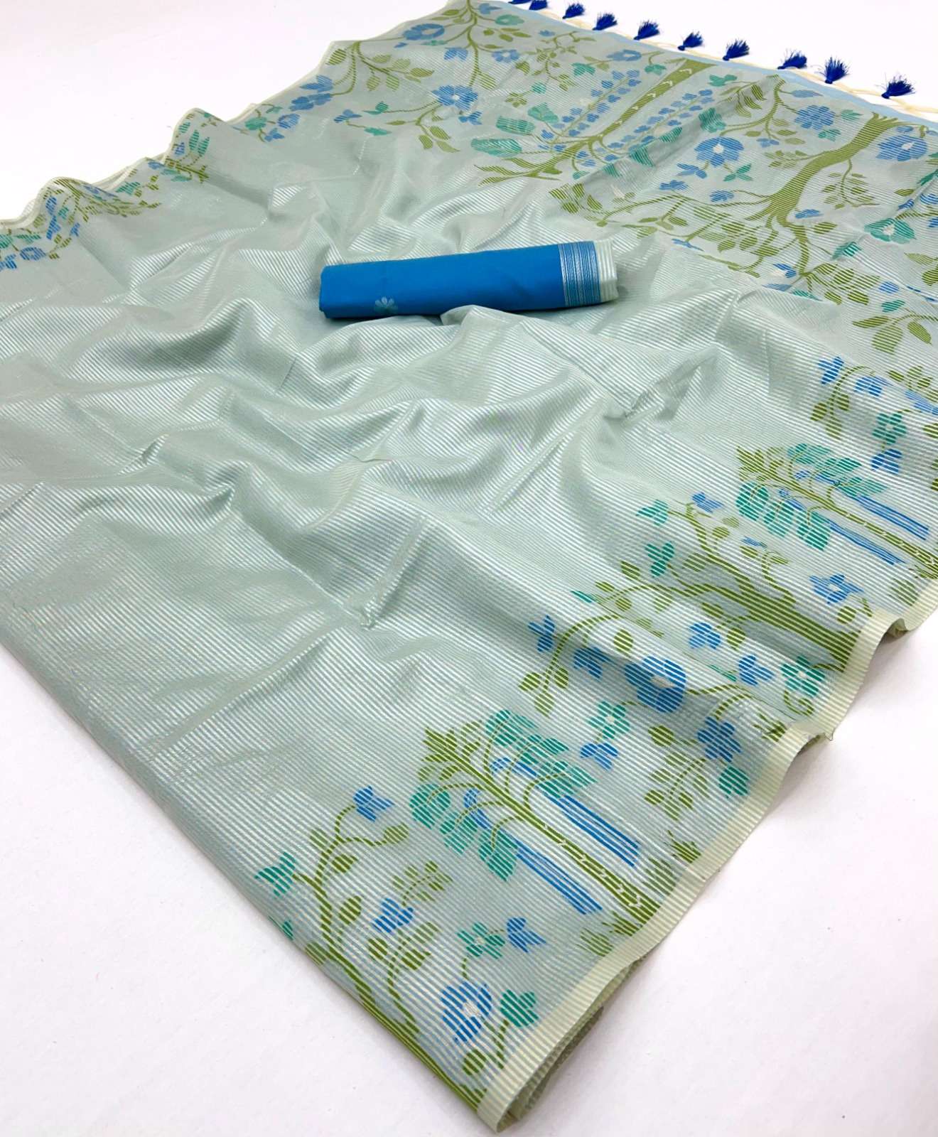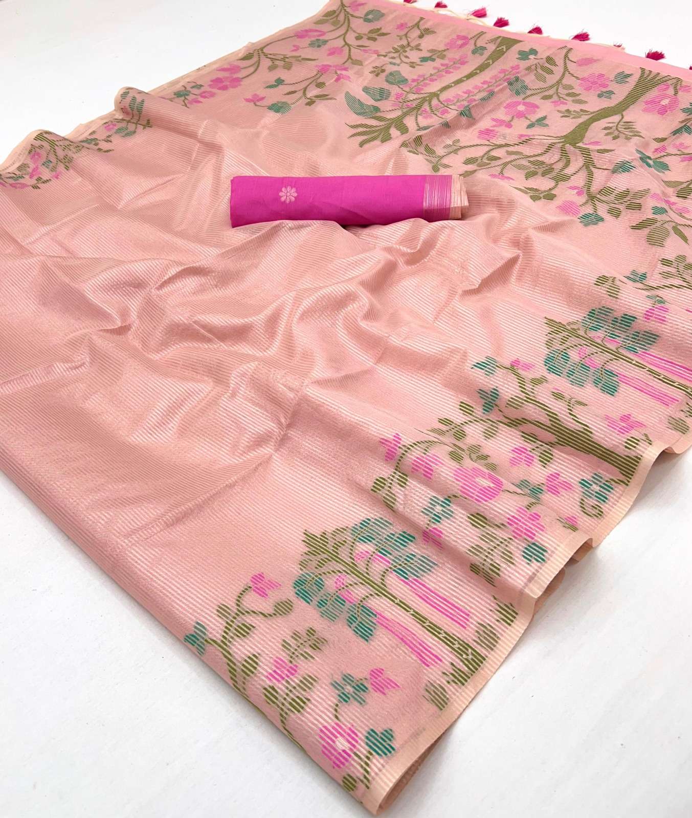 👗 Saree Fabric: Handloom Zari Tissue Brasso Weaving 👚 Blouse: Handloom Zari Tissue Brasso Weaving