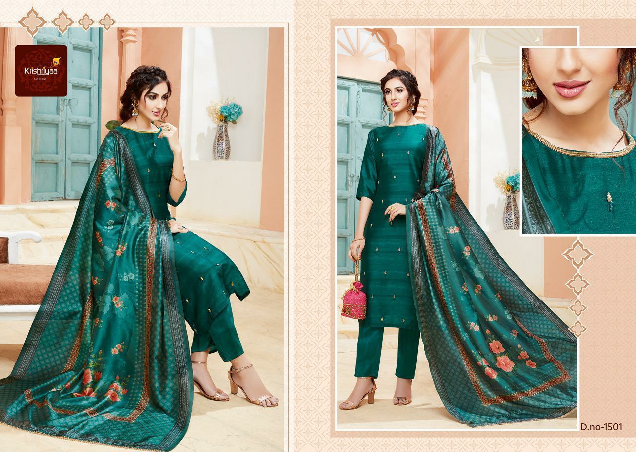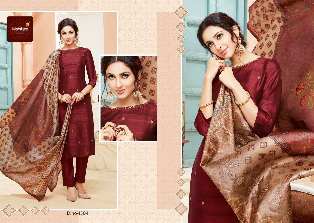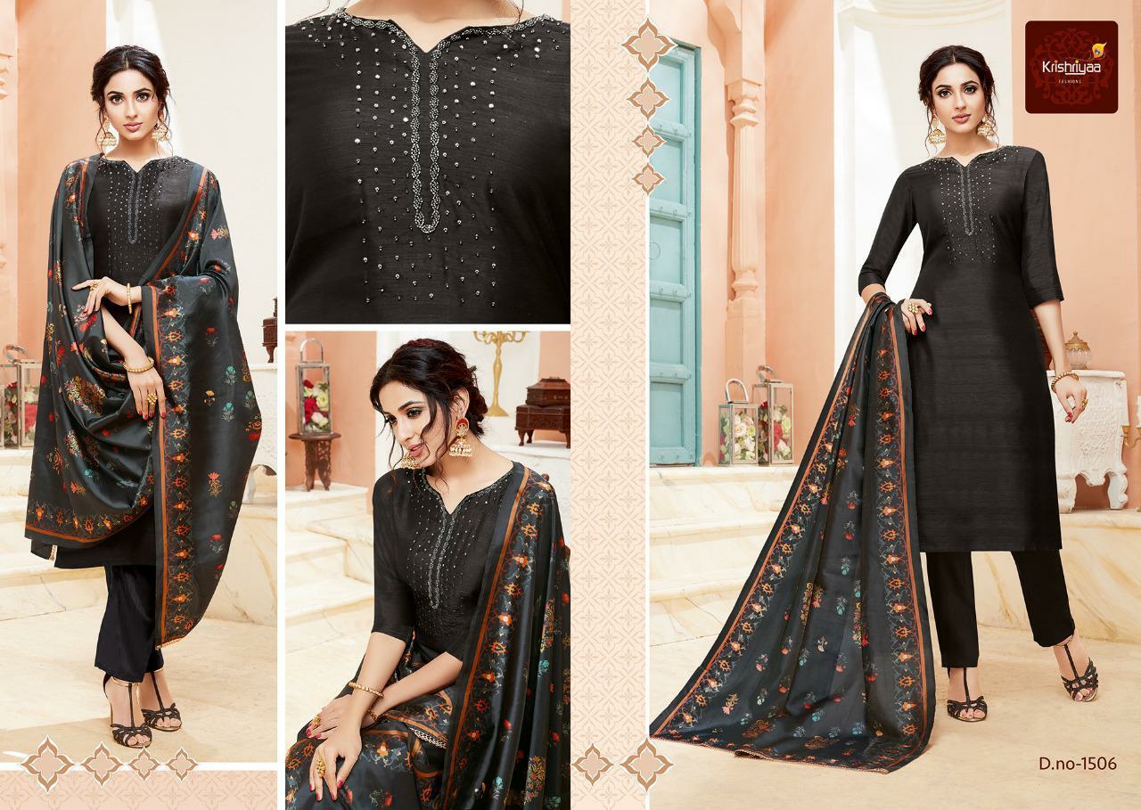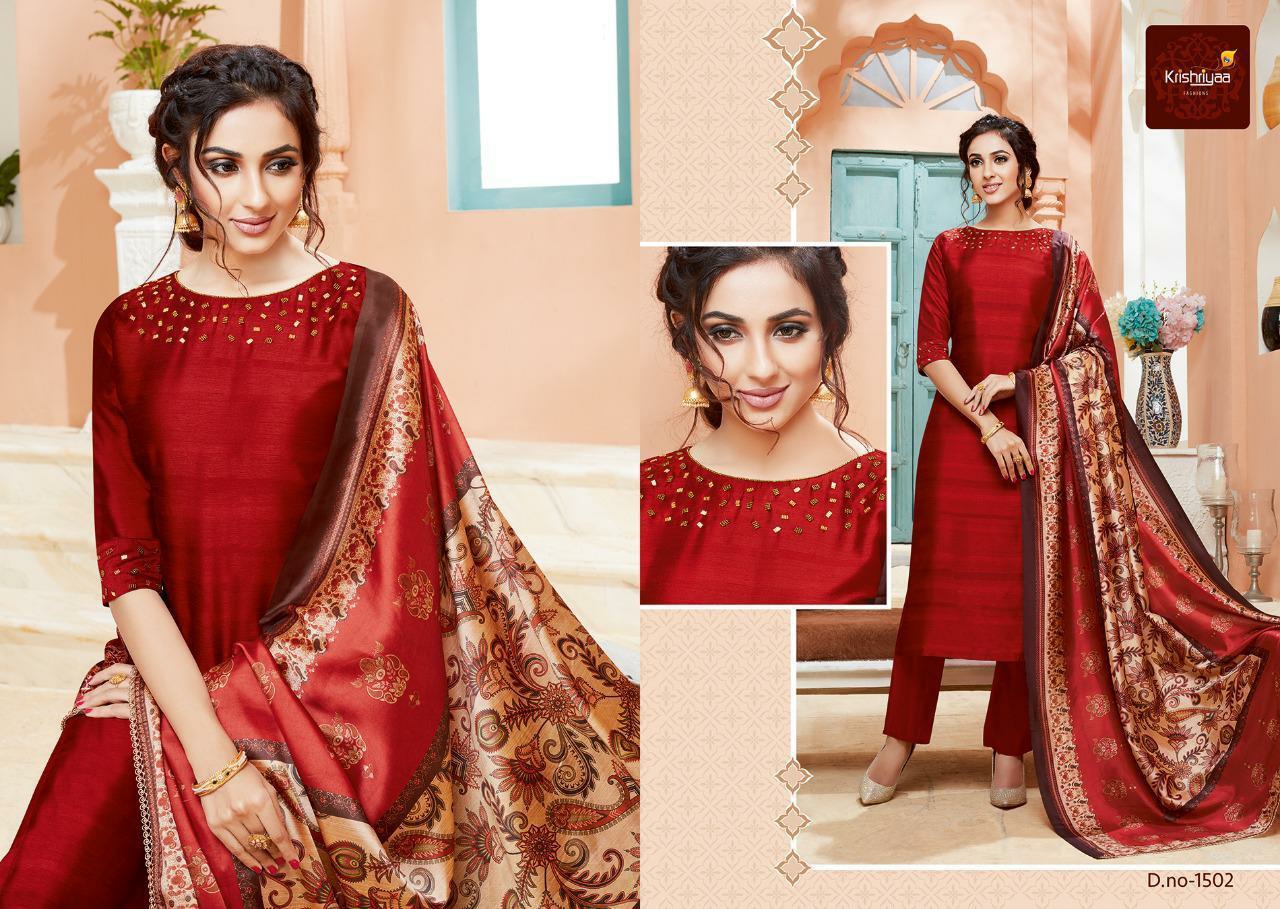 Buy Online Purity By Krishriyaa Fashions Silk Designer Ready To Wear Suits Wholesale Supplier Surat 7 Pcs of Full Catalogue at Wholesale Price. Looking for Purity By Krishriyaa Fashions Silk Designer Ready To Wear Suits Wholesale Supplier Surat Full Catalouge at Best Price? Buy Now Purity By Krishriyaa Fashions Silk Designer Ready To Wear Suits Wholesale Supplier Surat at Wholesale Rate of Rs 10080 with Total 7 Pcs from authroized dealer and supplier of KRISHRYAA Brand. Cost of Each piece is just only Rs 1440 which is very low and affordable price to resale the product in your retail store ,This is Surat based Wholesale Supplier & Dealer of KRISHRYAA Brand. Click on Brand name to Know more about KRISHRYAA Brand's products.Call or Whatsapp on 9898838984 for booking or enquiry