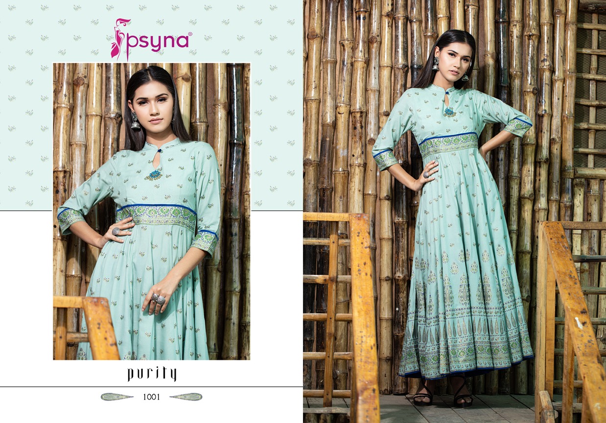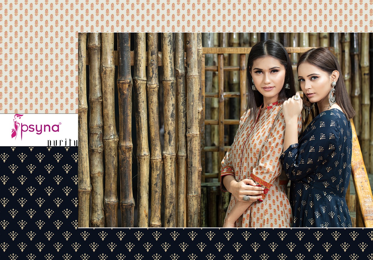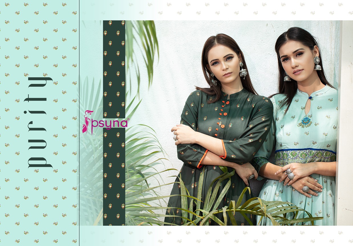 Buy Online Purity By Psyna Tex Reyon Desinger Long Kurtis Wholesale Supplier And Dealer Surat 5 Pcs of Full Catalogue at Wholesale Price. Looking for Purity By Psyna Tex Reyon Desinger Long Kurtis Wholesale Supplier And Dealer Surat Full Catalouge at Best Price? Buy Now Purity By Psyna Tex Reyon Desinger Long Kurtis Wholesale Supplier And Dealer Surat at Wholesale Rate of Rs 4995 with Total 5 Pcs from authroized dealer and supplier of PSYNA Brand. Cost of Each piece is just only Rs 999 which is very low and affordable price to resale the product in your retail store ,This is Surat based Wholesale Supplier & Dealer of PSYNA Brand. Click on Brand name to Know more about PSYNA Brand's products.Call or Whatsapp on 9898838984 for booking or enquiry