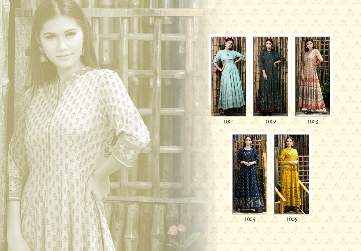*PSYNA TEX,* Presents, * P U R I T Y* *PURE GOLD PRINTED GOWN ON RAYON * *C A T A L O G U E* N A M E - *PURITY* F A B R I C - * RAYON * S I Z E - * L, XL, 2XL * L E N G T H - * 52 inches* D E S I G N S - *5 PCS / SET* RATE : 999/- Gst extra |