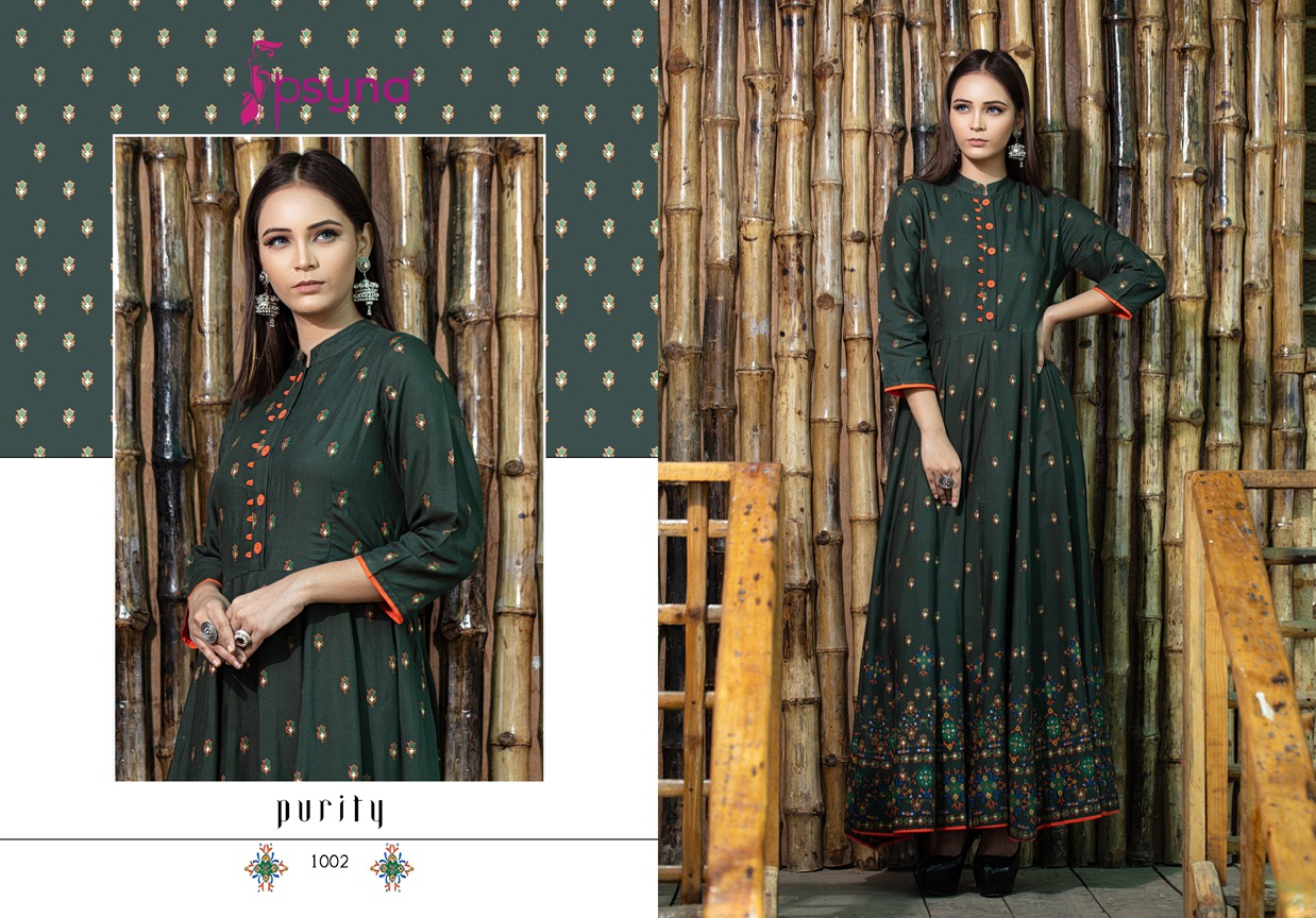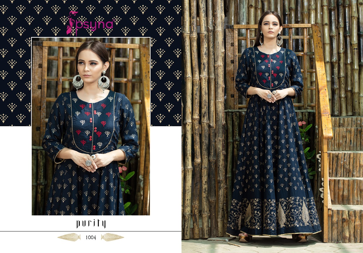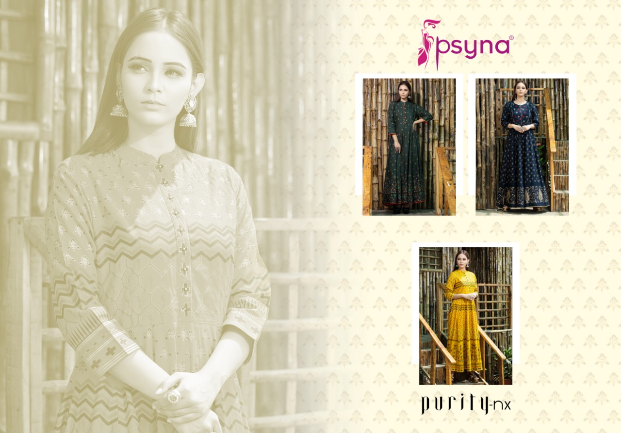 Buy Online Purity Nx By Psyna Tex Reyon Printed Desinger Gowns Wholesale Supplier And Dealer Surat 3 Pcs of Full Catalogue at Wholesale Price. Looking for Purity Nx By Psyna Tex Reyon Printed Desinger Gowns Wholesale Supplier And Dealer Surat Full Catalouge at Best Price? Buy Now Purity Nx By Psyna Tex Reyon Printed Desinger Gowns Wholesale Supplier And Dealer Surat at Wholesale Rate of Rs 2997 with Total 3 Pcs from authroized dealer and supplier of PSYNA Brand. Cost of Each piece is just only Rs 999 which is very low and affordable price to resale the product in your retail store ,This is Surat based Wholesale Supplier & Dealer of PSYNA Brand. Click on Brand name to Know more about PSYNA Brand's products.Call or Whatsapp on 9898838984 for booking or enquiry