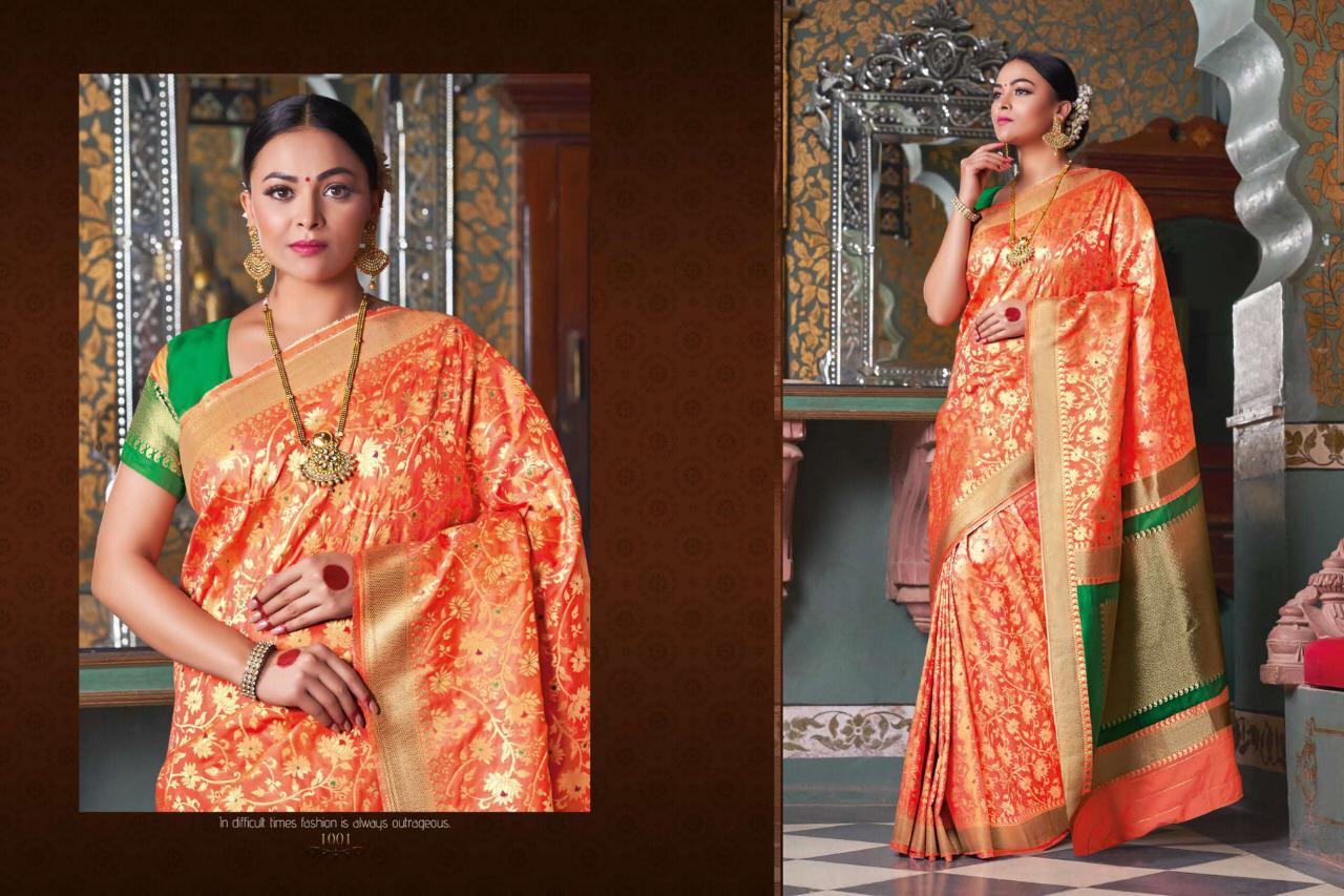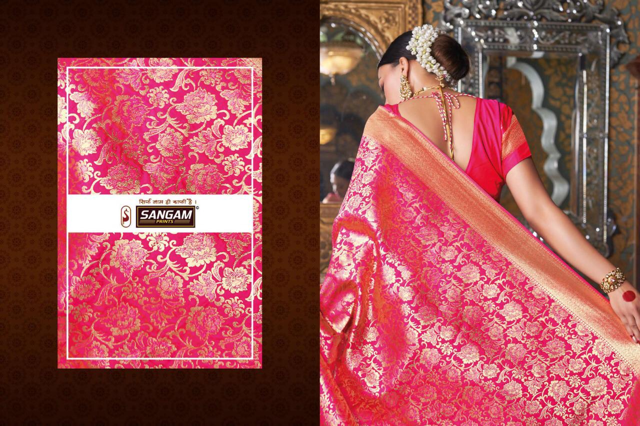 Brand- Sangam. Catlog name -PURNIMA -2 Rate -1845 per pcs . Set To Set. GST 5 Percent Extra . Banarsi silk Rich pallu Delivery today |