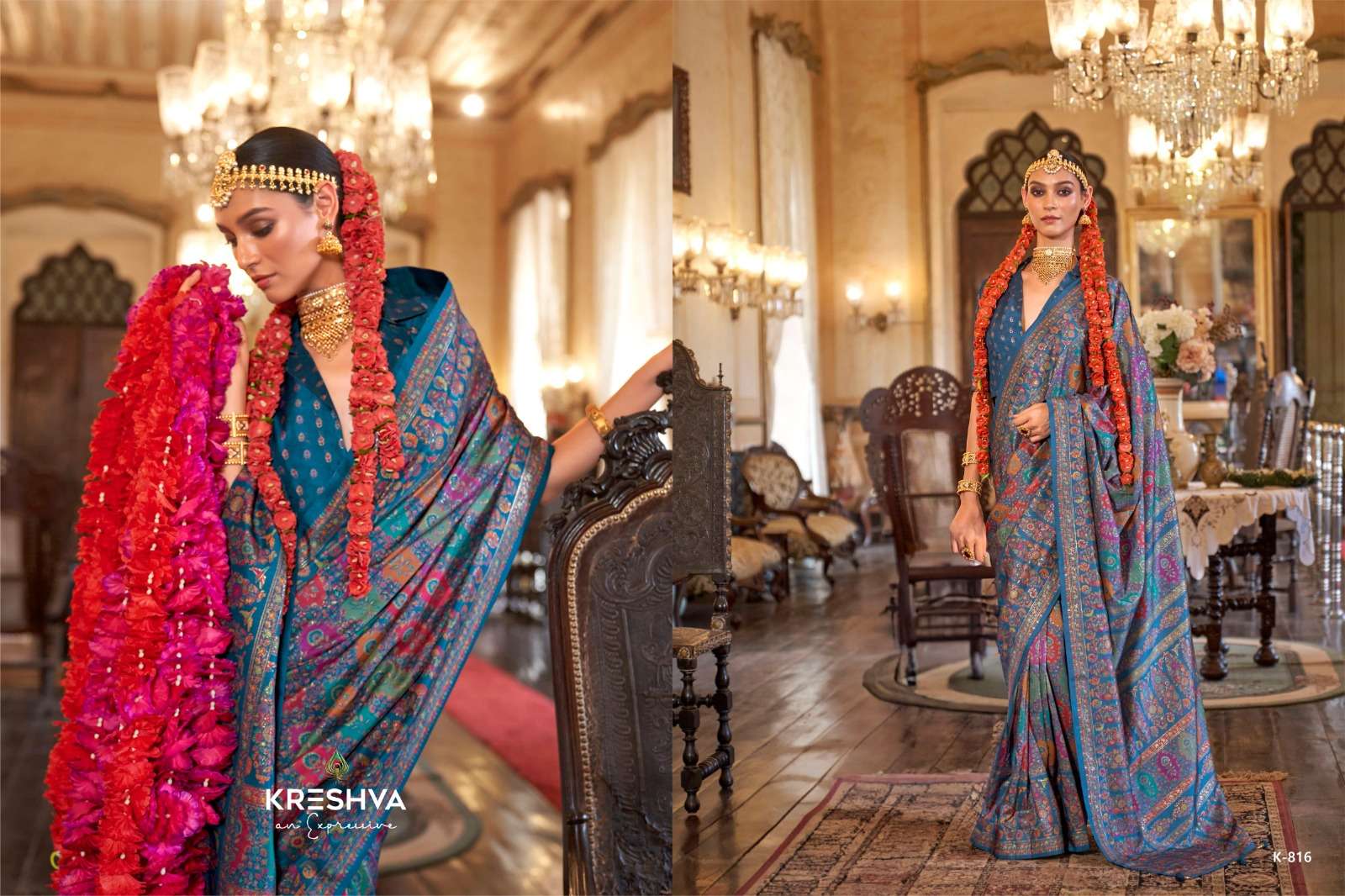 Buy Online Pushpa Rani Series 812 To 817 by Kreshva silk saree collection manufacturer surat 6 Pcs of Full Catalogue at Wholesale Price. Looking for Pushpa Rani Series 812 To 817 by Kreshva silk saree collection manufacturer surat Full Catalouge at Best Price? Buy Now Pushpa Rani Series 812 To 817 by Kreshva silk saree collection manufacturer surat at Wholesale Rate of Rs 11970 with Total 6 Pcs from authroized dealer and supplier of KRESHVA Brand. Cost of Each piece is just only Rs 1995 which is very low and affordable price to resale the product in your retail store ,This is Surat based Wholesale Supplier & Dealer of KRESHVA Brand. Click on Brand name to Know more about KRESHVA Brand's products.Call or Whatsapp on 9898838984 for booking or enquiry
