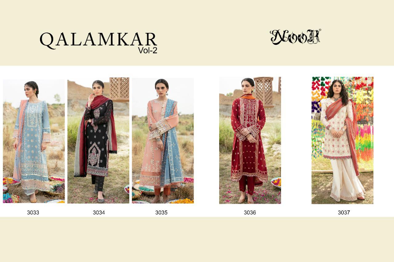 Buy Online Qalamkar Vol 2 By Noor Dealer And Exporter Surat Gujarat 5 Pcs of Full Catalogue at Wholesale Price. Looking for Qalamkar Vol 2 By Noor Dealer And Exporter Surat Gujarat Full Catalouge at Best Price? Buy Now Qalamkar Vol 2 By Noor Dealer And Exporter Surat Gujarat at Wholesale Rate of Rs 5495 with Total 5 Pcs from authroized dealer and supplier of Brand. Cost of Each piece is just only Rs 1099 which is very low and affordable price to resale the product in your retail store ,This is Surat based Wholesale Supplier & Dealer of Brand. Click on Brand name to Know more about Brand's products.Call or Whatsapp on 9898838984 for booking or enquiry