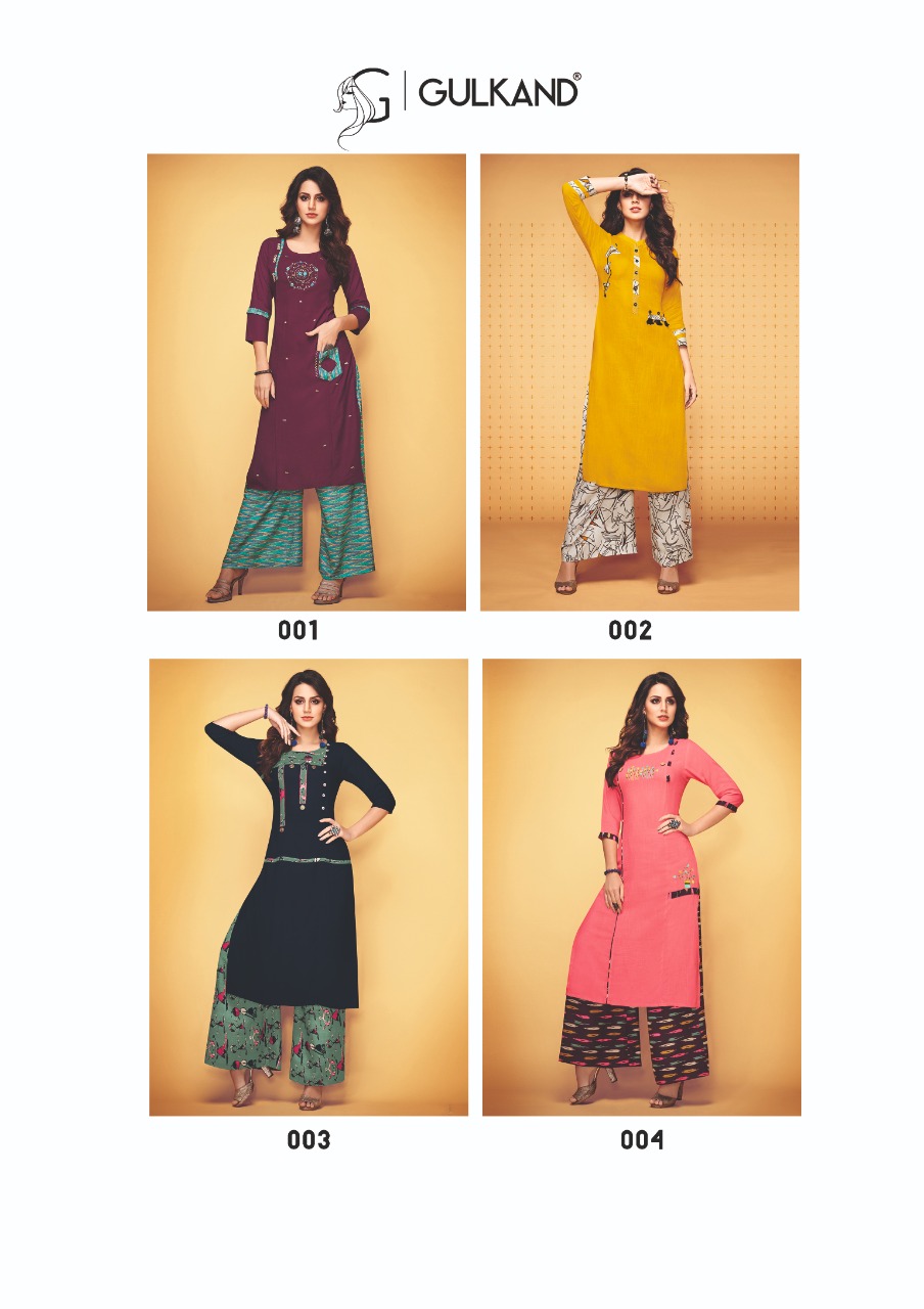 Queen By Gulkand Aashirwad 001 Series Fancy Reyon Slub Kurti And Plazzo Collection Wholesale Dealer Surat