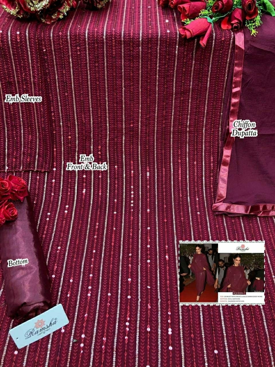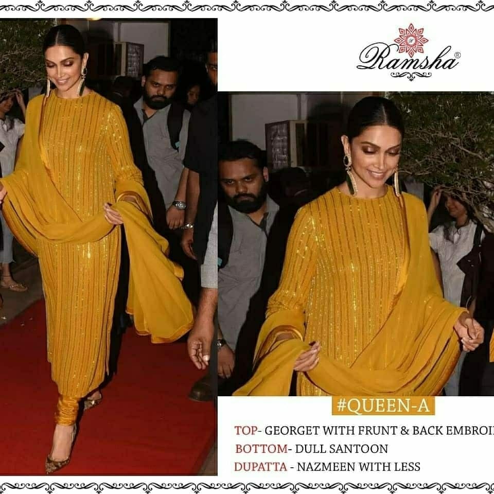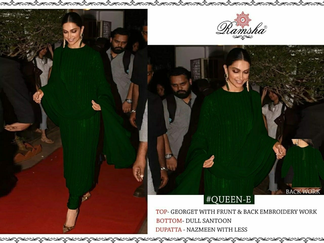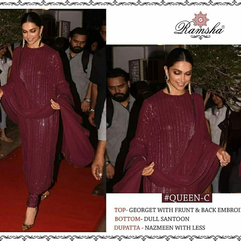 Buy Online Queen By Ramsha Georgette Pakistani Suits 5 Pcs of Full Catalogue at Wholesale Price. Looking for Queen By Ramsha Georgette Pakistani Suits Full Catalouge at Best Price? Buy Now Queen By Ramsha Georgette Pakistani Suits at Wholesale Rate of Rs 4750 with Total 5 Pcs from authroized dealer and supplier of Brand. Cost of Each piece is just only Rs 950 which is very low and affordable price to resale the product in your retail store ,This is Surat based Wholesale Supplier & Dealer of Brand. Click on Brand name to Know more about Brand's products.Call or Whatsapp on 9898838984 for booking or enquiry