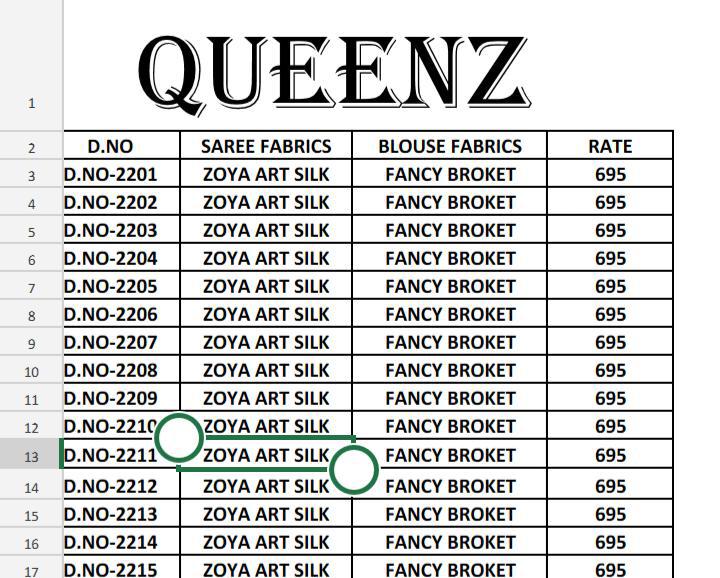 Buy Online Queenz By Lady Ethnic Art Sarees Wholesale Supplier And Dealer Surat 17 Pcs of Full Catalogue at Wholesale Price. Looking for Queenz By Lady Ethnic Art Sarees Wholesale Supplier And Dealer Surat Full Catalouge at Best Price? Buy Now Queenz By Lady Ethnic Art Sarees Wholesale Supplier And Dealer Surat at Wholesale Rate of Rs 11815 with Total 17 Pcs from authroized dealer and supplier of LADYS ETHNIC Brand. Cost of Each piece is just only Rs 695 which is very low and affordable price to resale the product in your retail store ,This is Surat based Wholesale Supplier & Dealer of LADYS ETHNIC Brand. Click on Brand name to Know more about LADYS ETHNIC Brand's products.Call or Whatsapp on 9898838984 for booking or enquiry
