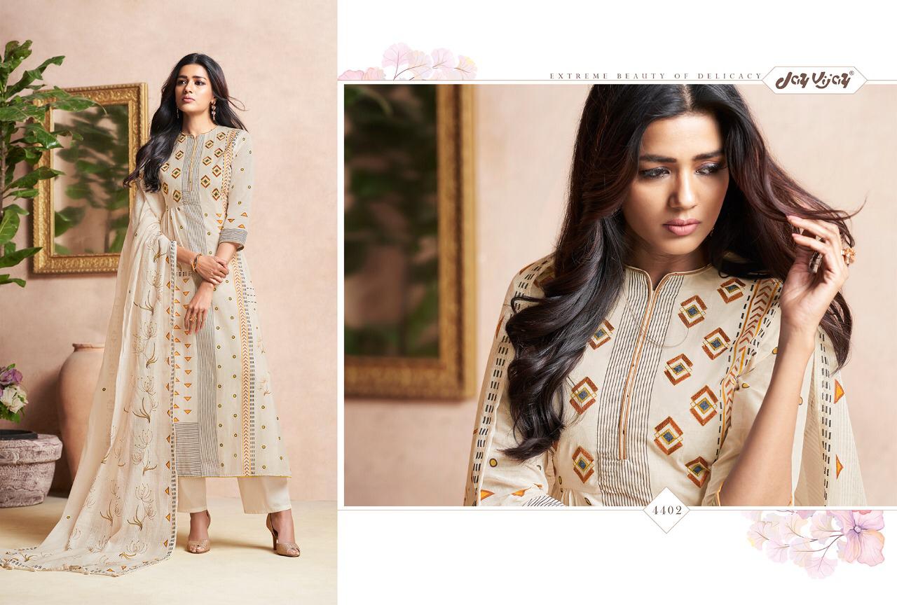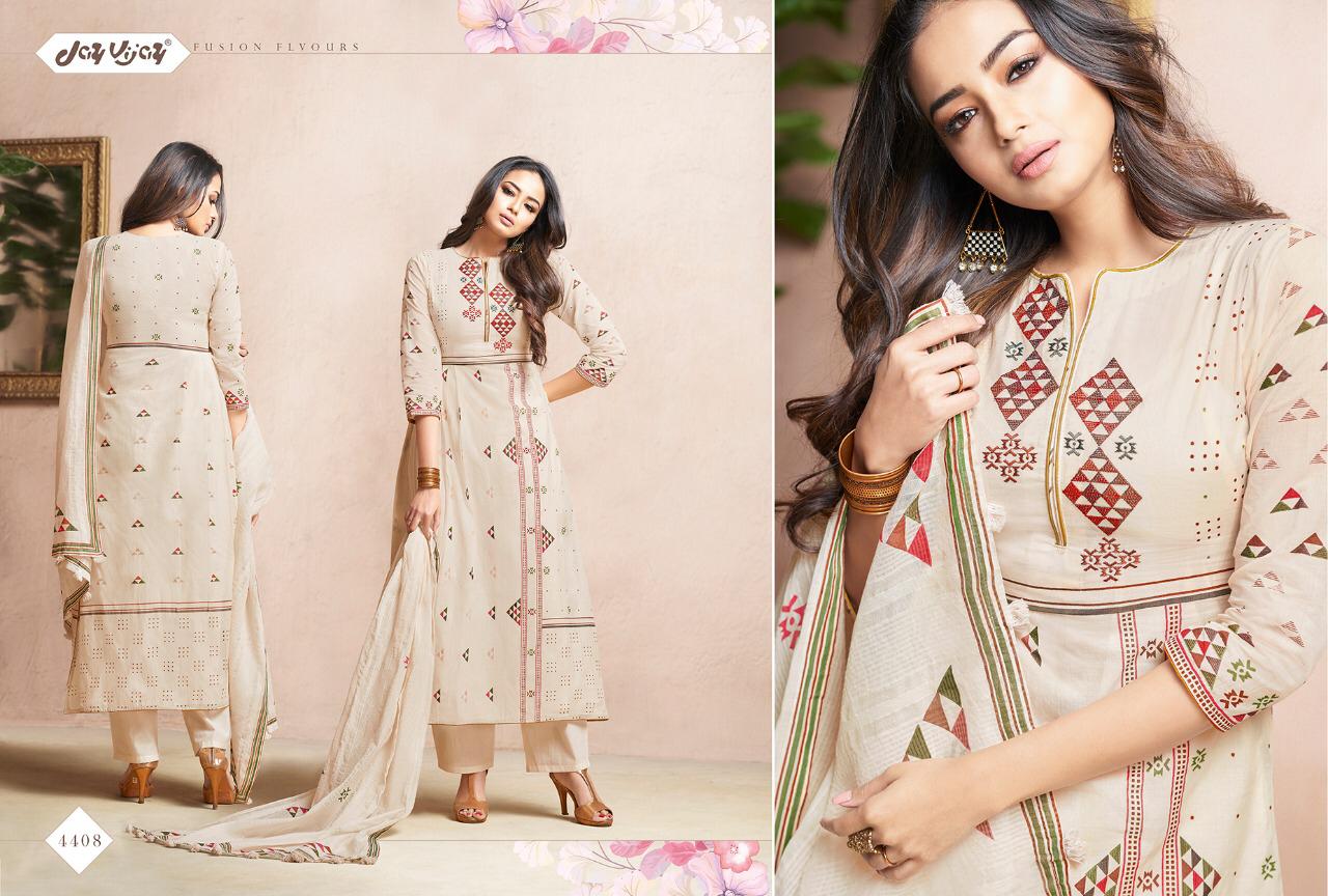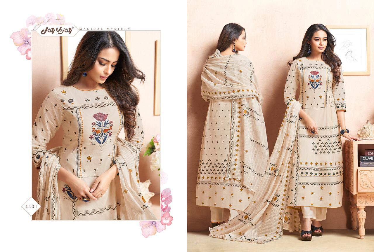 Buy Online Quince By Jay Vijay 4401 Series Fancy Cotton Ptinted Salwar Kameez Catlog Wholesaler Surat 11 Pcs of Full Catalogue at Wholesale Price. Looking for Quince By Jay Vijay 4401 Series Fancy Cotton Ptinted Salwar Kameez Catlog Wholesaler Surat Full Catalouge at Best Price? Buy Now Quince By Jay Vijay 4401 Series Fancy Cotton Ptinted Salwar Kameez Catlog Wholesaler Surat at Wholesale Rate of Rs 10890 with Total 11 Pcs from authroized dealer and supplier of JAY VIJAY Brand. Cost of Each piece is just only Rs 990 which is very low and affordable price to resale the product in your retail store ,This is Surat based Wholesale Supplier & Dealer of JAY VIJAY Brand. Click on Brand name to Know more about JAY VIJAY Brand's products.Call or Whatsapp on 9898838984 for booking or enquiry