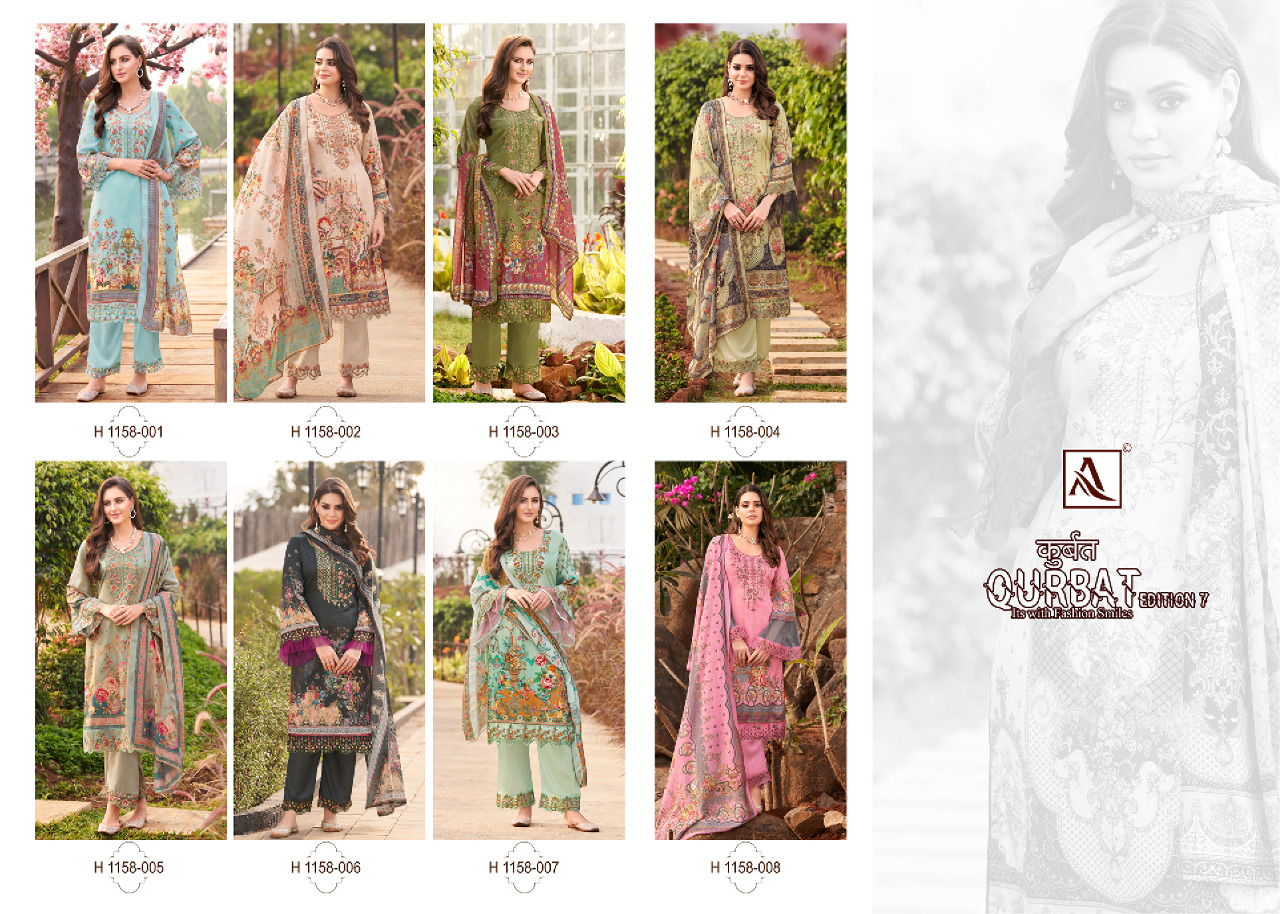Buy Online Qurbat Vol 7 By Alok Suit 8 Pcs of Full Catalogue at Wholesale Price. Looking for Qurbat Vol 7 By Alok Suit Full Catalouge at Best Price? Buy Now Qurbat Vol 7 By Alok Suit at Wholesale Rate of Rs 6600 with Total 8 Pcs from authroized dealer and supplier of Brand. Cost of Each piece is just only Rs 825 which is very low and affordable price to resale the product in your retail store ,This is Surat based Wholesale Supplier & Dealer of Brand. Click on Brand name to Know more about Brand's products.Call or Whatsapp on 9898838984 for booking or enquiry