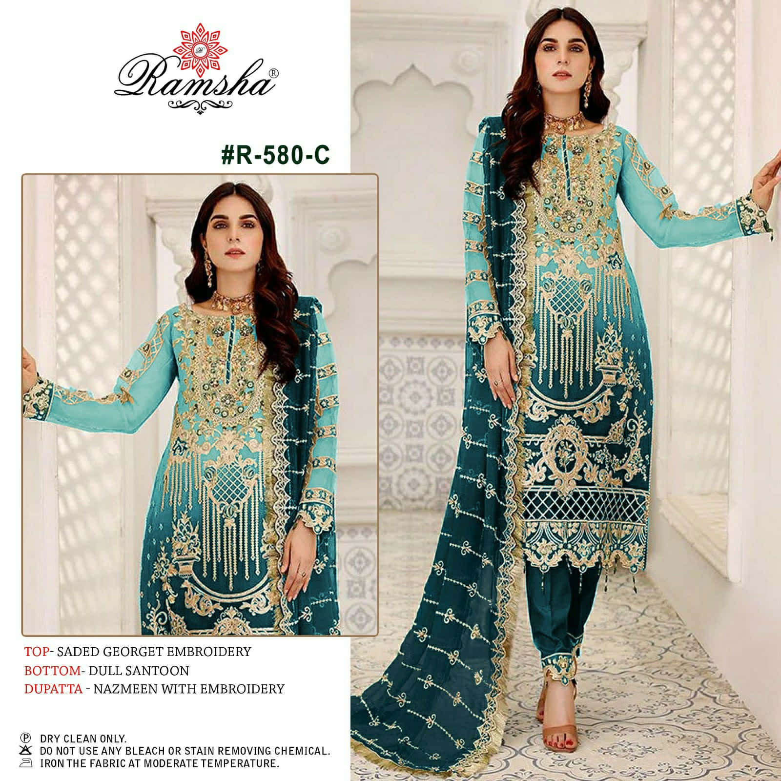 Buy Online R 580 Nx By Ramsha Georgette Pakistani Concept 4 Pcs of Full Catalogue at Wholesale Price. Looking for R 580 Nx By Ramsha Georgette Pakistani Concept Full Catalouge at Best Price? Buy Now R 580 Nx By Ramsha Georgette Pakistani Concept at Wholesale Rate of Rs 5000 with Total 4 Pcs from authroized dealer and supplier of Brand. Cost of Each piece is just only Rs 1250 which is very low and affordable price to resale the product in your retail store ,This is Surat based Wholesale Supplier & Dealer of Brand. Click on Brand name to Know more about Brand's products.Call or Whatsapp on 9898838984 for booking or enquiry
