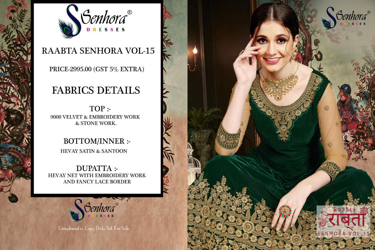 Buy Online Raabta By Senhora Series 5001 Designer Party Wear Suits Set And Single Wholesale Supplier Gujarat 4 Pcs of Full Catalogue at Wholesale Price. Looking for Raabta By Senhora Series 5001 Designer Party Wear Suits Set And Single Wholesale Supplier Gujarat Full Catalouge at Best Price? Buy Now Raabta By Senhora Series 5001 Designer Party Wear Suits Set And Single Wholesale Supplier Gujarat at Wholesale Rate of Rs 11980 with Total 4 Pcs from authroized dealer and supplier of Brand. Cost of Each piece is just only Rs 2995 which is very low and affordable price to resale the product in your retail store ,This is Surat based Wholesale Supplier & Dealer of Brand. Click on Brand name to Know more about Brand's products.Call or Whatsapp on 9898838984 for booking or enquiry