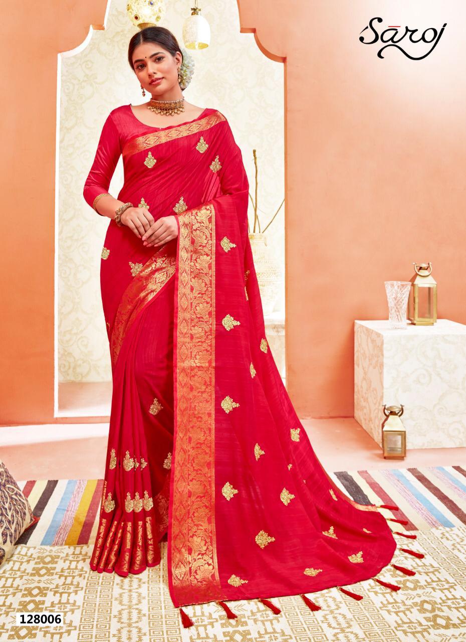 Buy Online Raadhya By Saroj Silk Sarees Wholesale Supplier Gujarat 8 Pcs of Full Catalogue at Wholesale Price. Looking for Raadhya By Saroj Silk Sarees Wholesale Supplier Gujarat Full Catalouge at Best Price? Buy Now Raadhya By Saroj Silk Sarees Wholesale Supplier Gujarat at Wholesale Rate of Rs 9960 with Total 8 Pcs from authroized dealer and supplier of SAROJ SAREE Brand. Cost of Each piece is just only Rs 1245 which is very low and affordable price to resale the product in your retail store ,This is Surat based Wholesale Supplier & Dealer of SAROJ SAREE Brand. Click on Brand name to Know more about SAROJ SAREE Brand's products.Call or Whatsapp on 9898838984 for booking or enquiry