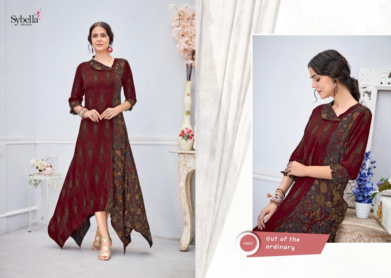 Raag Sutra By Sybella Series 1001 To 1005 Reyon Designer Fancy Kurtis Wholesale Supplier Gujarat