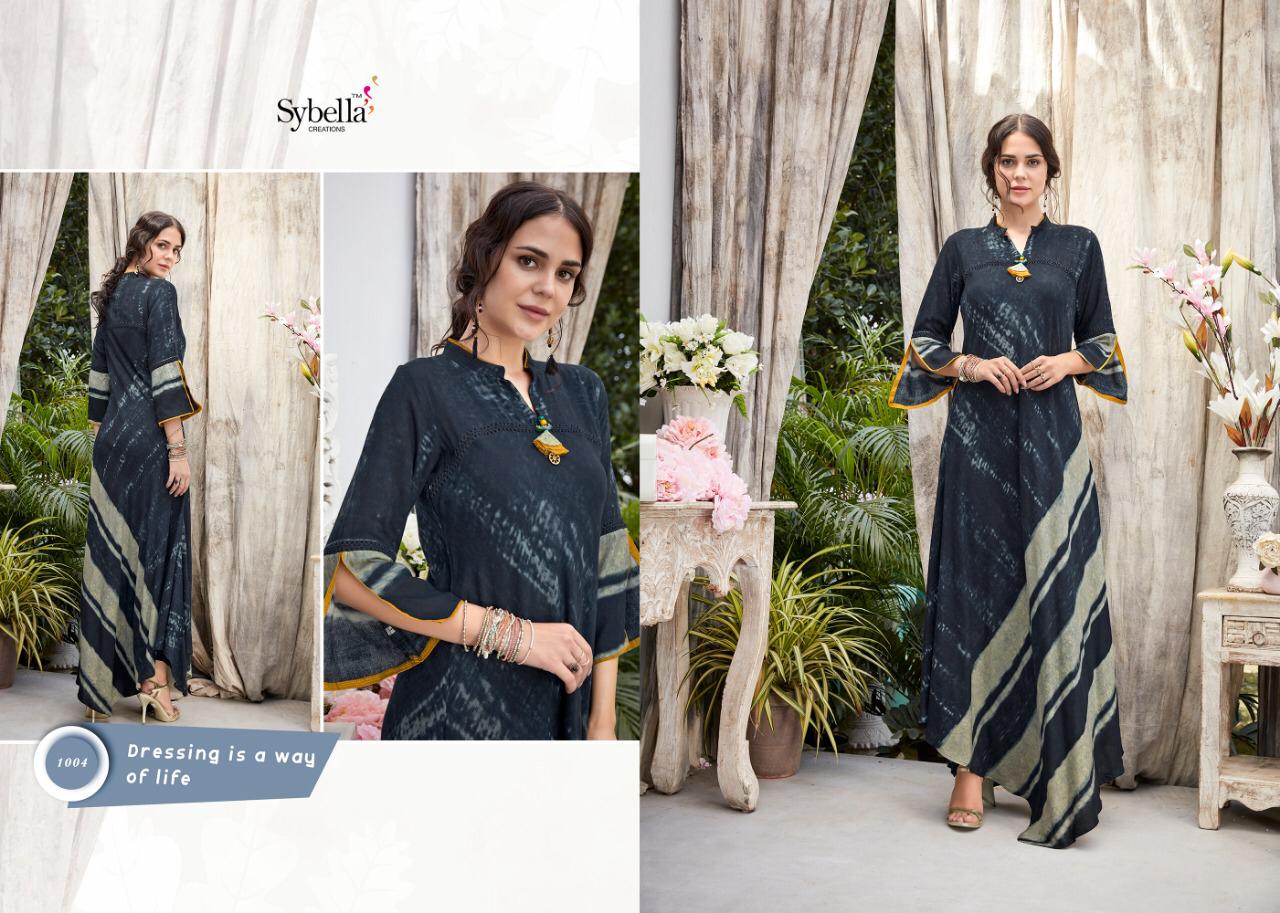 Buy Online Raag Sutra By Sybella Series 1001 To 1005 Reyon Designer Fancy Kurtis Wholesale Supplier Gujarat 5 Pcs of Full Catalogue at Wholesale Price. Looking for Raag Sutra By Sybella Series 1001 To 1005 Reyon Designer Fancy Kurtis Wholesale Supplier Gujarat Full Catalouge at Best Price? Buy Now Raag Sutra By Sybella Series 1001 To 1005 Reyon Designer Fancy Kurtis Wholesale Supplier Gujarat at Wholesale Rate of Rs 3975 with Total 5 Pcs from authroized dealer and supplier of SYBELLA Brand. Cost of Each piece is just only Rs 795 which is very low and affordable price to resale the product in your retail store ,This is Surat based Wholesale Supplier & Dealer of SYBELLA Brand. Click on Brand name to Know more about SYBELLA Brand's products.Call or Whatsapp on 9898838984 for booking or enquiry