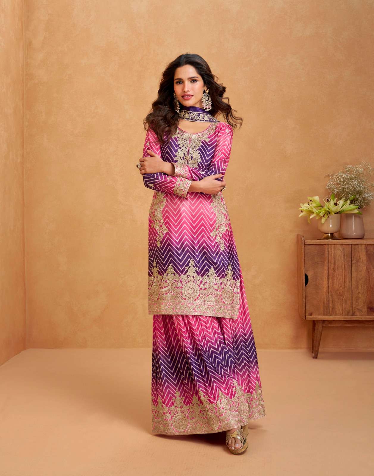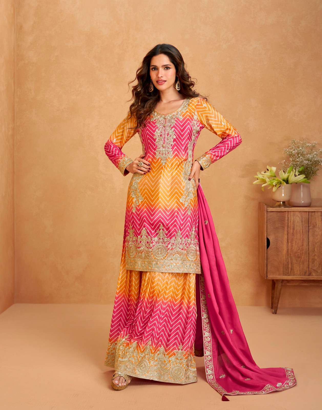 TOP-PREMIUM CHINNON SILK. (Free size stitch ) PLAZZO-PREMIUM CHINNON SILK (free size stitch ) DUPTTA- PREMIUM CHINNON