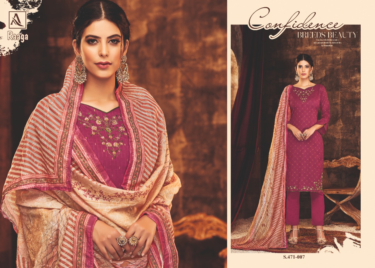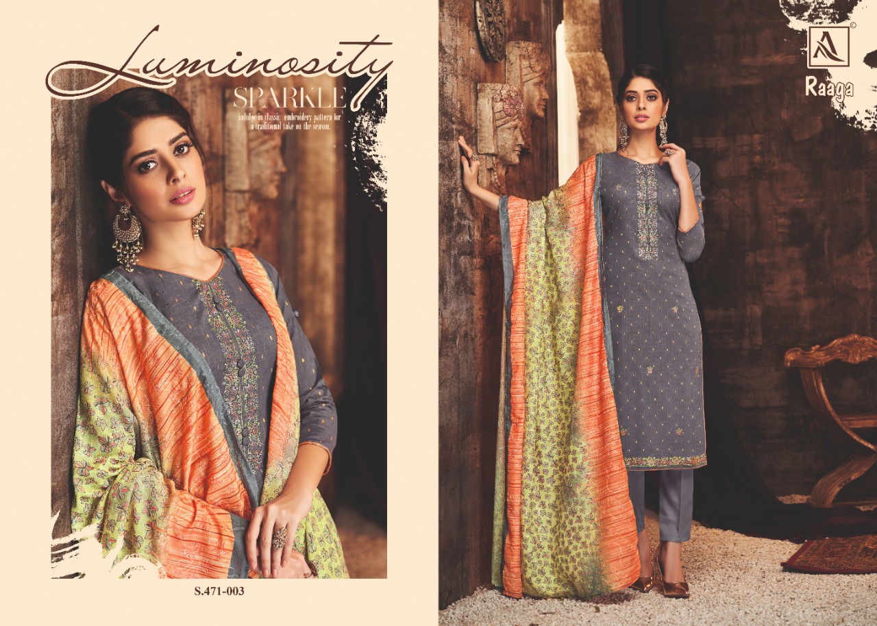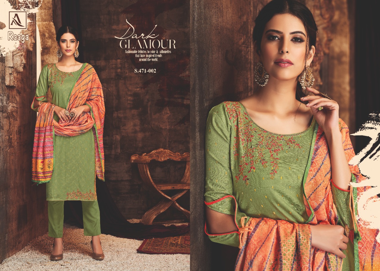 Buy Online Raaga By Alok Suits Designer Dress Materials Wholesale Supplier And Dealer Gujarat 10 Pcs of Full Catalogue at Wholesale Price. Looking for Raaga By Alok Suits Designer Dress Materials Wholesale Supplier And Dealer Gujarat Full Catalouge at Best Price? Buy Now Raaga By Alok Suits Designer Dress Materials Wholesale Supplier And Dealer Gujarat at Wholesale Rate of Rs 7950 with Total 10 Pcs from authroized dealer and supplier of Brand. Cost of Each piece is just only Rs 795 which is very low and affordable price to resale the product in your retail store ,This is Surat based Wholesale Supplier & Dealer of Brand. Click on Brand name to Know more about Brand's products.Call or Whatsapp on 9898838984 for booking or enquiry