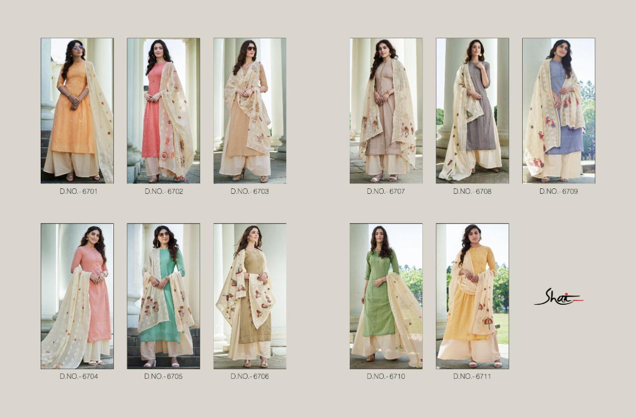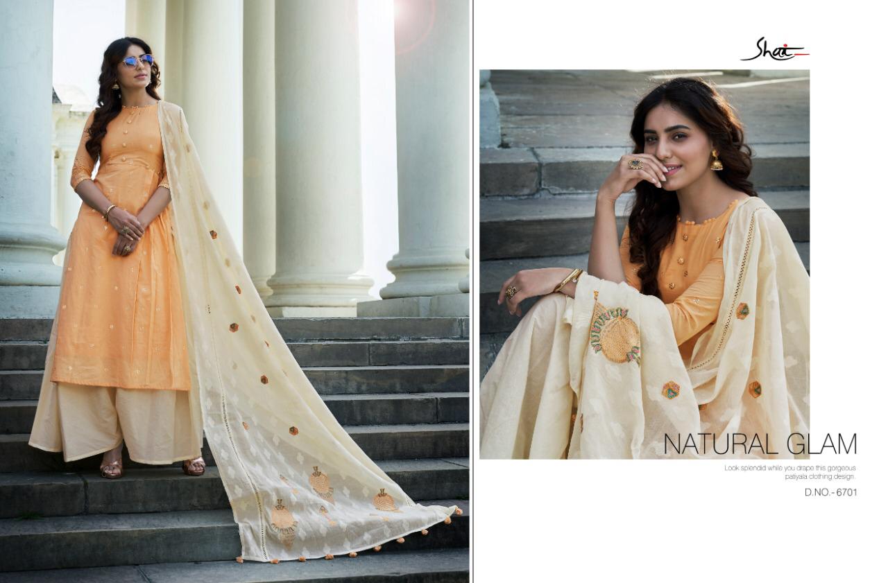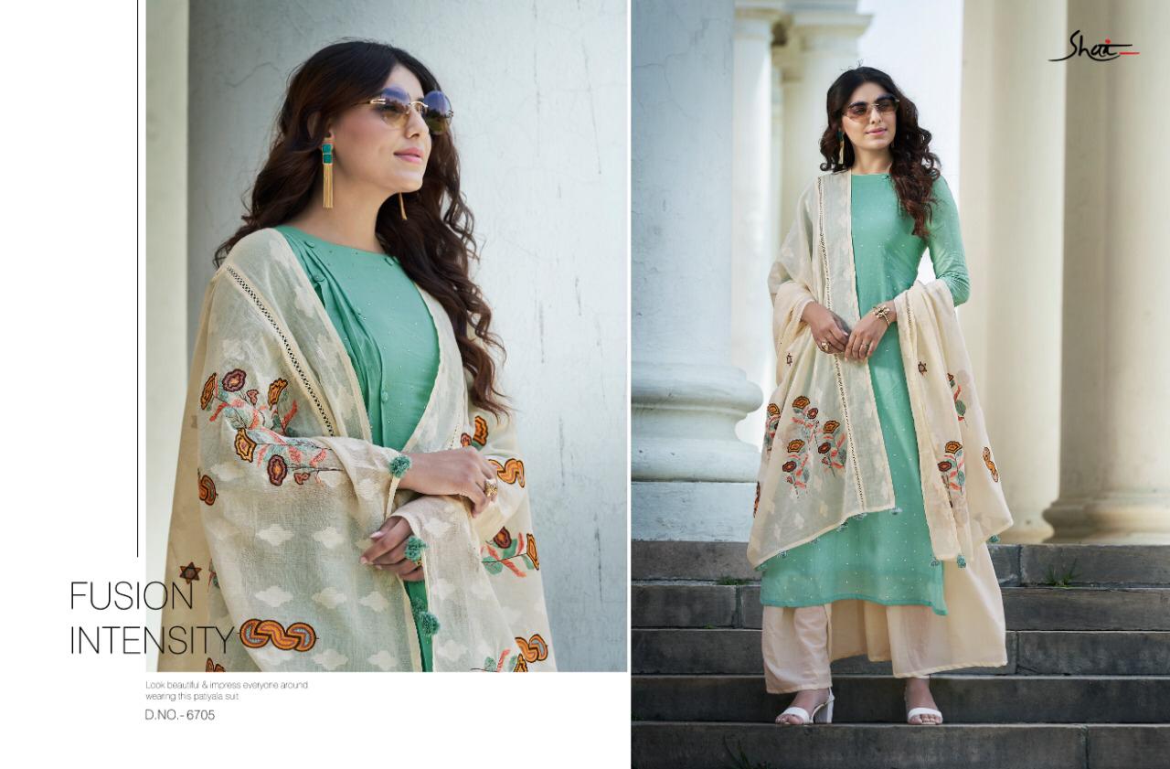 Brand - Shai Catlog name - RAAGA VOL -2. 11 Designs Singal Colour Fabric Details Top = Pure Cotton With Mukesh Work(Semi-Stich) Bottom = Cotton Ã? Cotton Dupatta = Pure Fine Cotton With Placement Embroidery Total pieces = 11 Rate = 1575/- Delivery 6 days later . Set To Set . GST 5 Percent Extra |
