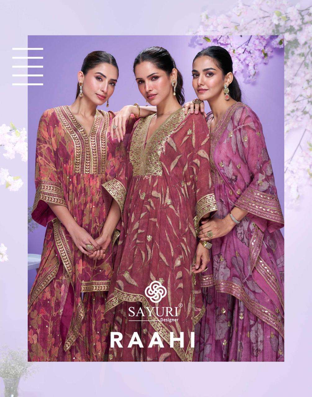 RAAHI by SAYURI DESIGNER REAL GEROGETTE GHARARA suit collection manufacturer surat