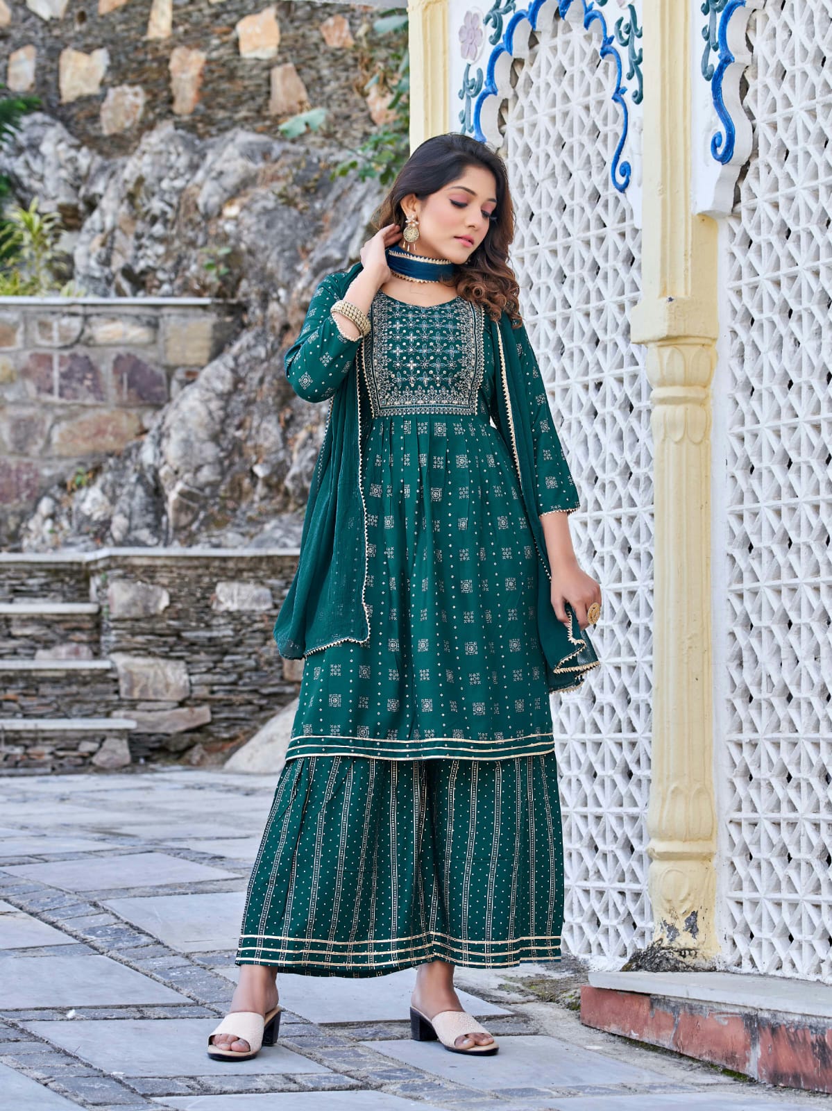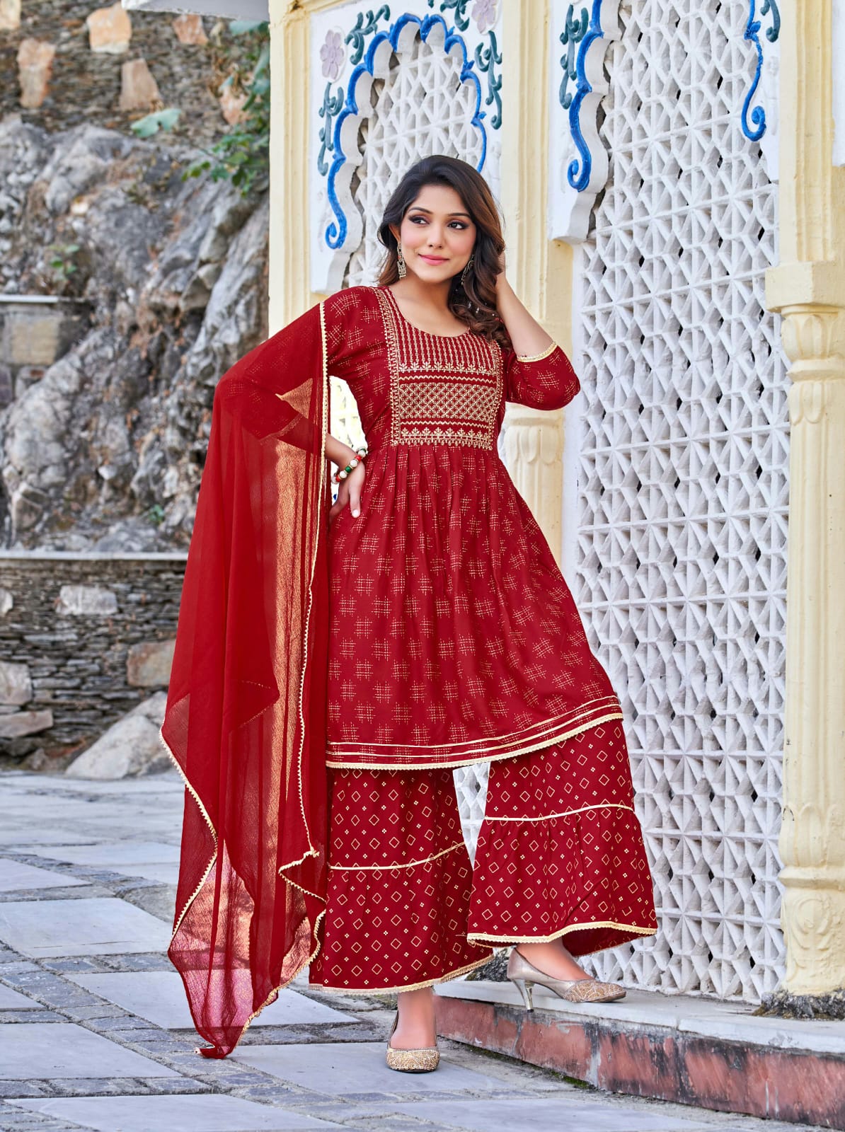 ???? *TIPS & TOPS* Launching New Catalouge Catalouge : ? *RAASHI* ? *Gharrara Collection* Fabric in Top : *Heavy Reyon Foil Print 14kg* Spec. : *Heavy Embroidery* Fabric in Bottom : *Heavy Reyon Foil Print 14kg* Fabric in Dupatta : *Chinon* Sleeves type : *3/4th* No.of Designs : *6* Size : *M38, L40, XL42, XXL44, 3XL46* Length : *40"* Rate : *695* + GST 5% *TIPS & TOPS* ? *THANK YOU* ?? |