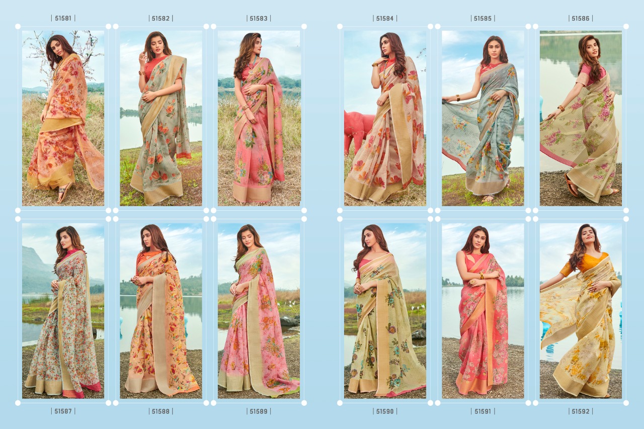 Raashi Cotton vol 2 Shangrila's Most Mangnhificent And Rich Collection Of Linen-Cotton Sarees With Authentic Handloom Art Prints Based On Mastered Art Of Weaving Fabrics...! 12 pc 12 design 550/- Set to set only 5% GST |