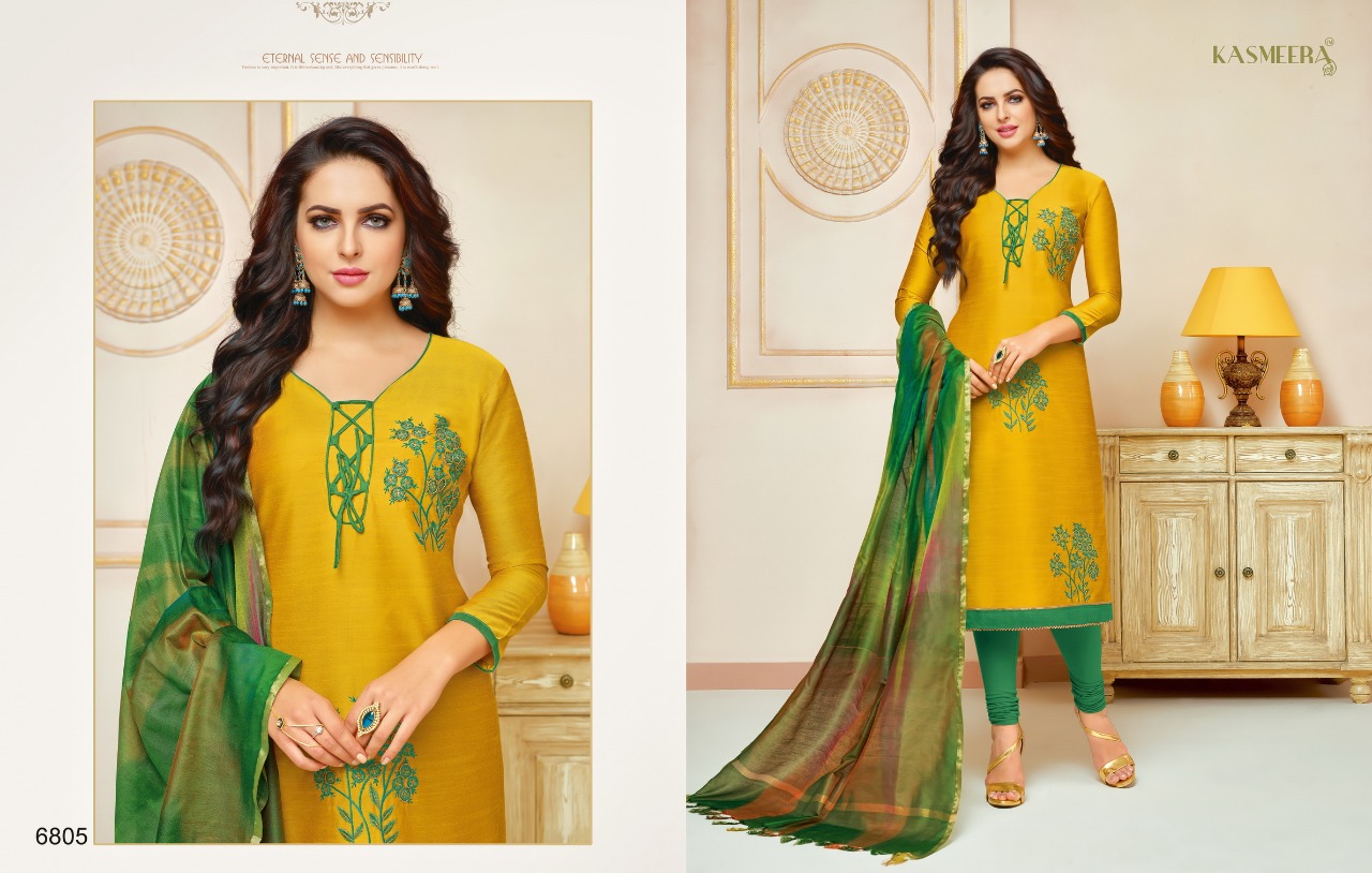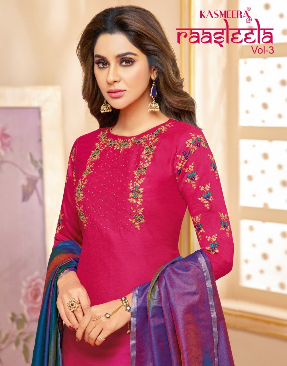 Buy Online Raasleela Vol 3 By Kasmeera Tm Long Slub With Handwork Desinger Suits Wholesale Supplier And Dealer Gujarat 12 Pcs of Full Catalogue at Wholesale Price. Looking for Raasleela Vol 3 By Kasmeera Tm Long Slub With Handwork Desinger Suits Wholesale Supplier And Dealer Gujarat Full Catalouge at Best Price? Buy Now Raasleela Vol 3 By Kasmeera Tm Long Slub With Handwork Desinger Suits Wholesale Supplier And Dealer Gujarat at Wholesale Rate of Rs 8100 with Total 12 Pcs from authroized dealer and supplier of Kasmeera Brand. Cost of Each piece is just only Rs 675 which is very low and affordable price to resale the product in your retail store ,This is Surat based Wholesale Supplier & Dealer of Kasmeera Brand. Click on Brand name to Know more about Kasmeera Brand's products.Call or Whatsapp on 9898838984 for booking or enquiry