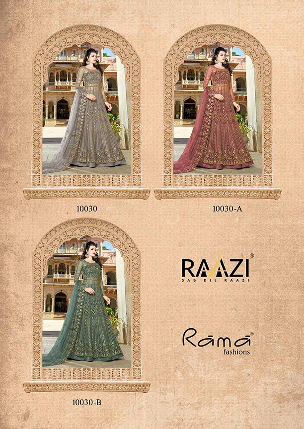 Brand - RAMA . Colours 10030 . RAMA FASHIONS(INDIA) Catalog Name: RAAZI AROOS COLORPLUS D NO. 10030,A, B ADDING 2 NEW COLOURS RATE: 3545+ GST 5% Single Extra 100 Delivery soon |