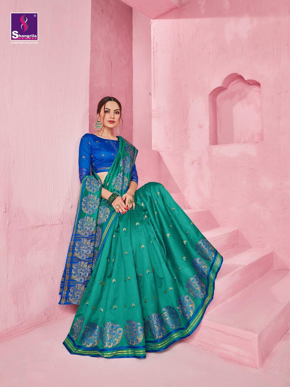 Raazia cotton by Sangrila Shangrila Presents New Silk Collection With All Over Meenakari Weaving Collection...!! 10 pc 10 design 695/- Set To Set . GST 5 Percent Extra Delivery from today |