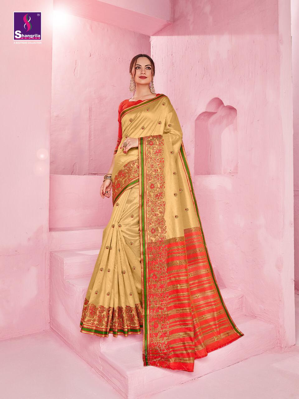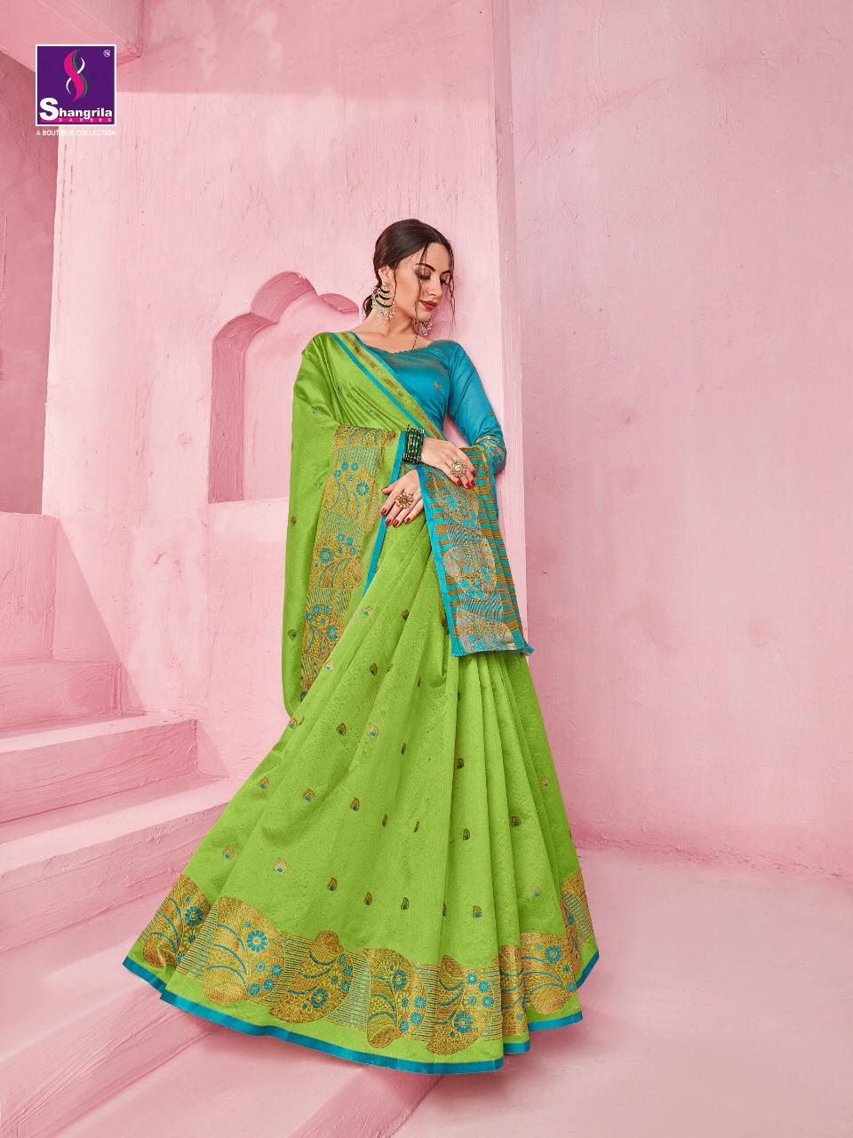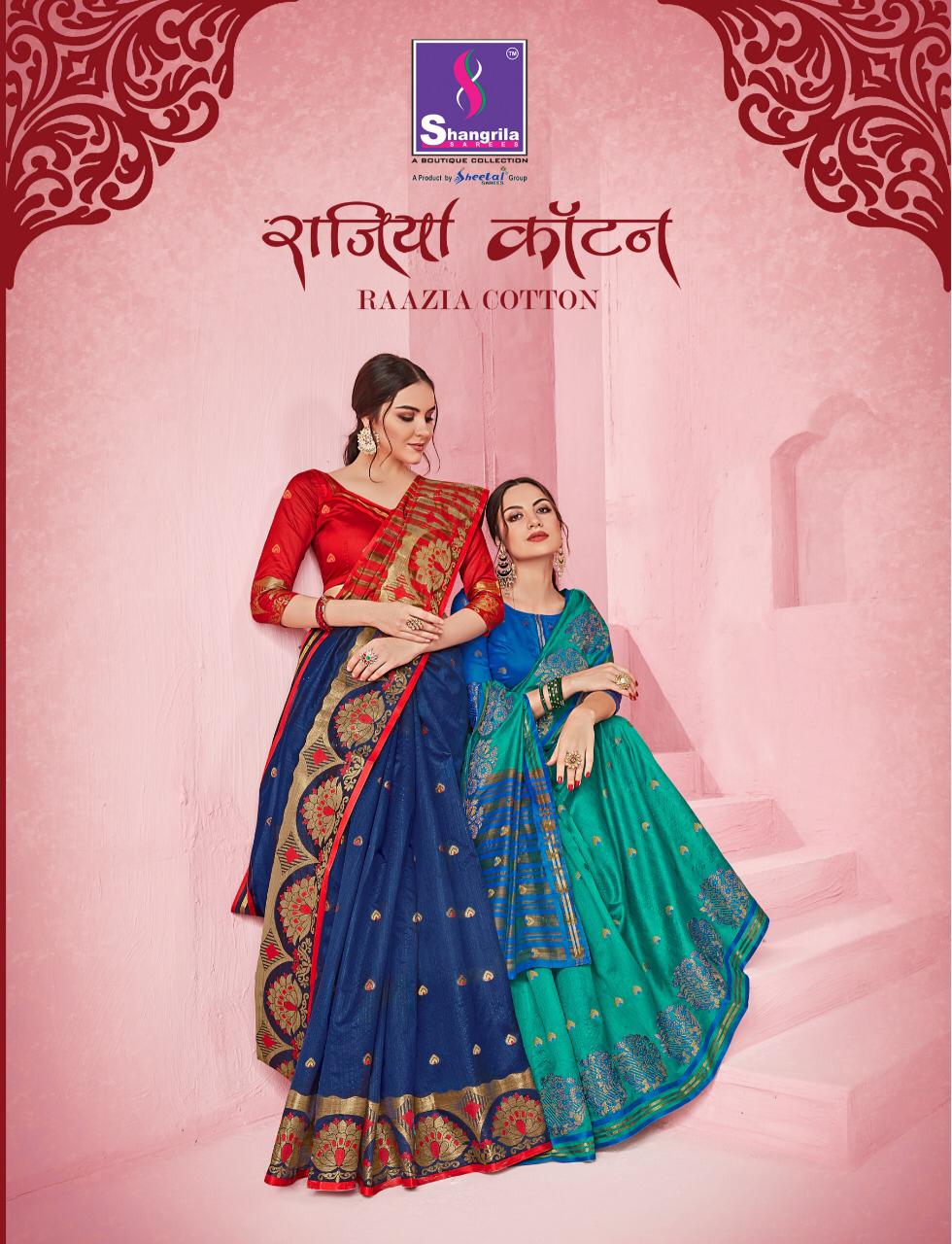 Buy Online Raazia Cotton By Shangrila Silk Designer Party Wear Sarees Wholesale Supplier And Dealer Gujarat 10 Pcs of Full Catalogue at Wholesale Price. Looking for Raazia Cotton By Shangrila Silk Designer Party Wear Sarees Wholesale Supplier And Dealer Gujarat Full Catalouge at Best Price? Buy Now Raazia Cotton By Shangrila Silk Designer Party Wear Sarees Wholesale Supplier And Dealer Gujarat at Wholesale Rate of Rs 6950 with Total 10 Pcs from authroized dealer and supplier of SHANGRILA Brand. Cost of Each piece is just only Rs 695 which is very low and affordable price to resale the product in your retail store ,This is Surat based Wholesale Supplier & Dealer of SHANGRILA Brand. Click on Brand name to Know more about SHANGRILA Brand's products.Call or Whatsapp on 9898838984 for booking or enquiry